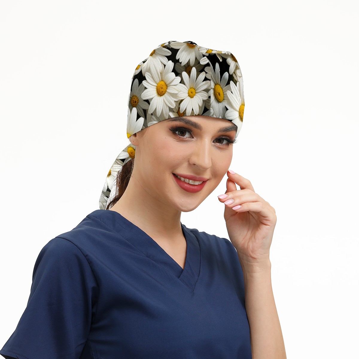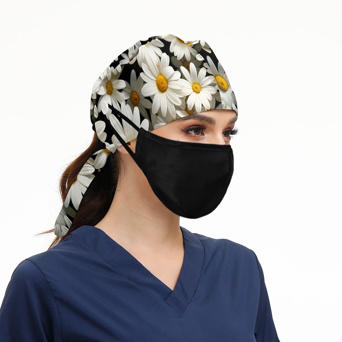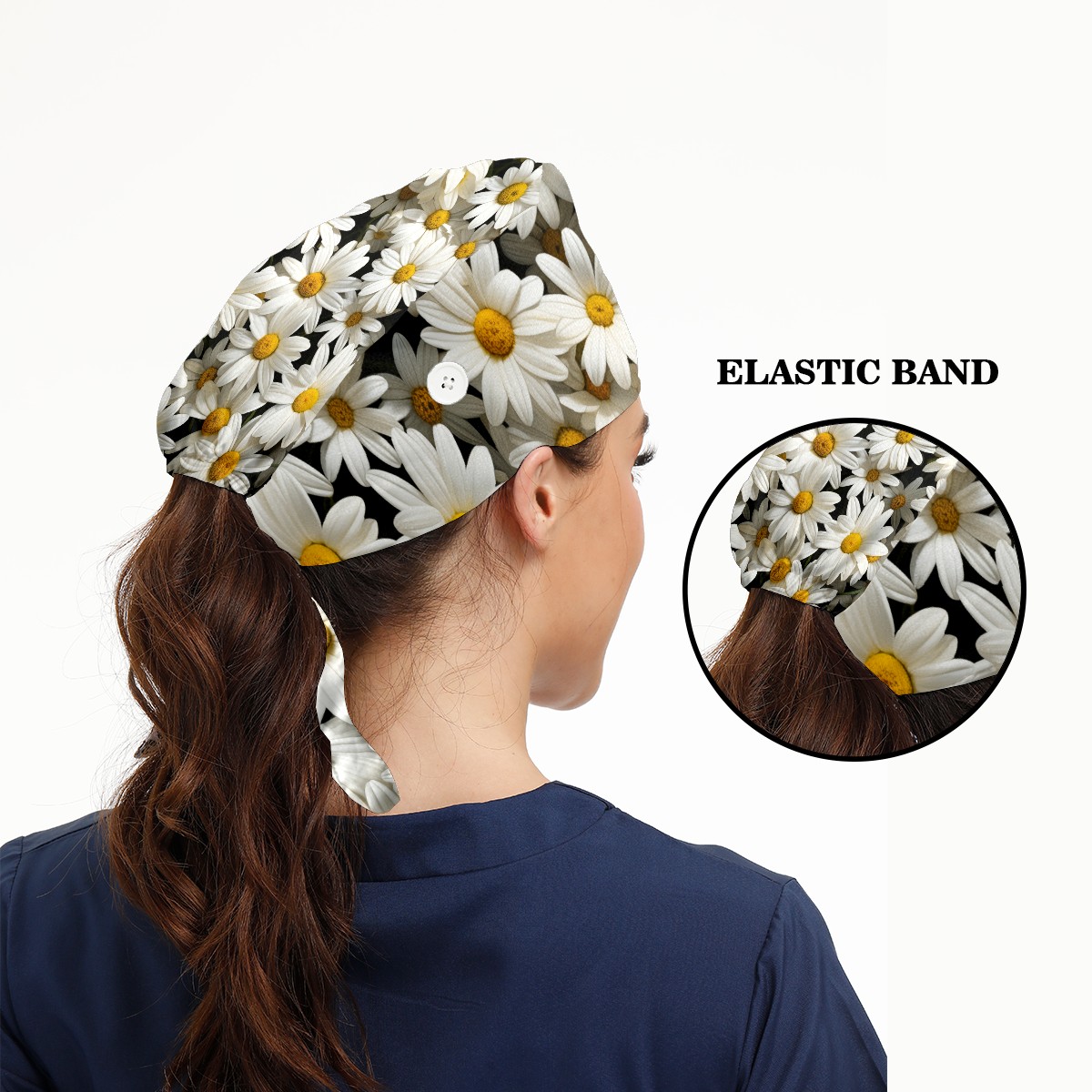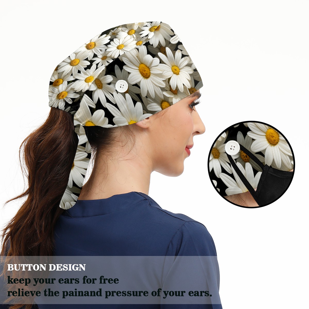 Working Caps with Button&Sweatband Satin Lined Cotton Adjustable Nurse Hats Elastic Band Scrub Cap Surgeon Hat Calendula