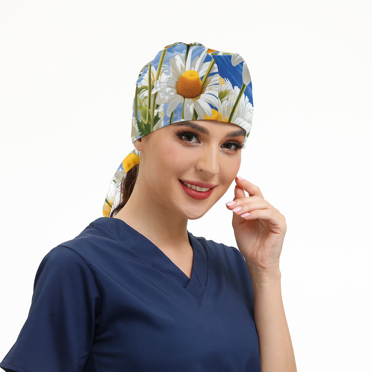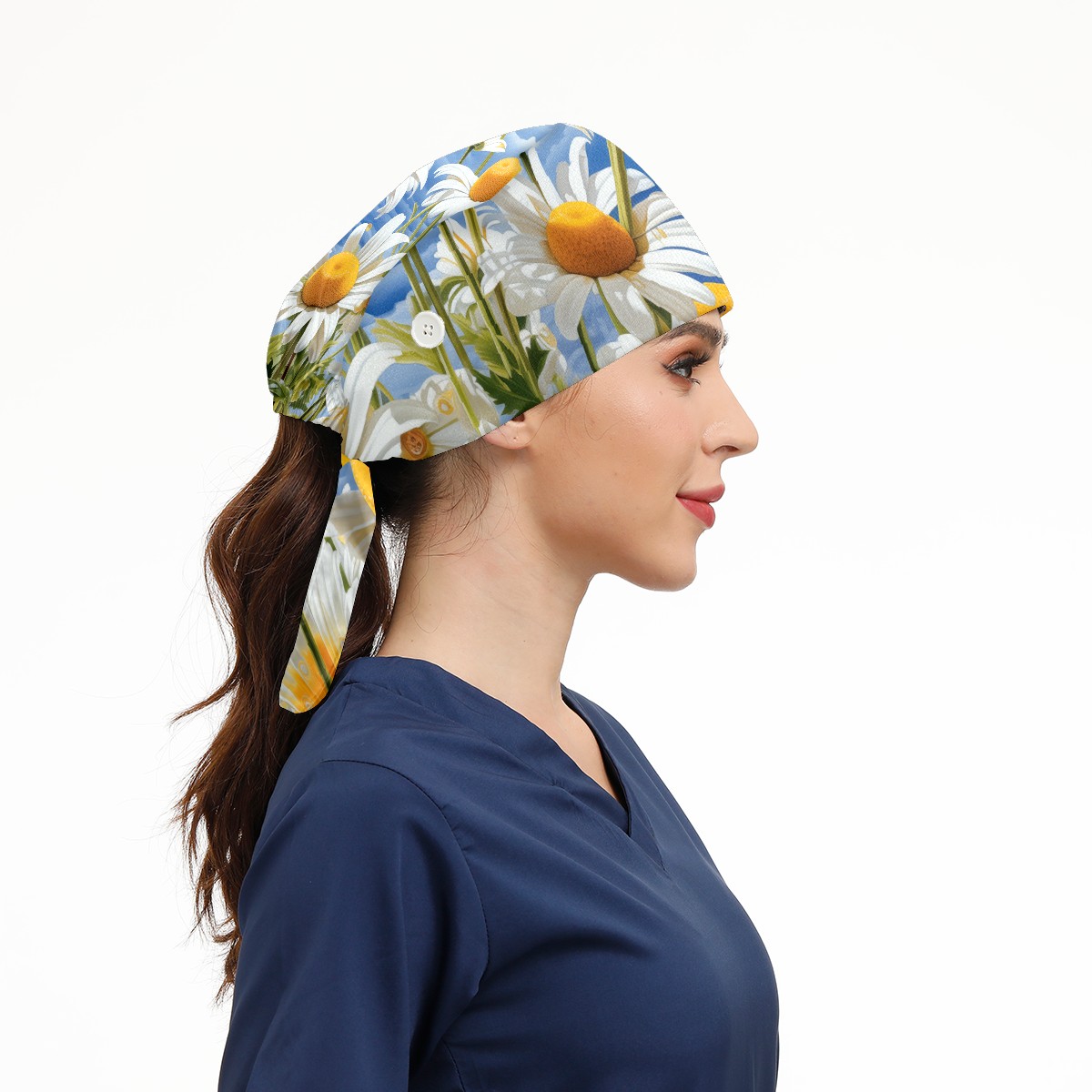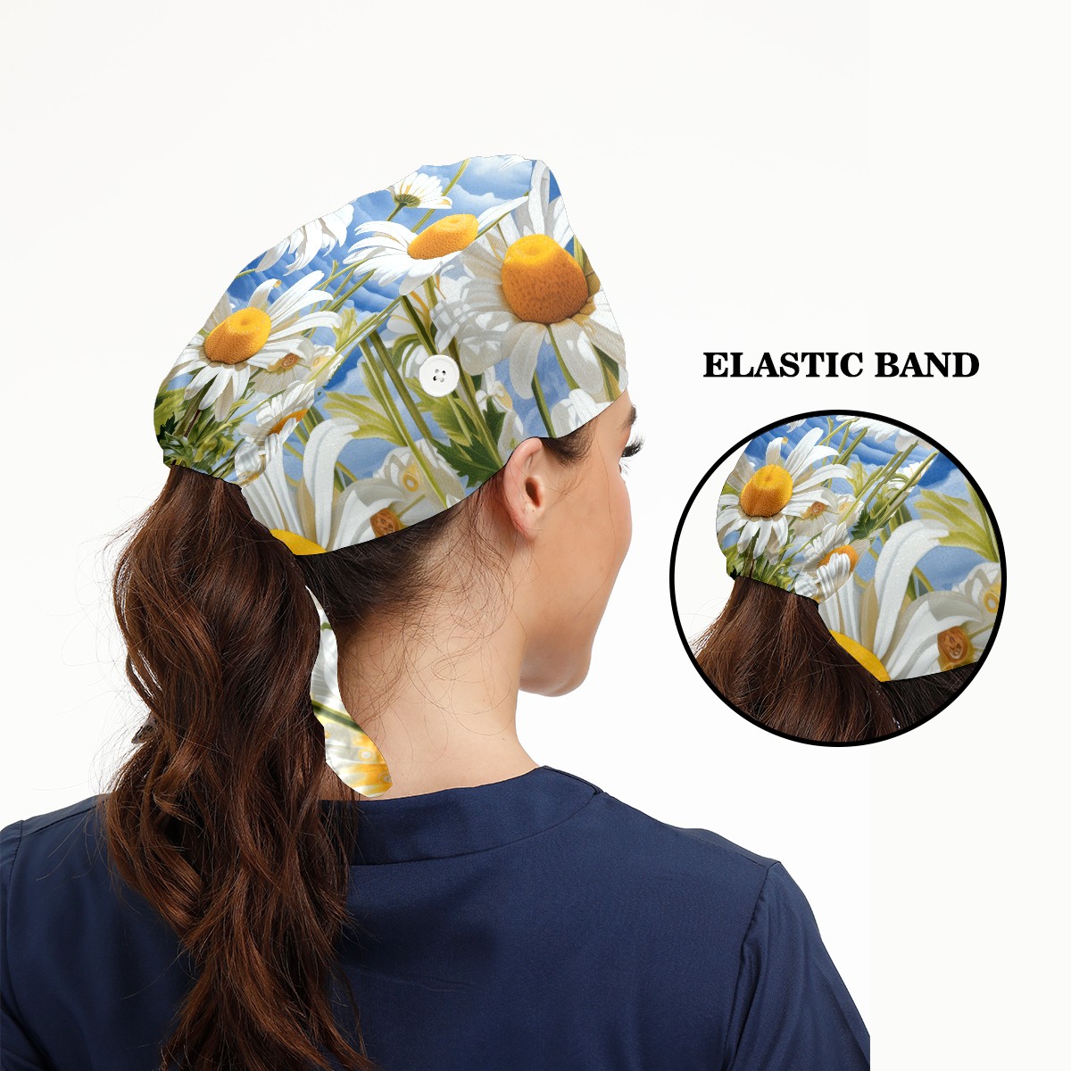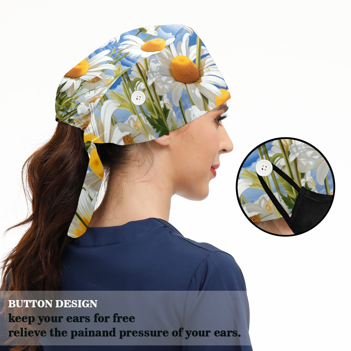 Working Caps with Button&Sweatband Satin Lined Cotton Adjustable Nurse Hats Elastic Band Scrub Cap Surgeon Hat Matricaria Alba