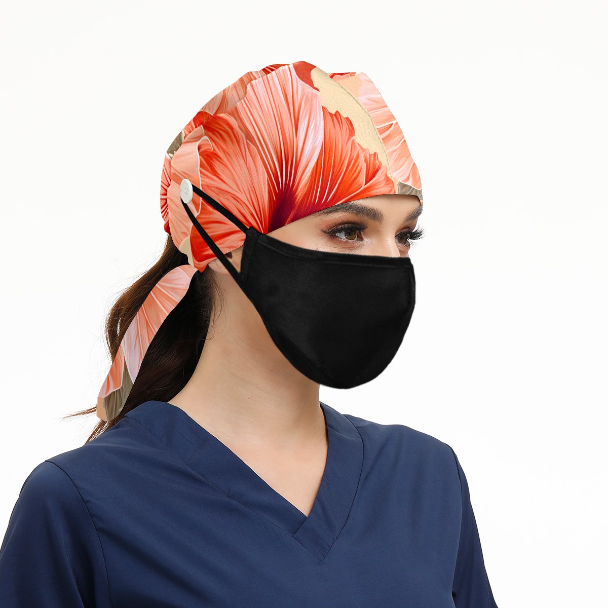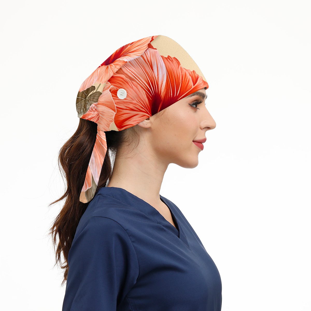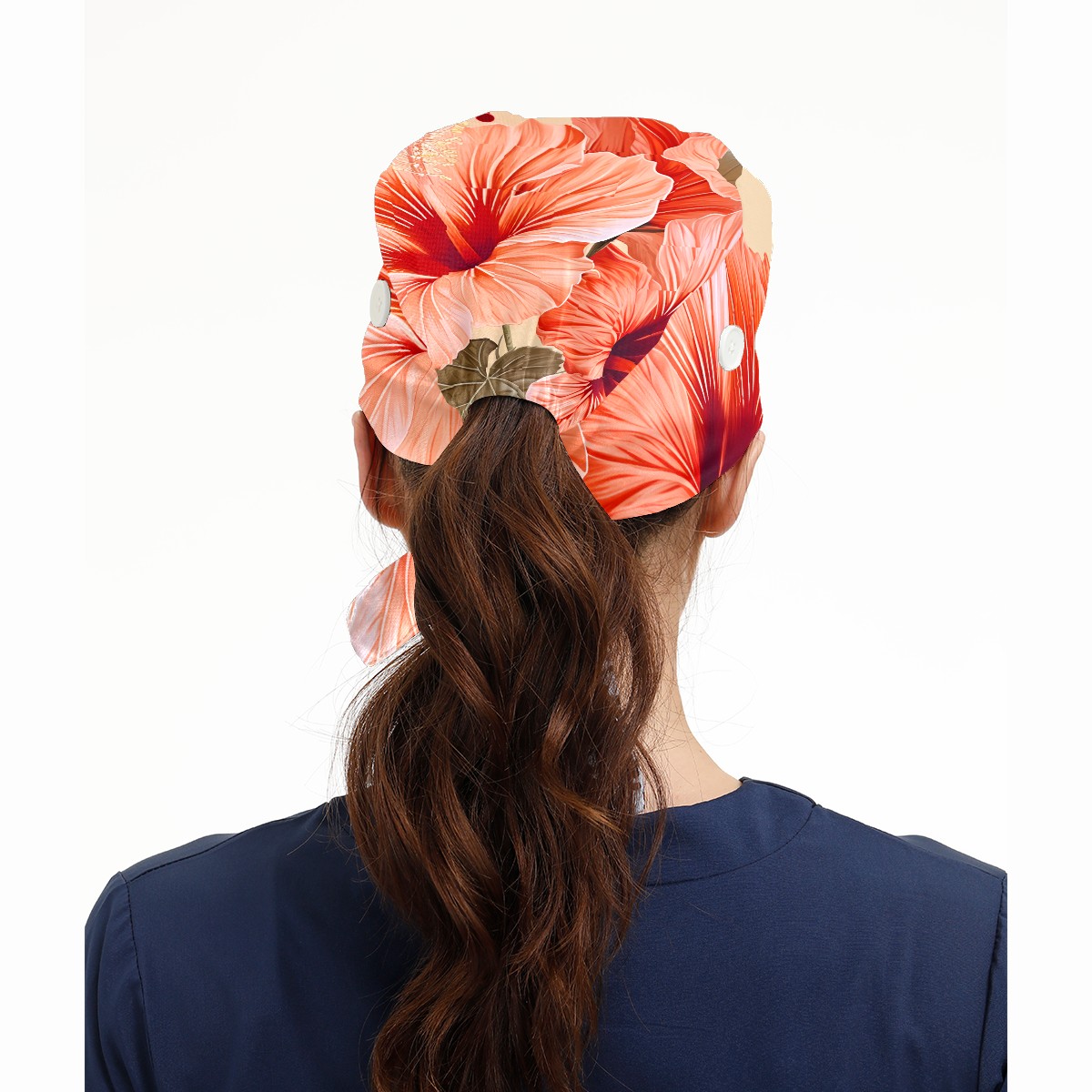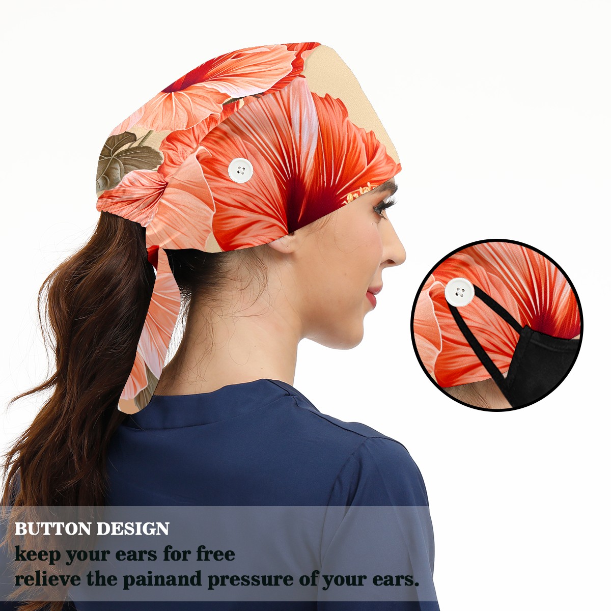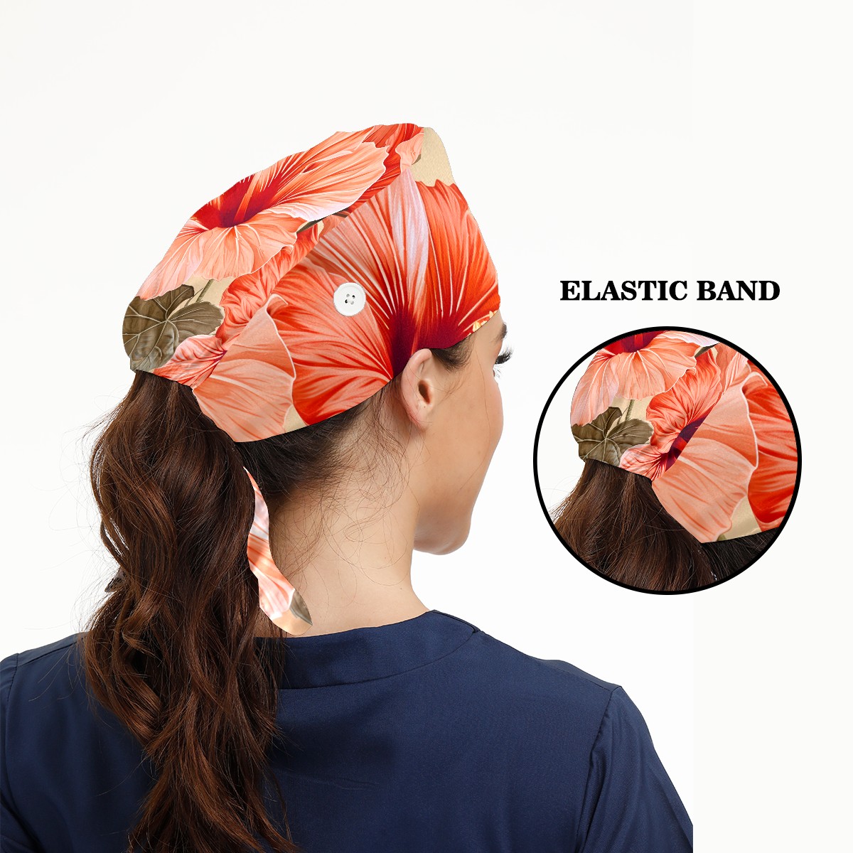 Working Caps with Button&Sweatband Satin Lined Cotton Adjustable Nurse Hats Elastic Band Scrub Cap Surgeon Hat Hibiscu C