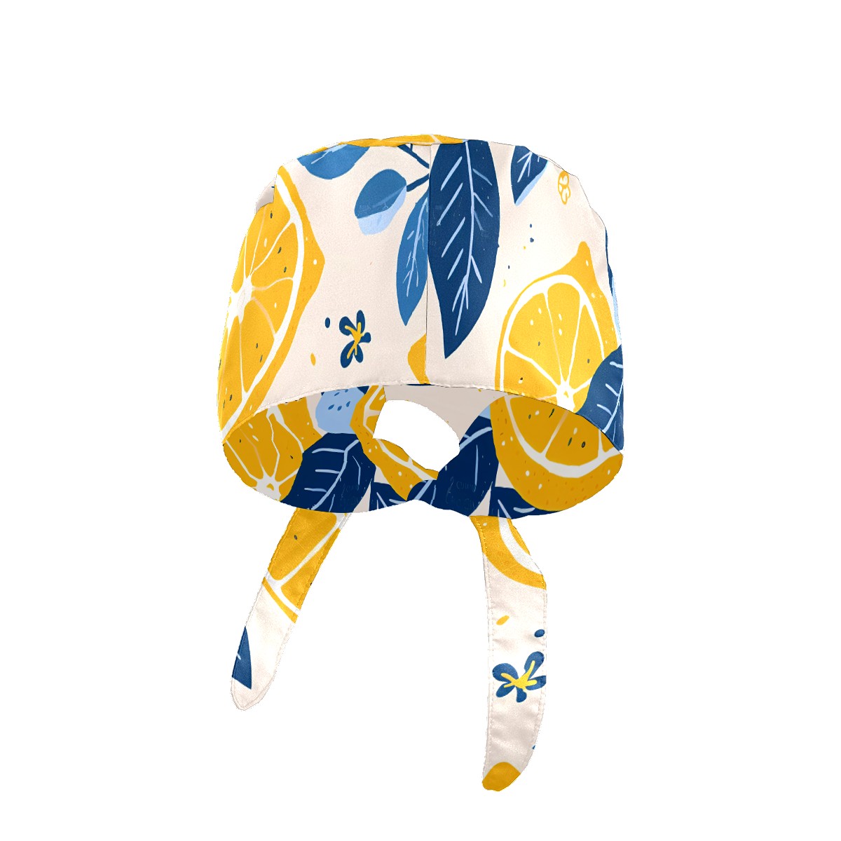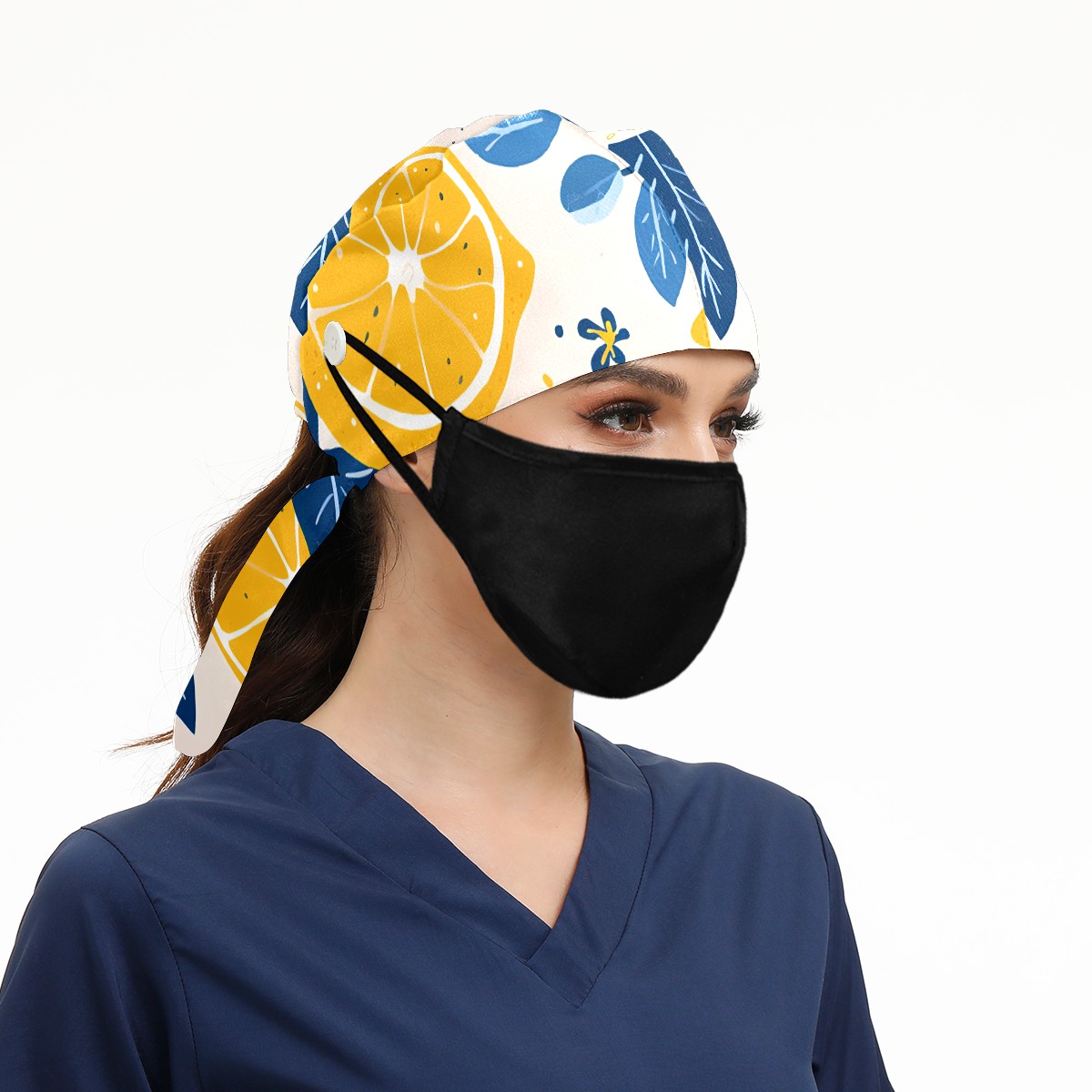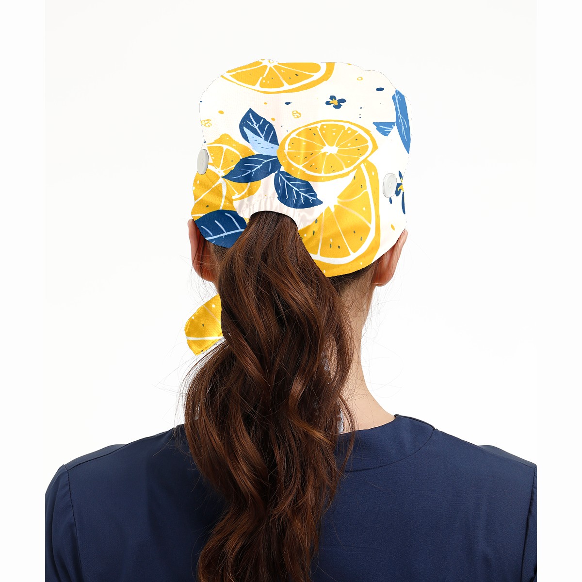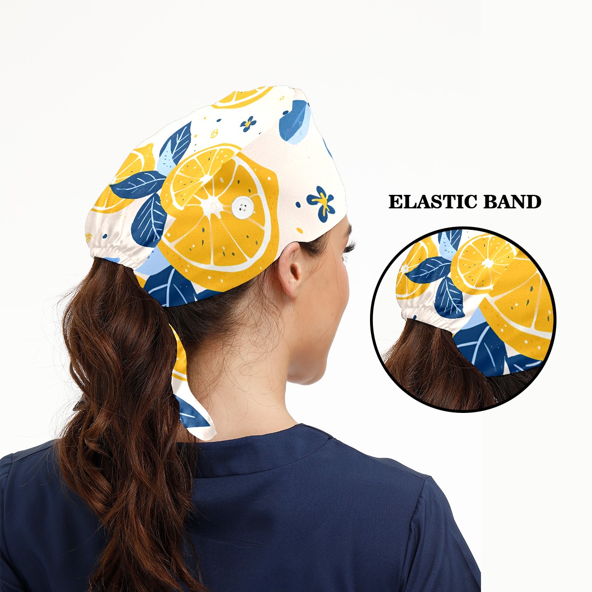 Working Caps with Button&Sweatband Satin Lined Cotton Adjustable Nurse Hats Elastic Band Scrub Cap Surgeon Hat Cute Lemon
