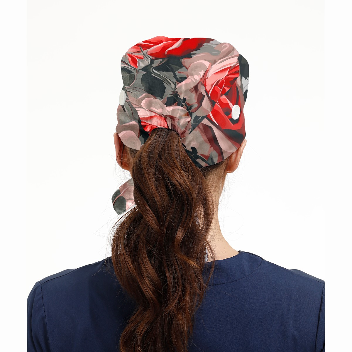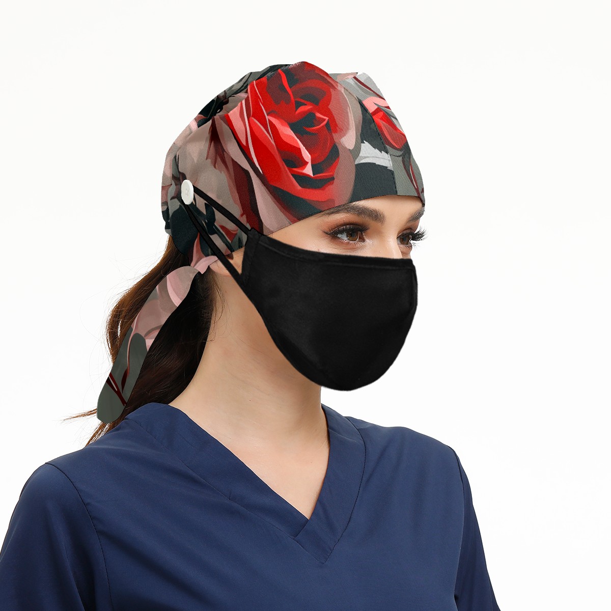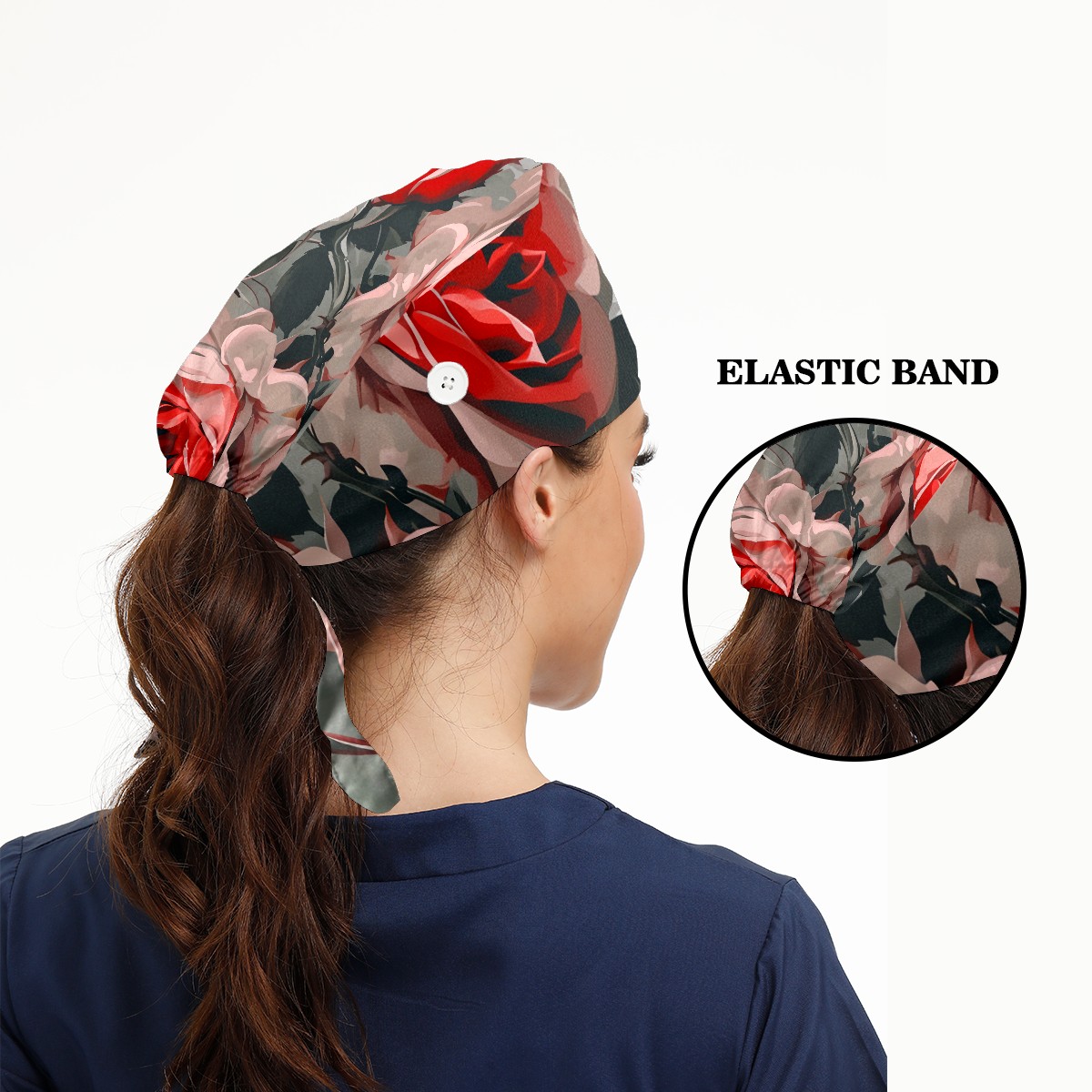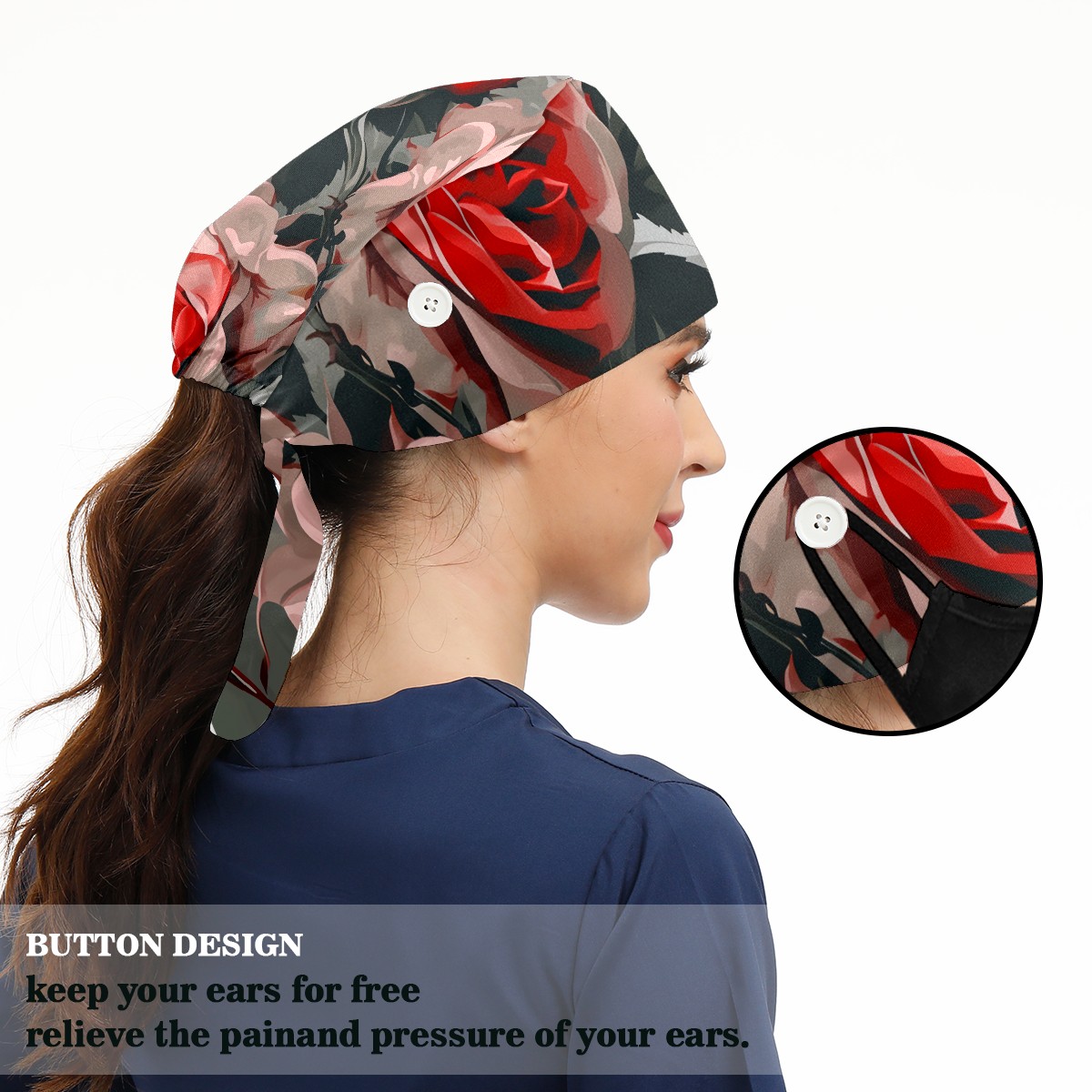 Working Caps with Button&Sweatband Satin Lined Cotton Adjustable Nurse Hats Elastic Band Scrub Cap Surgeon Hat Rugosa Rose A