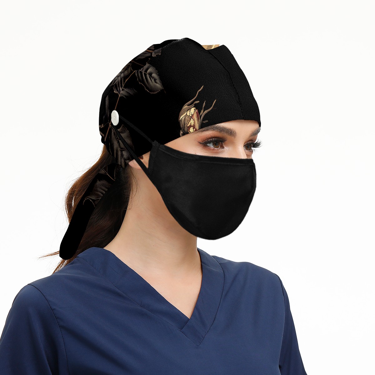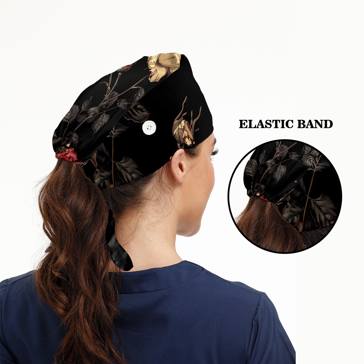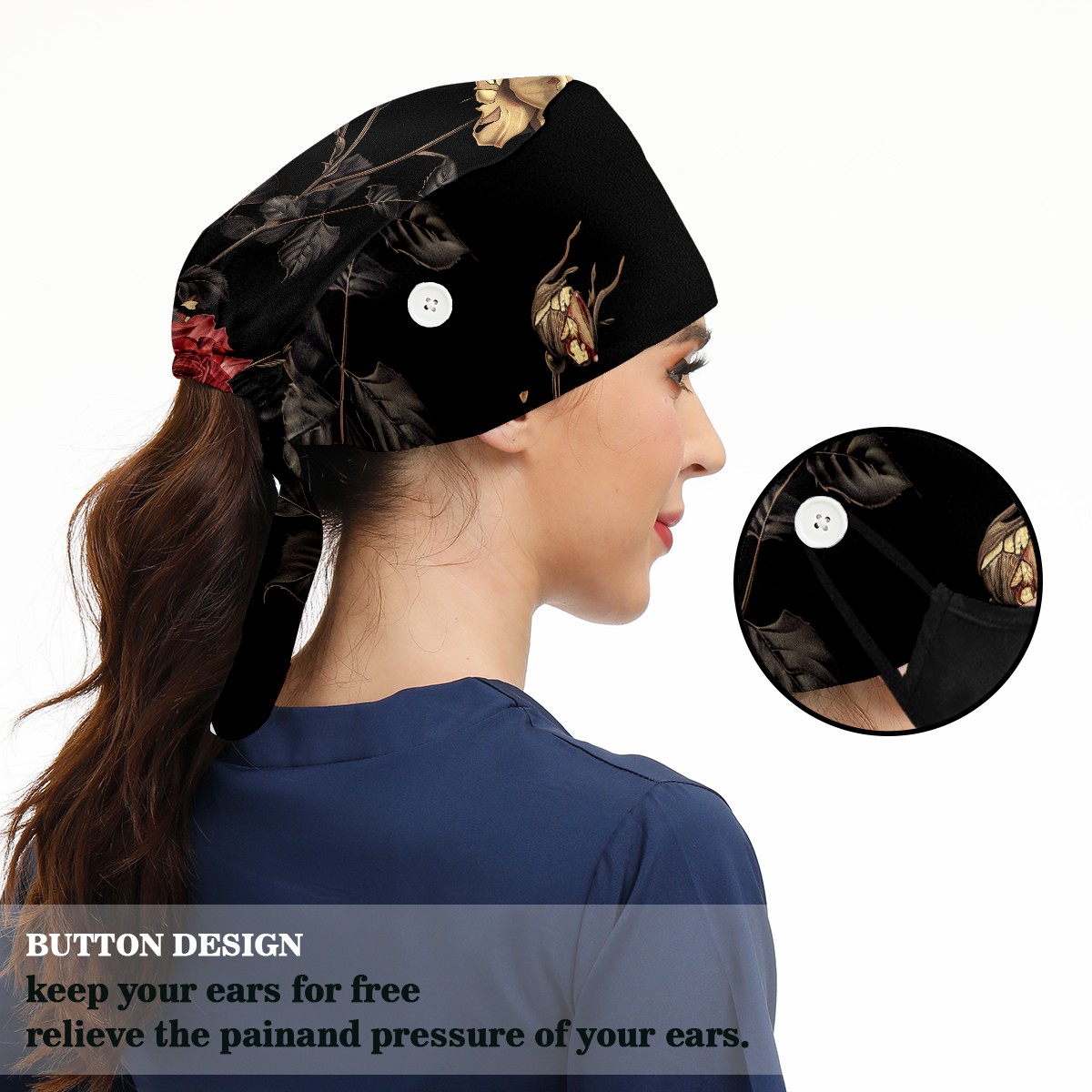 Working Caps with Button&Sweatband Satin Lined Cotton Adjustable Nurse Hats Elastic Band Scrub Cap Surgeon Hat Sandalwood A