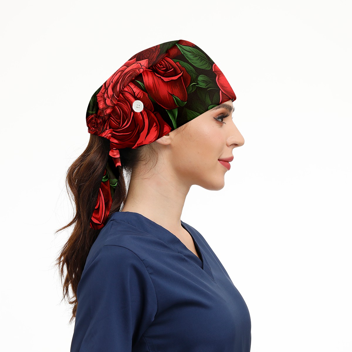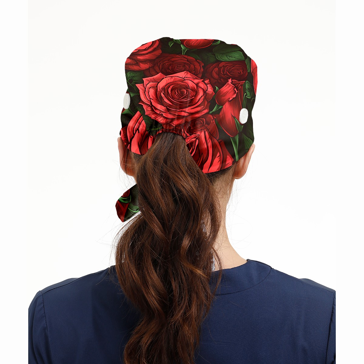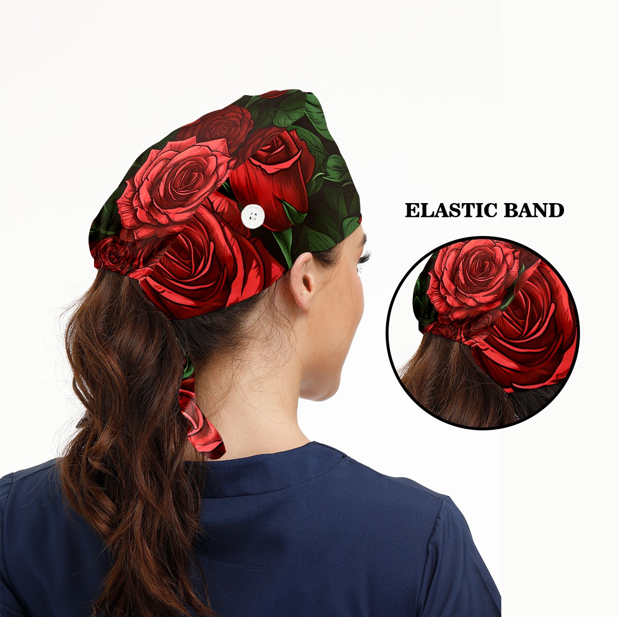 Working Caps with Button&Sweatband Satin Lined Cotton Adjustable Nurse Hats Elastic Band Scrub Cap Surgeon Hat Rose B