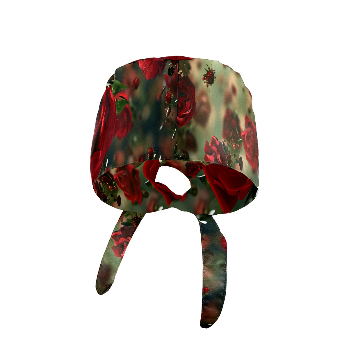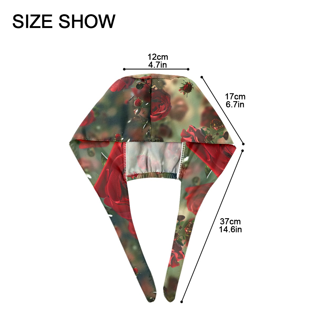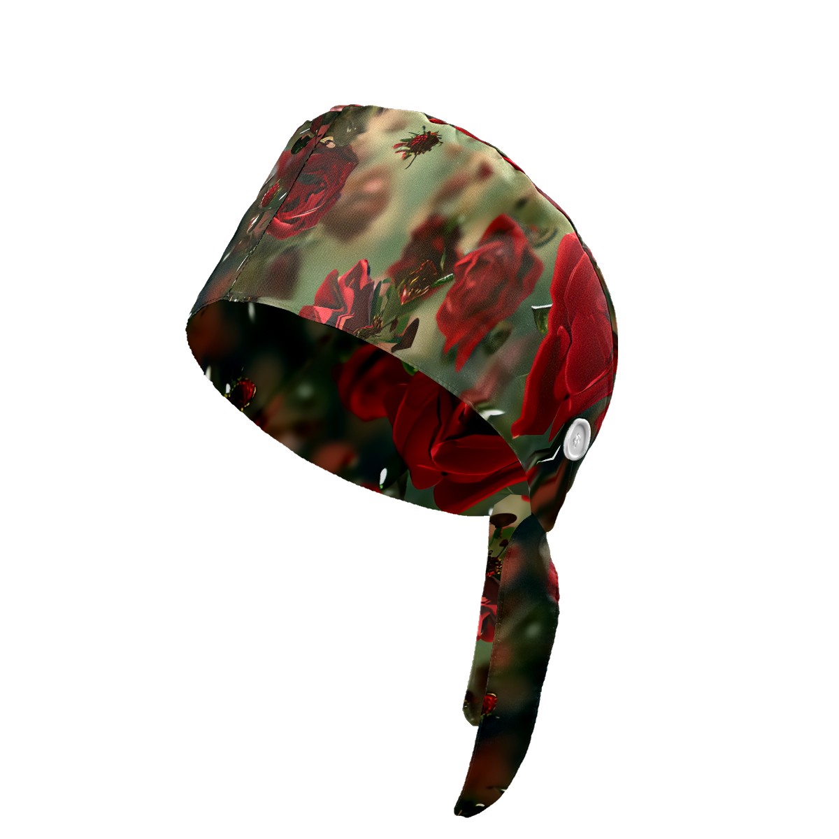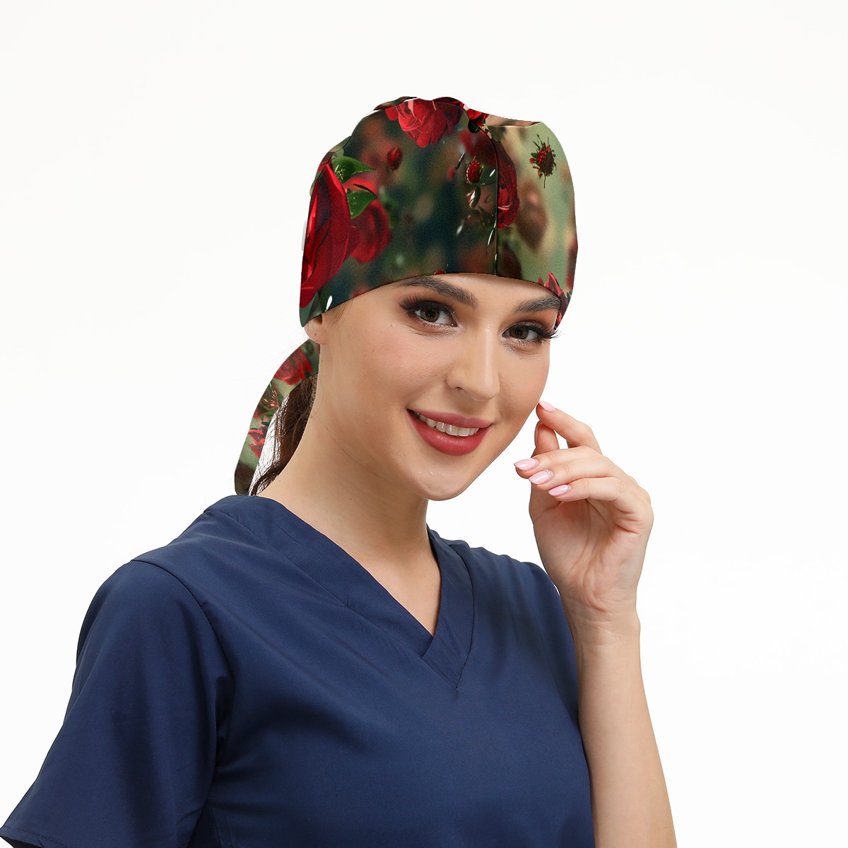 Working Caps with Button&Sweatband Satin Lined Cotton Adjustable Nurse Hats Elastic Band Scrub Cap Surgeon Hat Rose Flower B