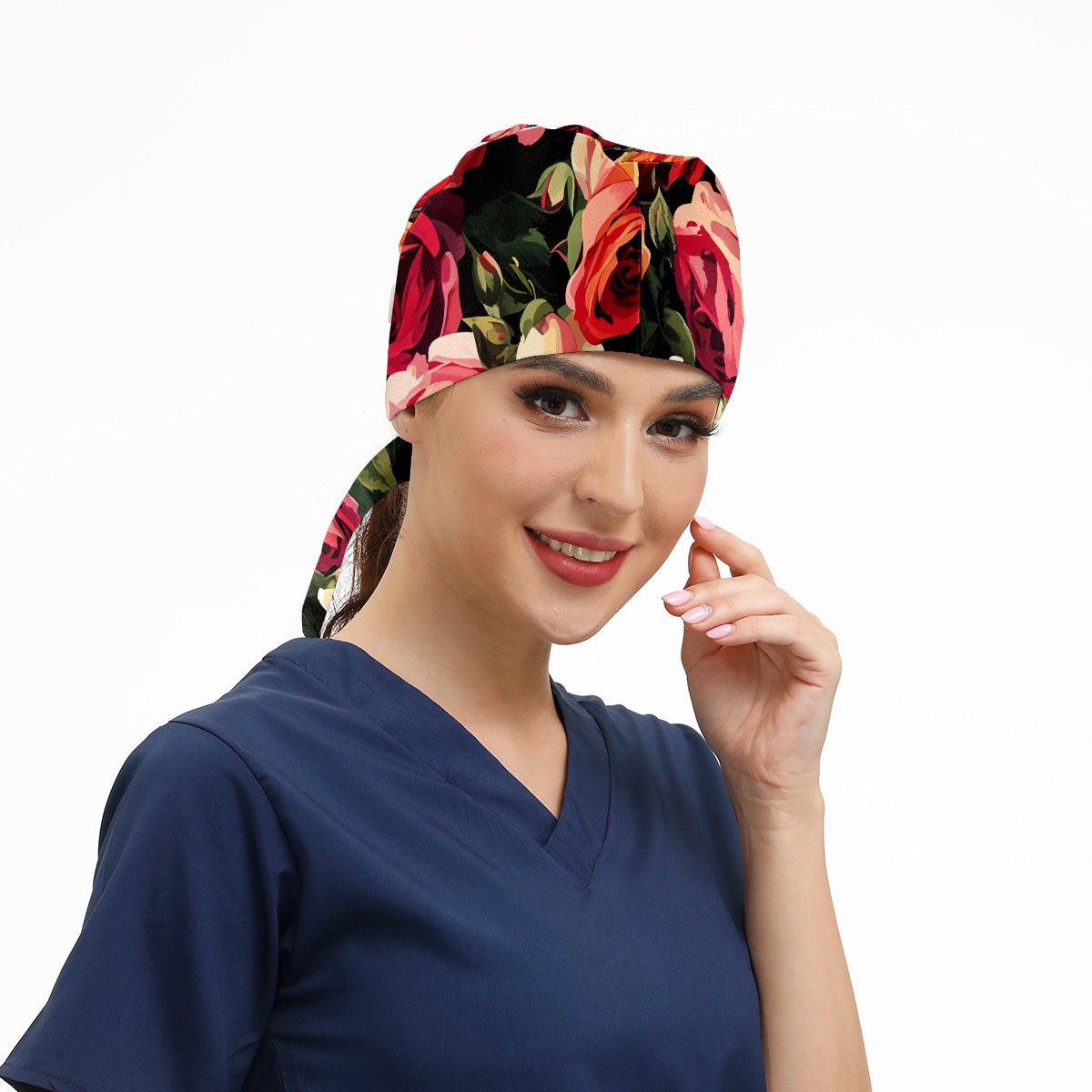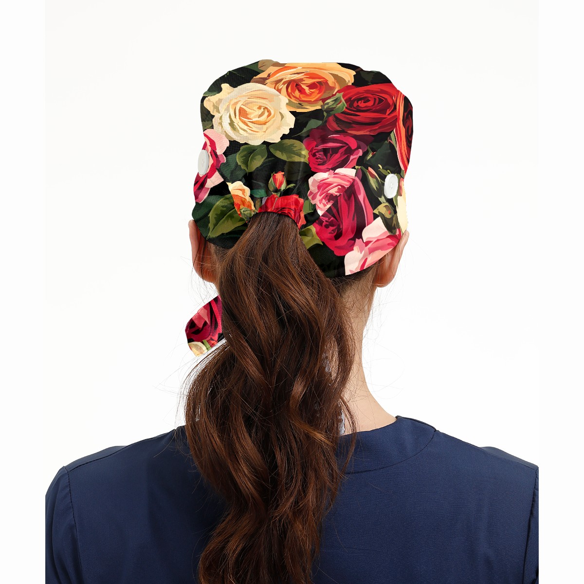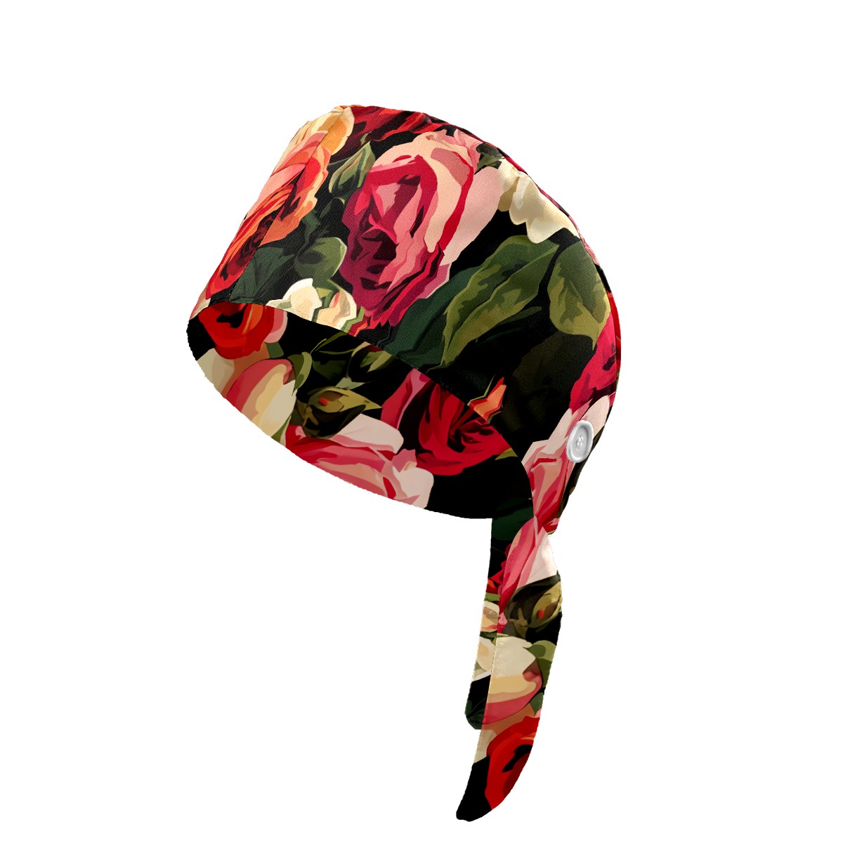 Working Caps with Button&Sweatband Satin Lined Cotton Adjustable Nurse Hats Elastic Band Scrub Cap Surgeon Hat Rugosa Rose B