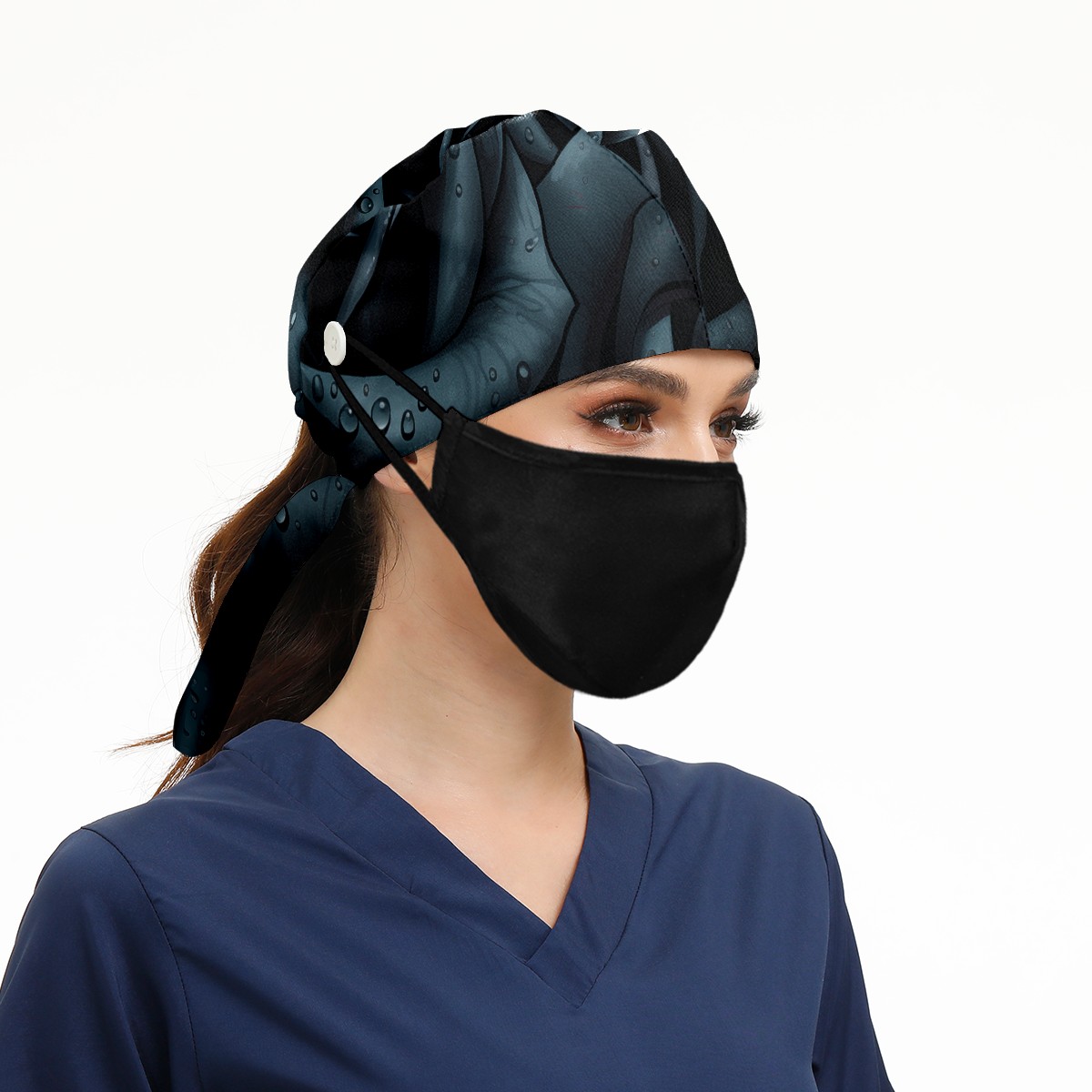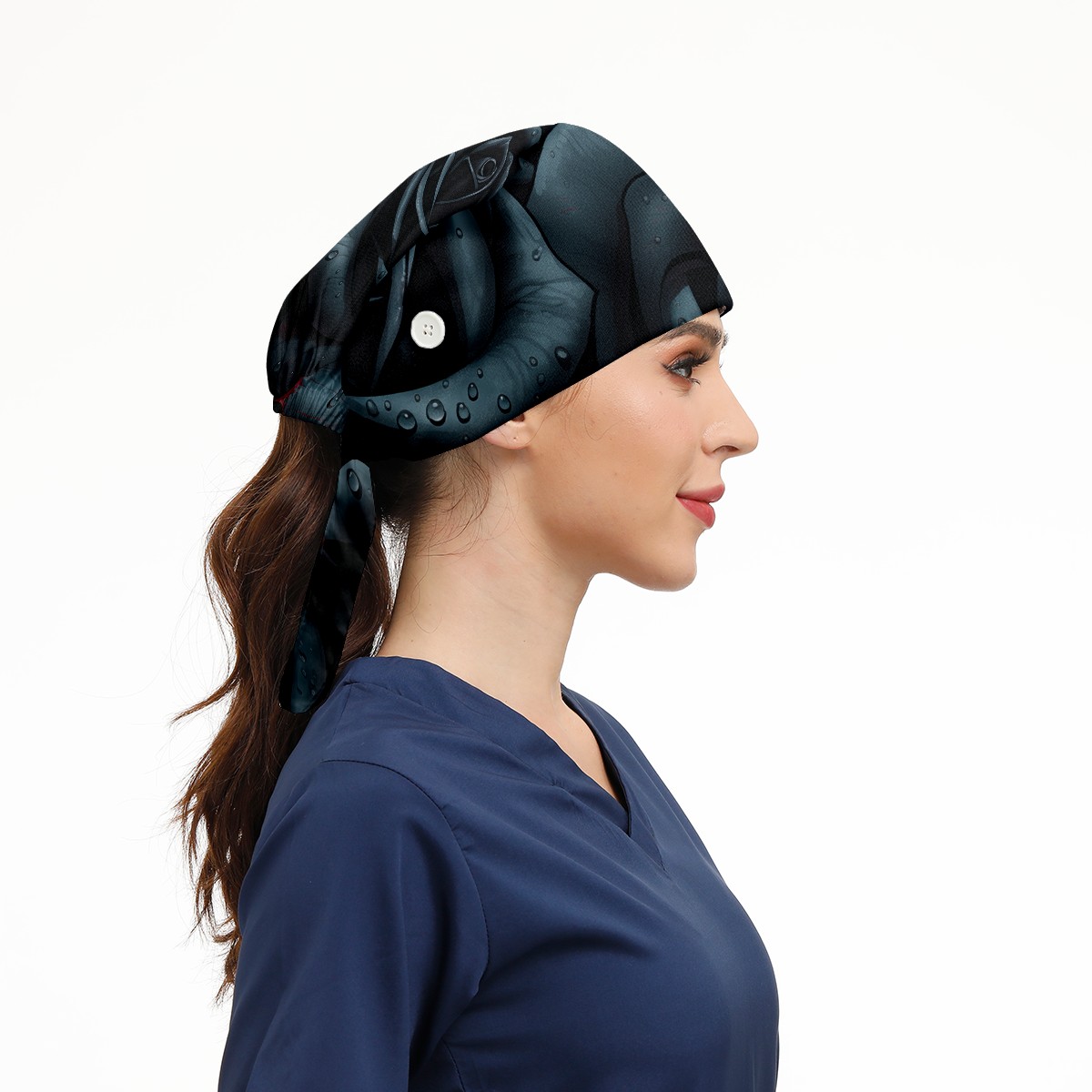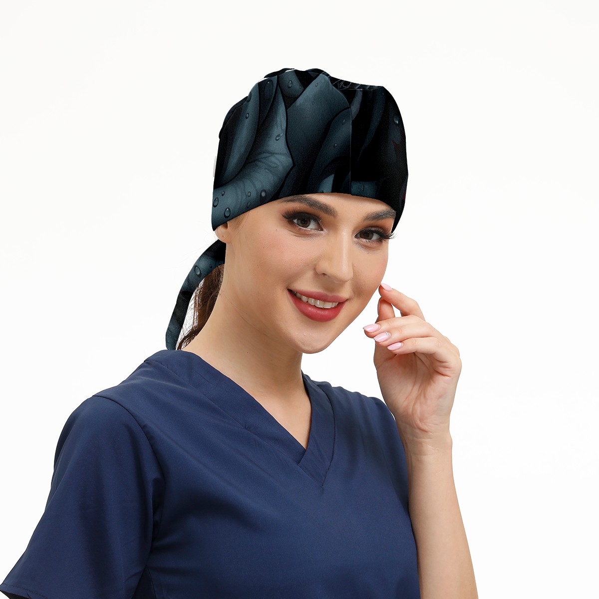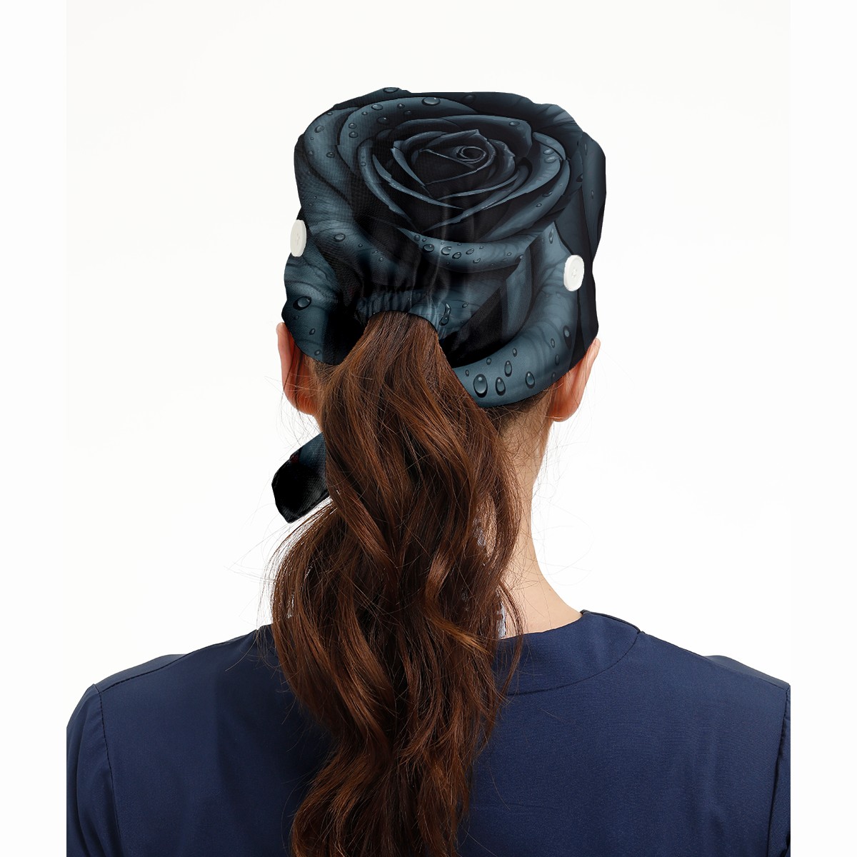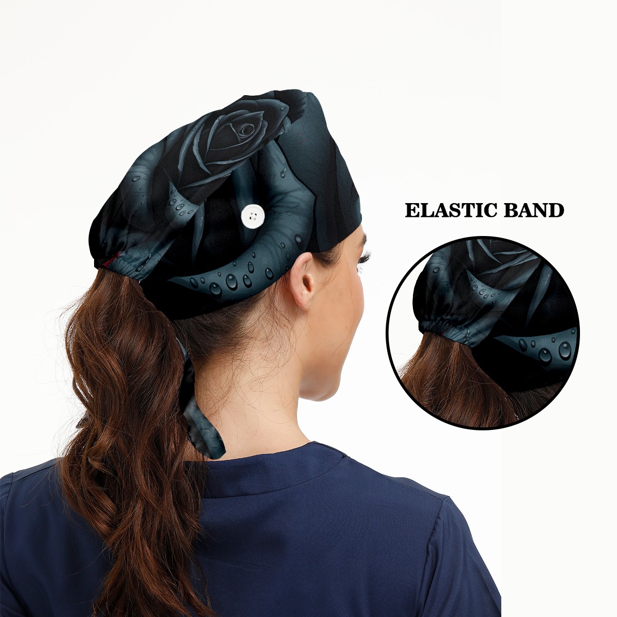 Working Caps with Button&Sweatband Satin Lined Cotton Adjustable Nurse Hats Elastic Band Scrub Cap Surgeon Hat Rose Flower C