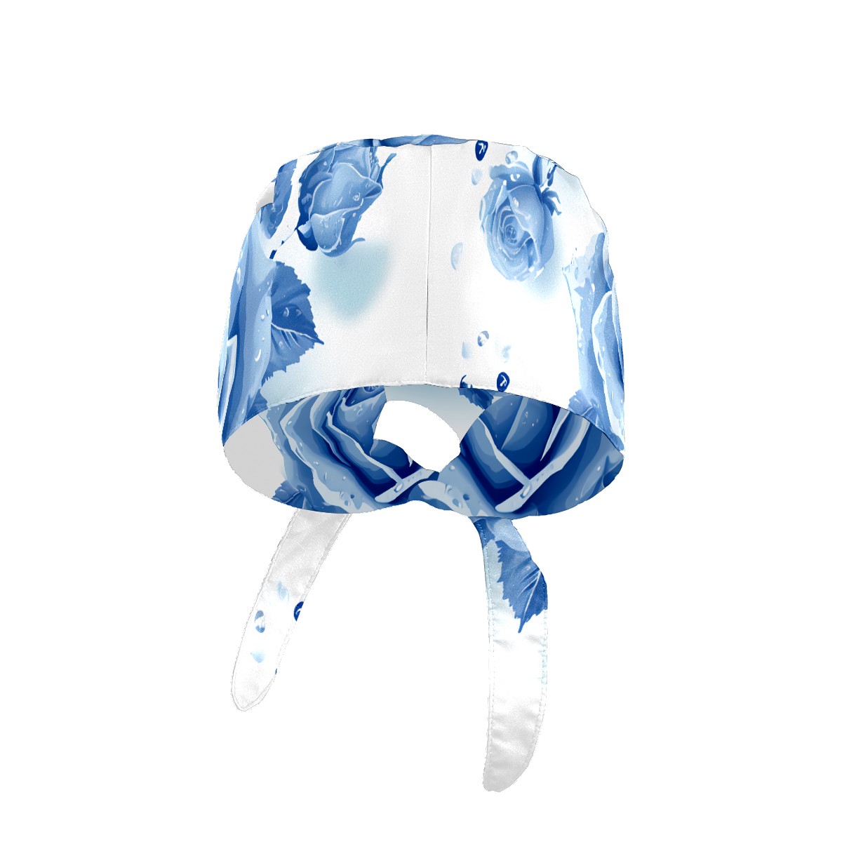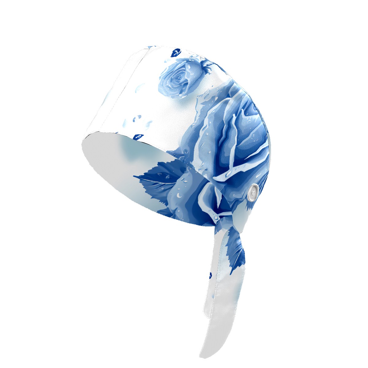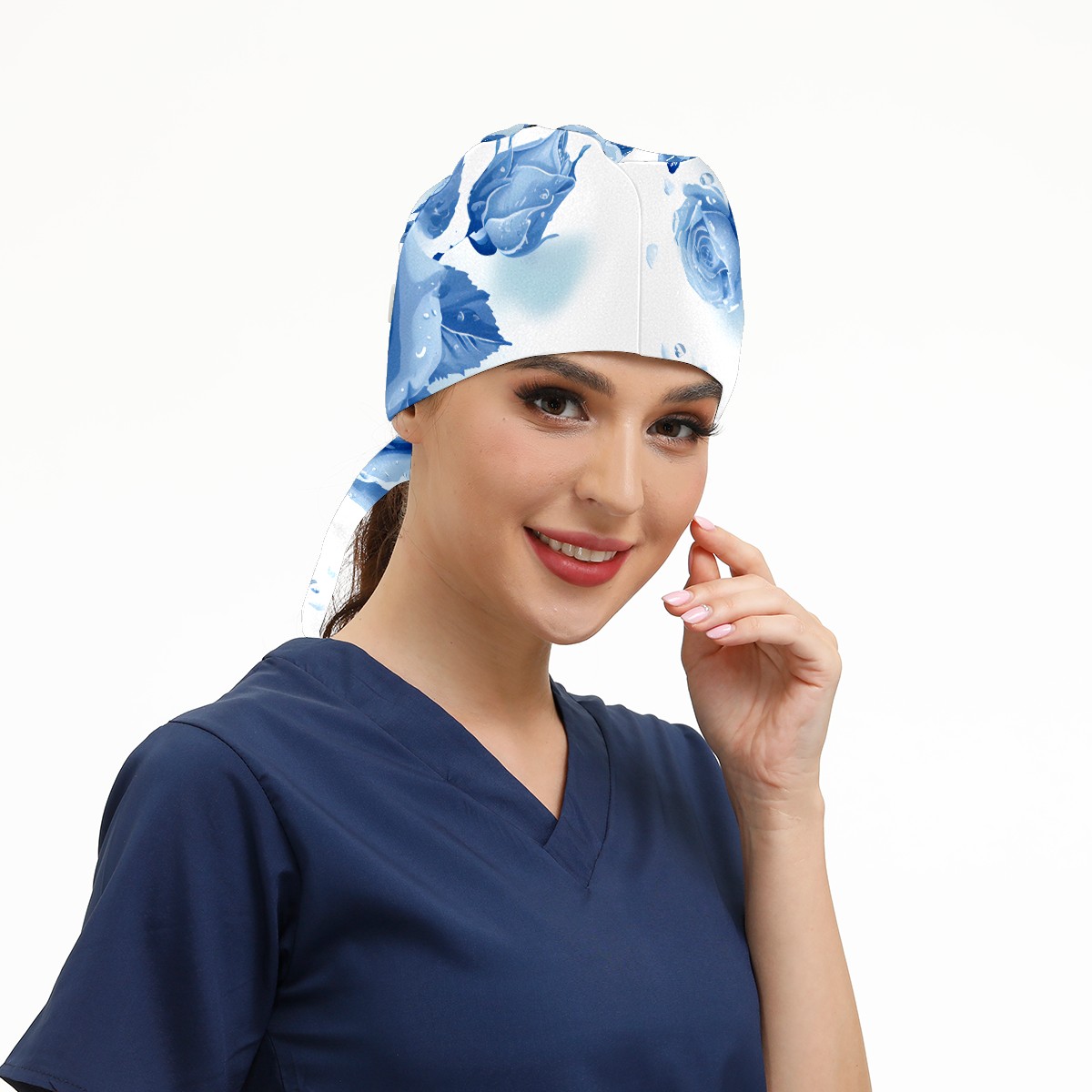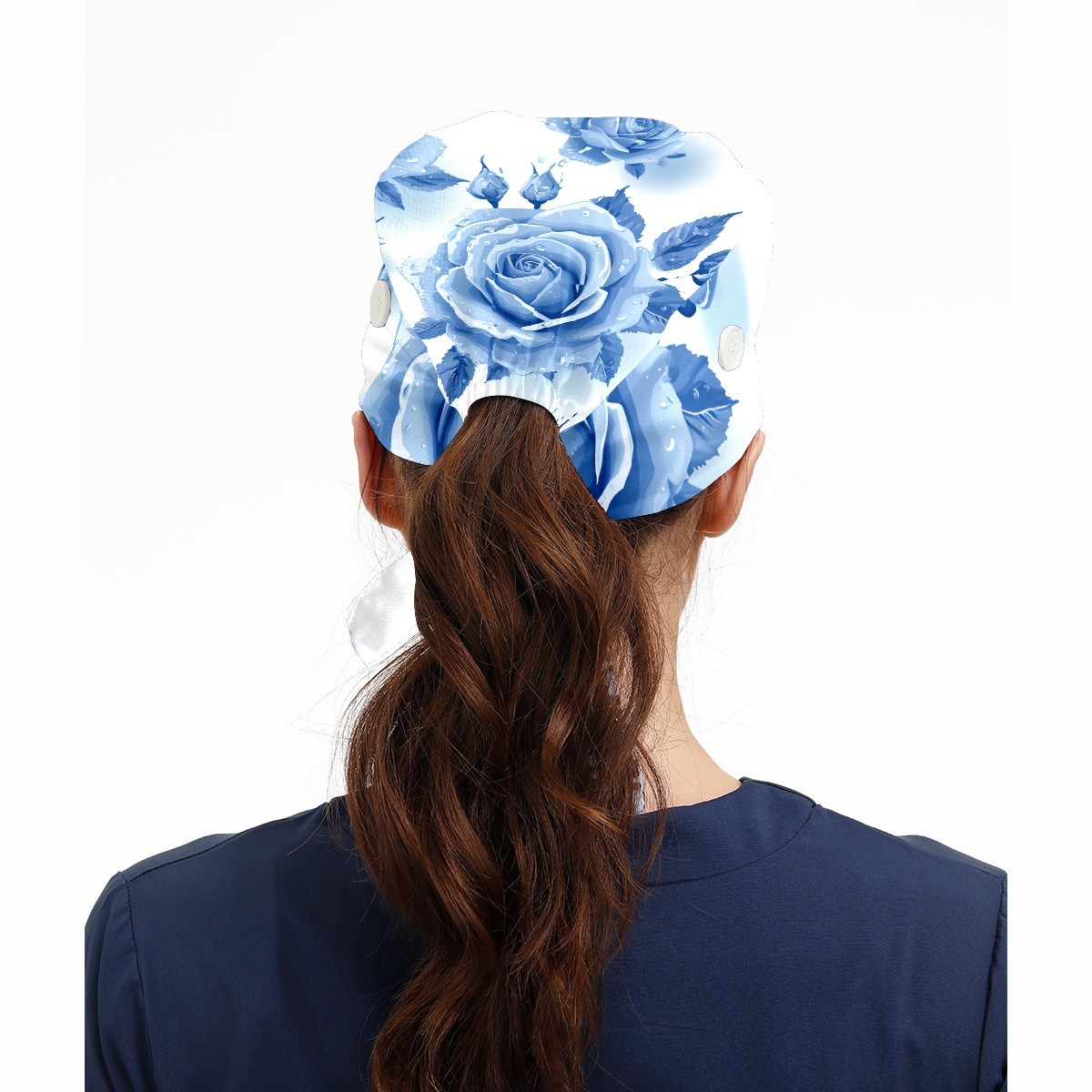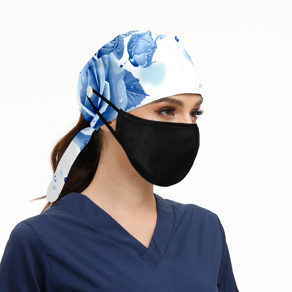 Working Caps with Button&Sweatband Satin Lined Cotton Adjustable Nurse Hats Elastic Band Scrub Cap Surgeon Hat Floral Rose C