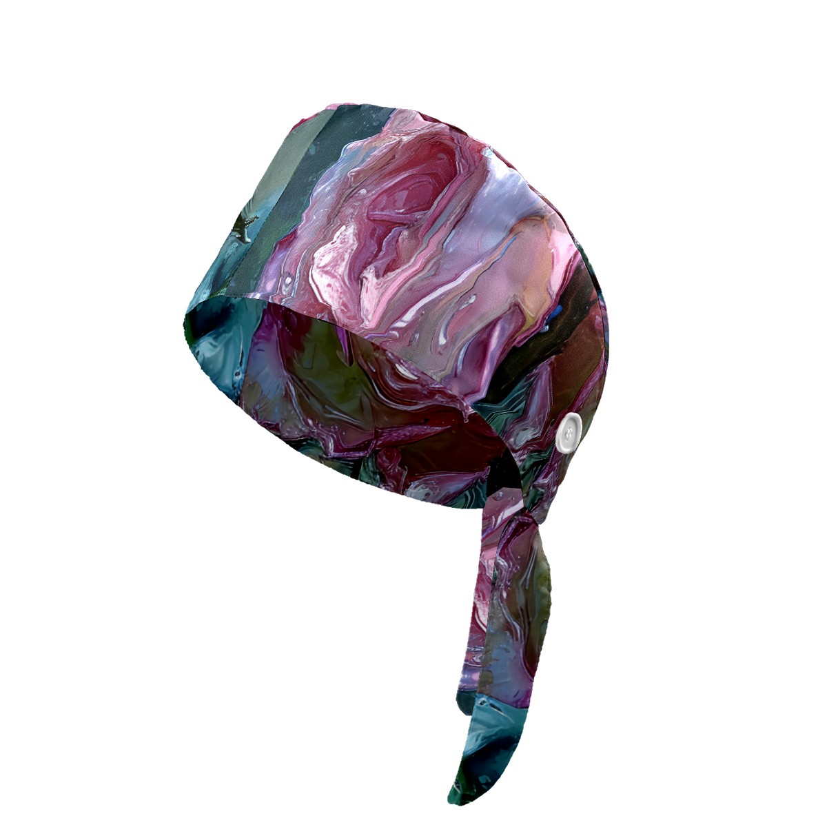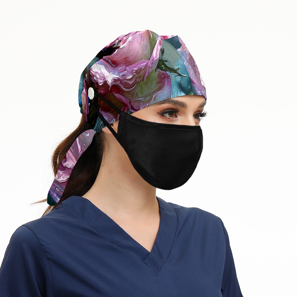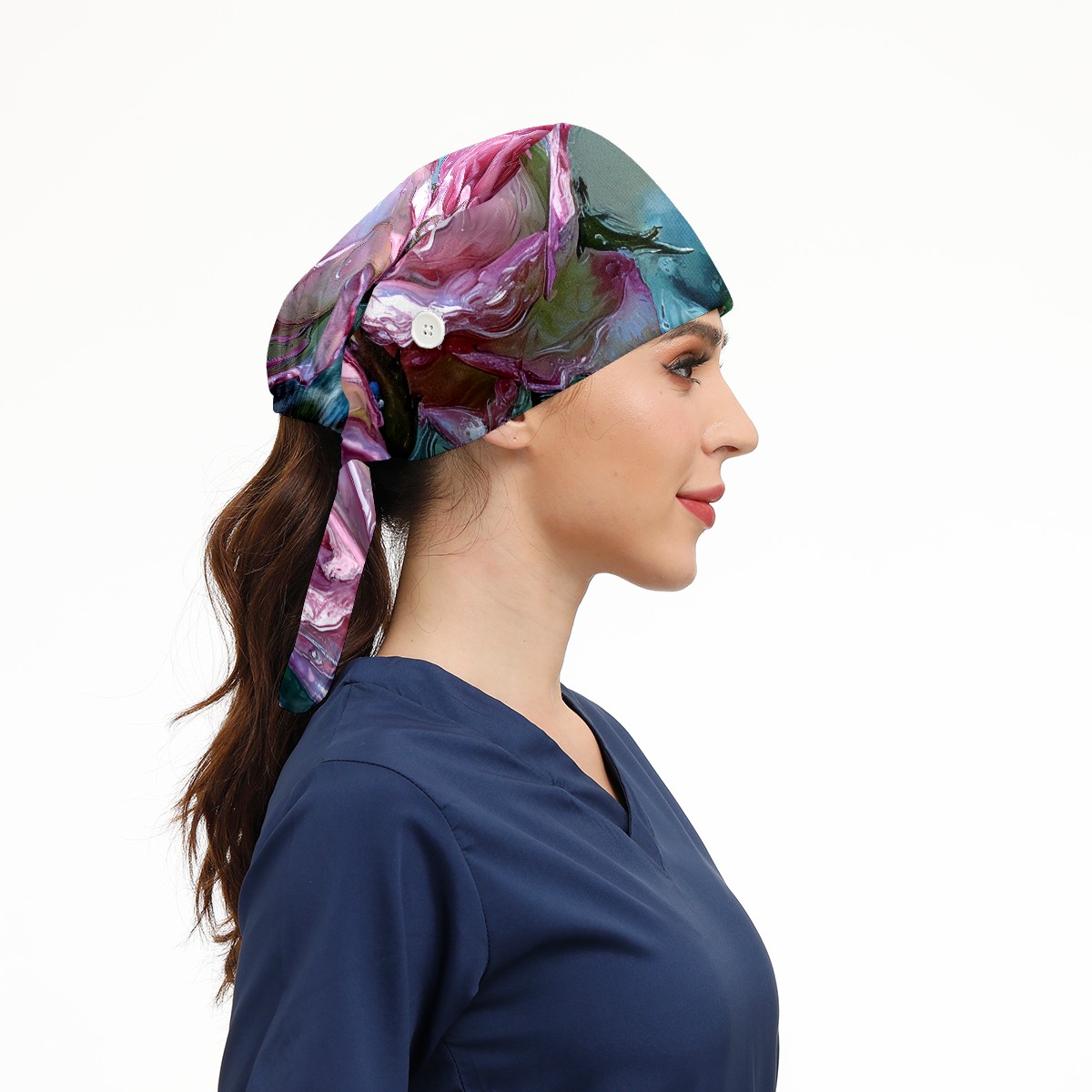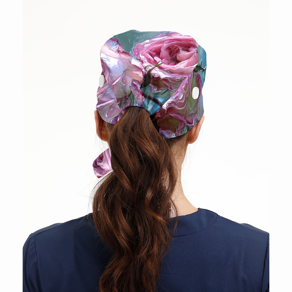Working Caps with Button&Sweatband Satin Lined Cotton Adjustable Nurse Hats Elastic Band Scrub Cap Surgeon Hat Rose Petal E