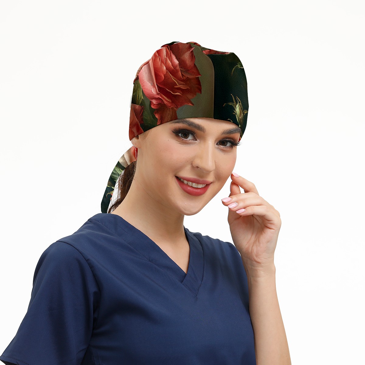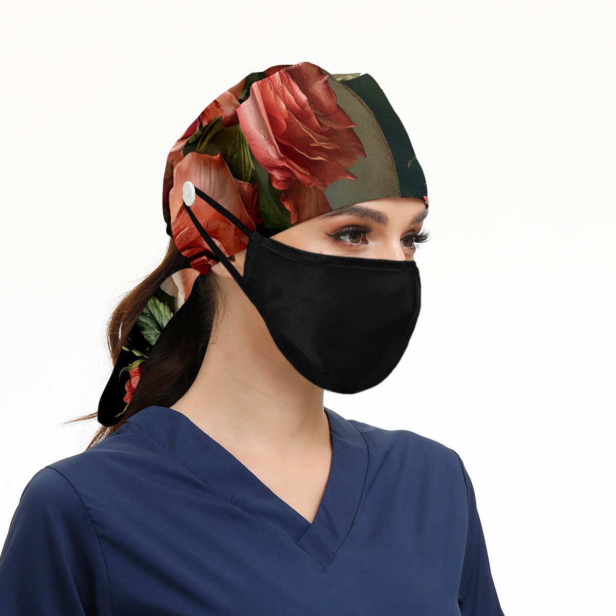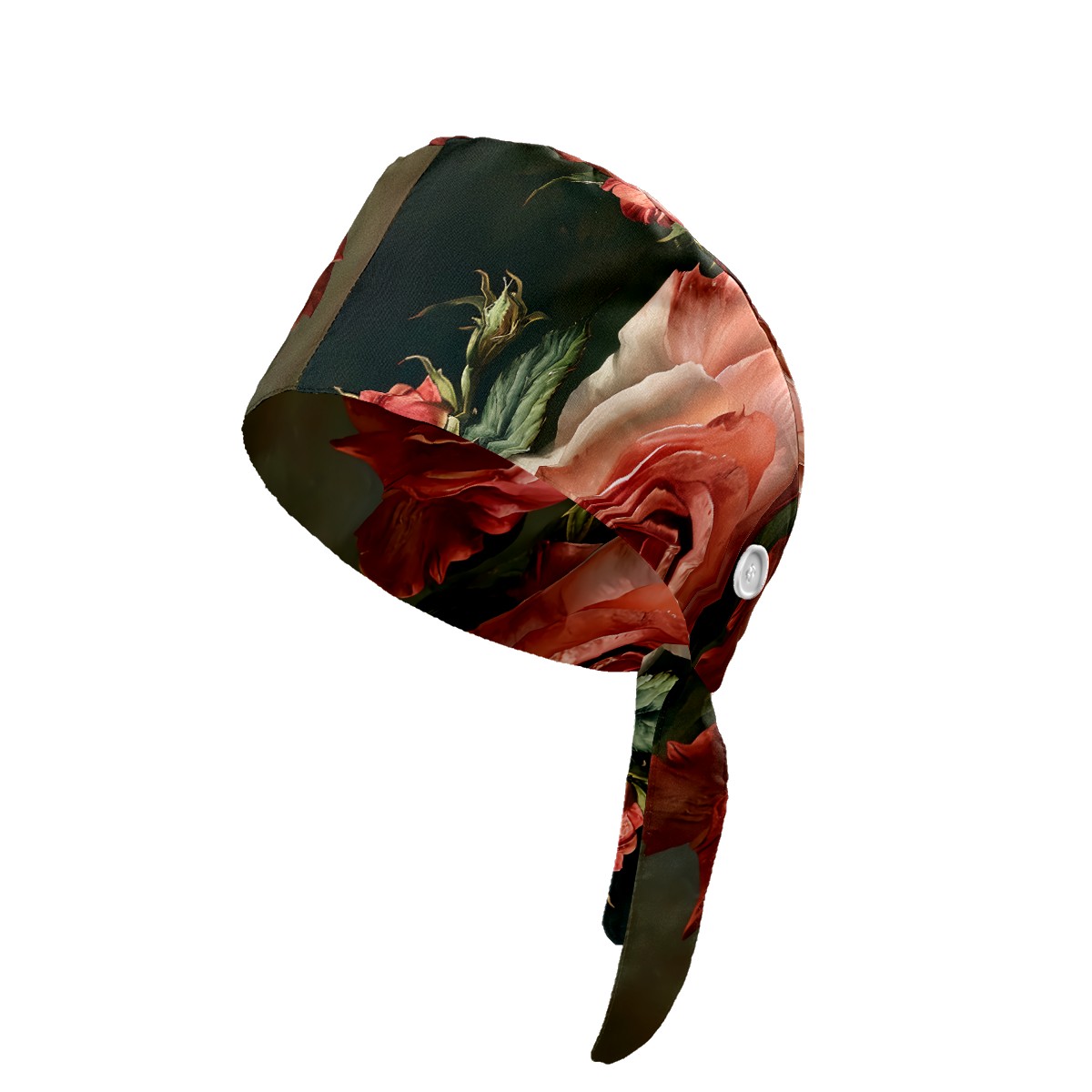 Working Caps with Button&Sweatband Satin Lined Cotton Adjustable Nurse Hats Elastic Band Scrub Cap Surgeon Hat Floral Rose E