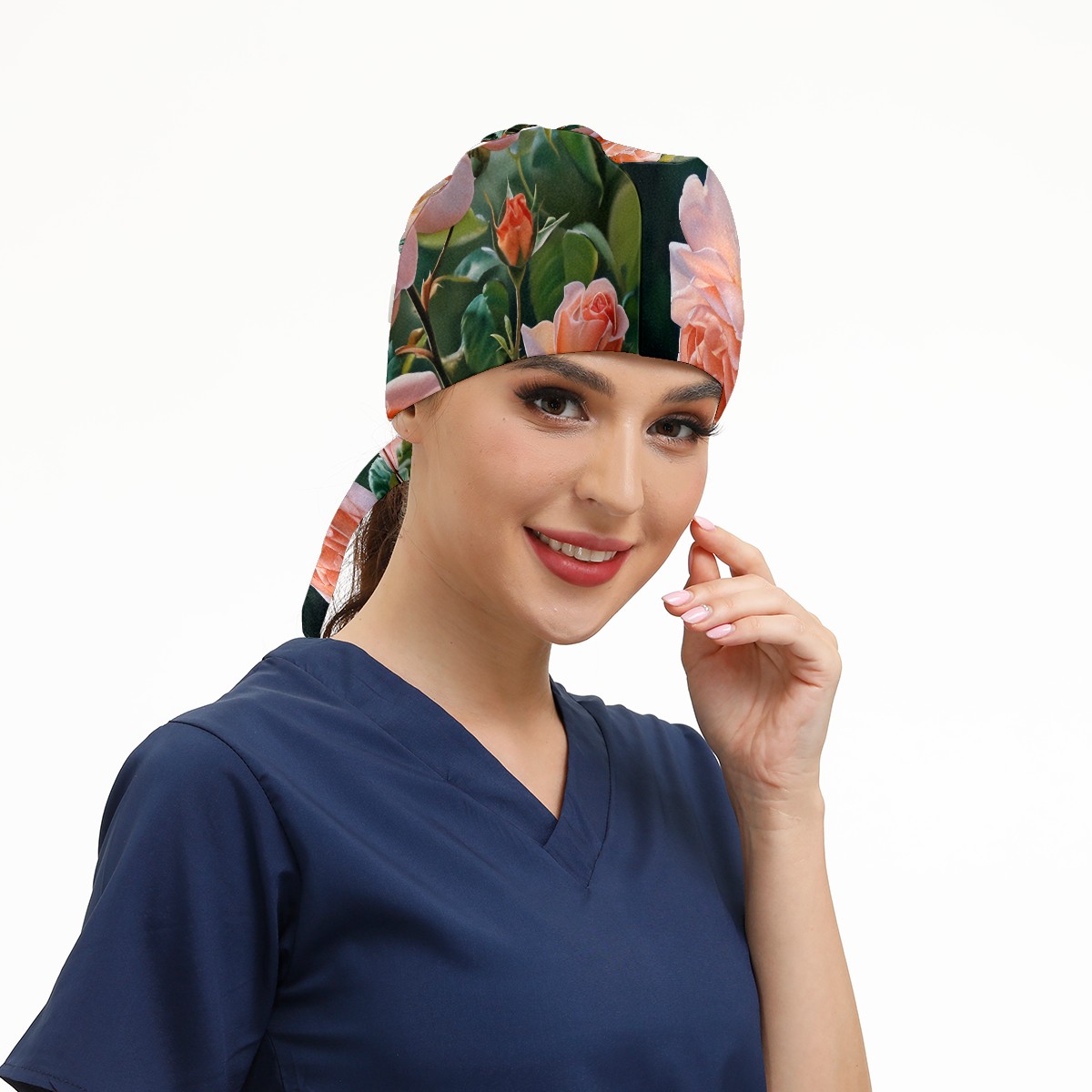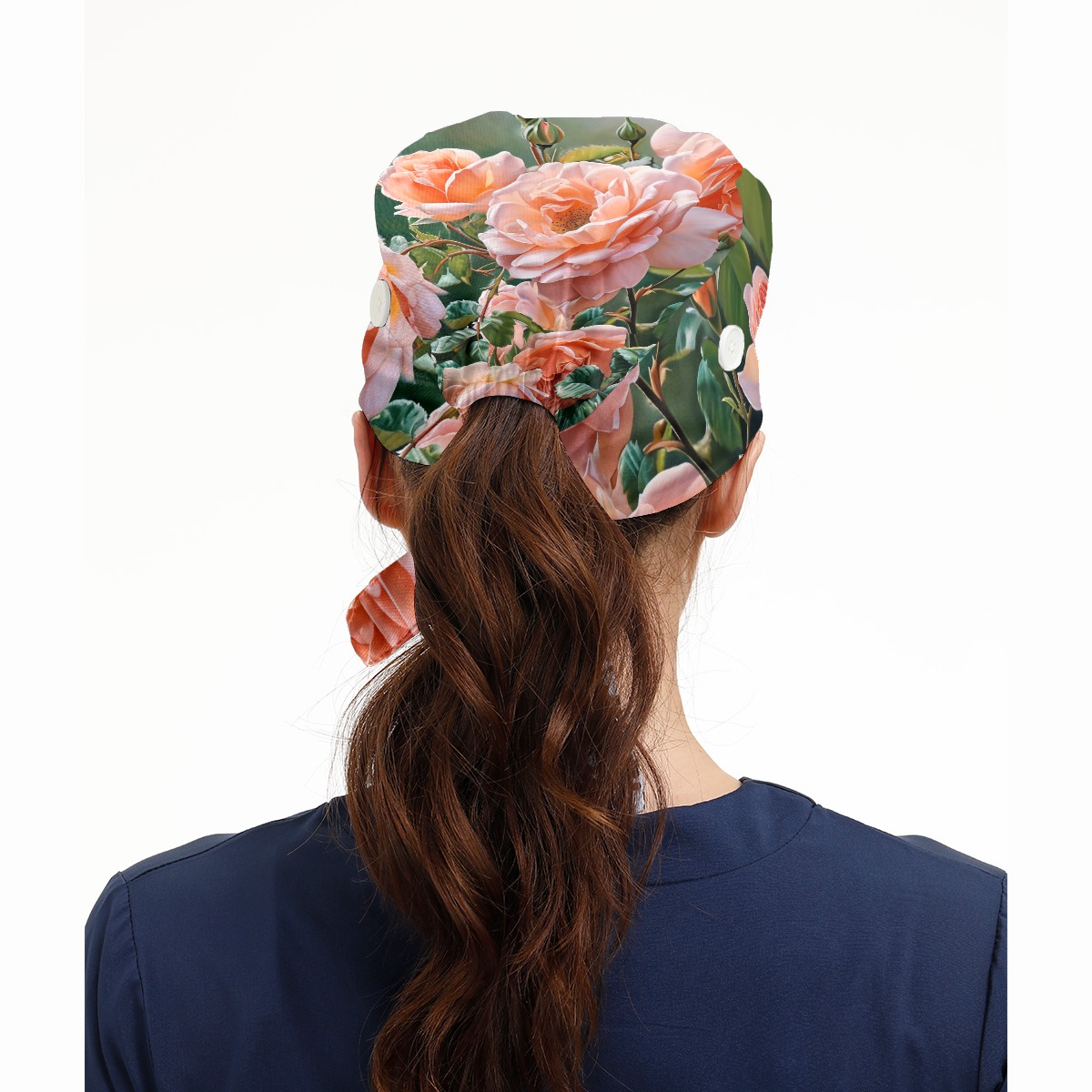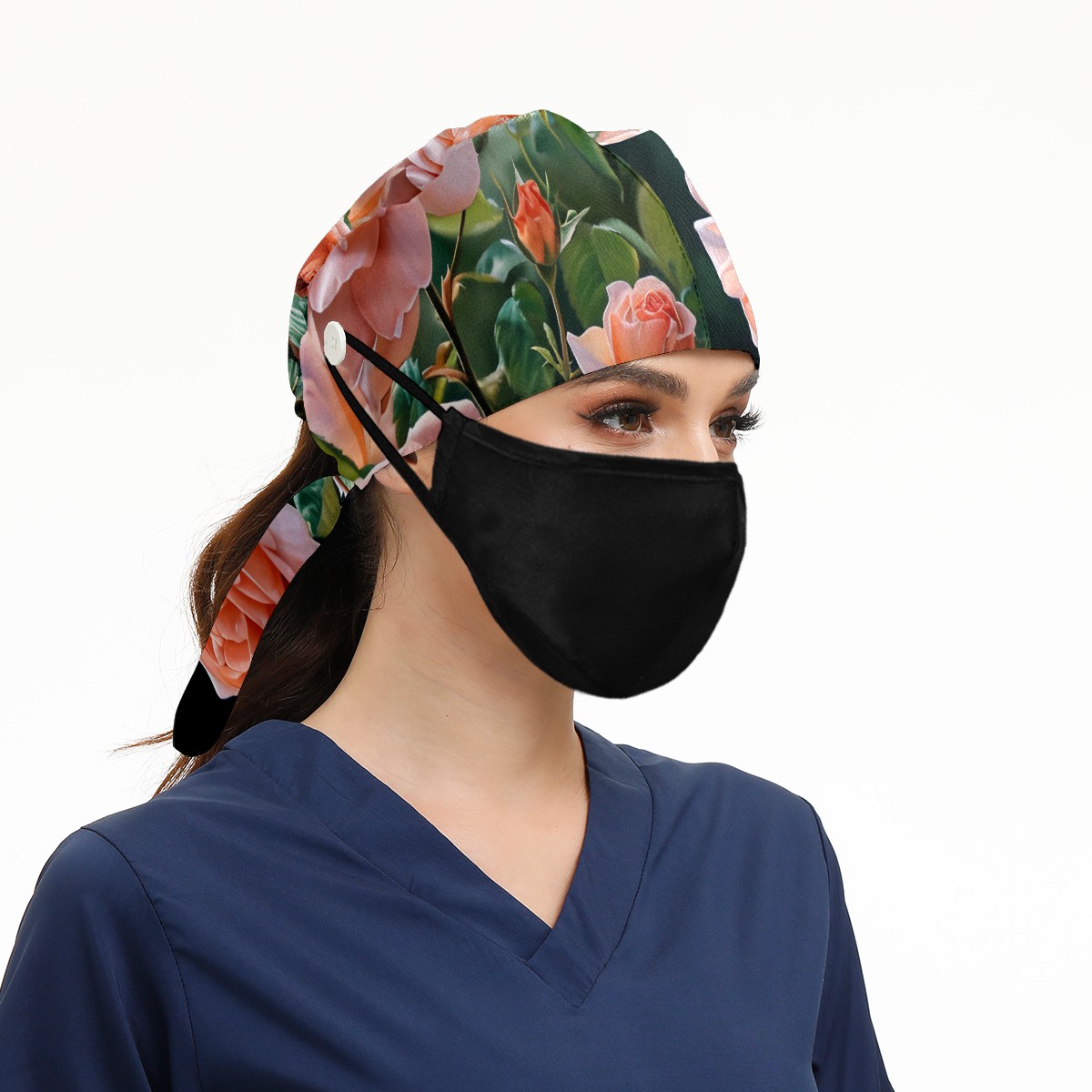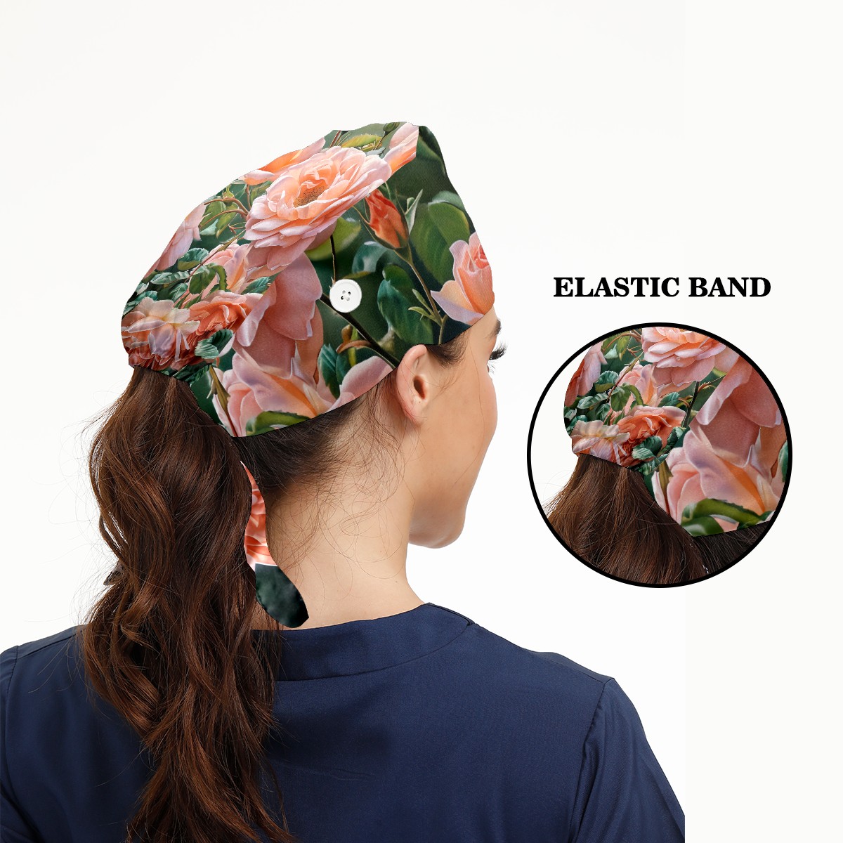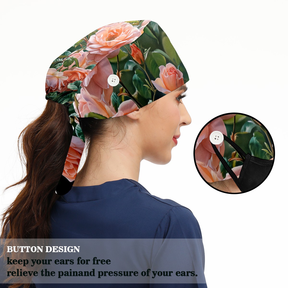 Working Caps with Button&Sweatband Satin Lined Cotton Adjustable Nurse Hats Elastic Band Scrub Cap Surgeon Hat Rose F