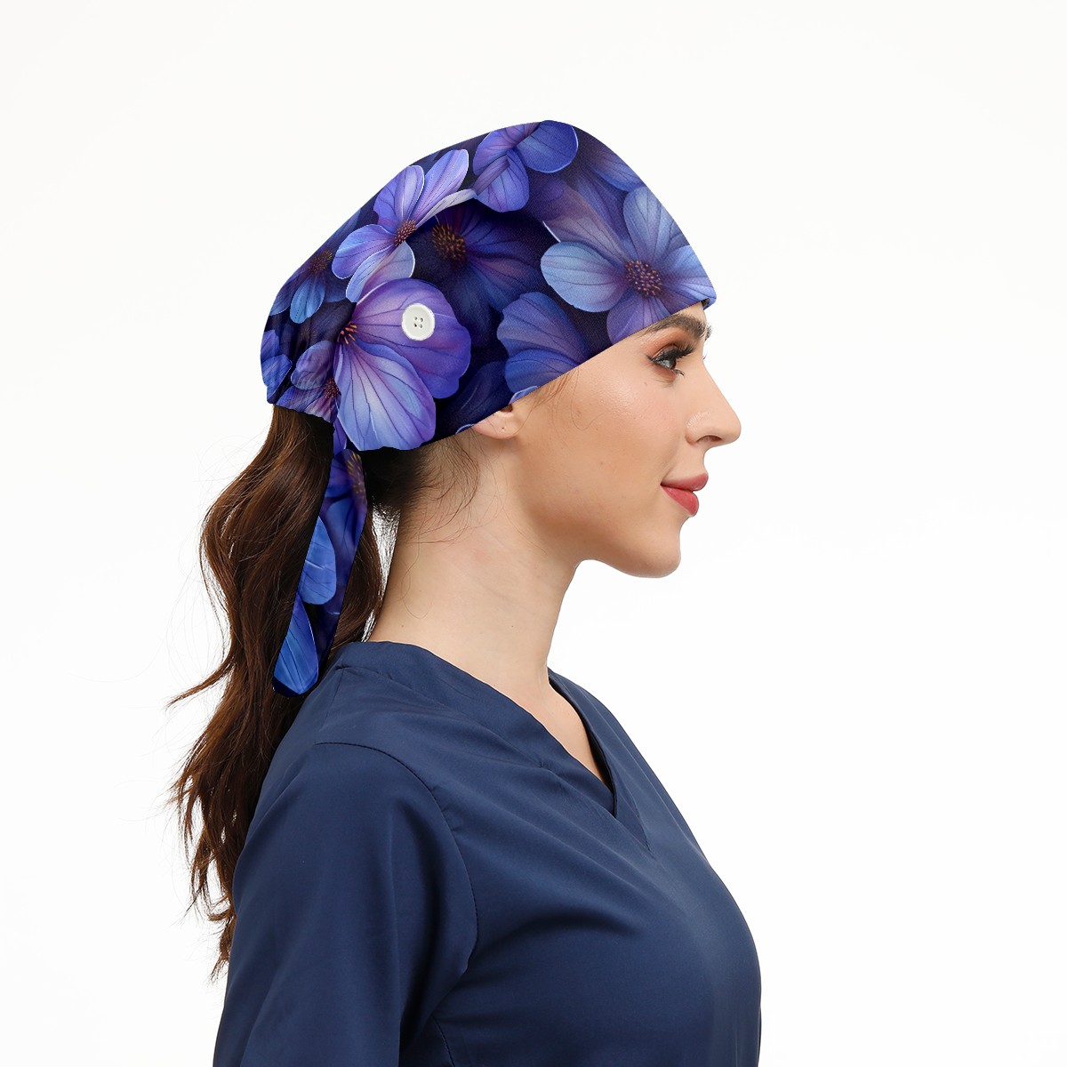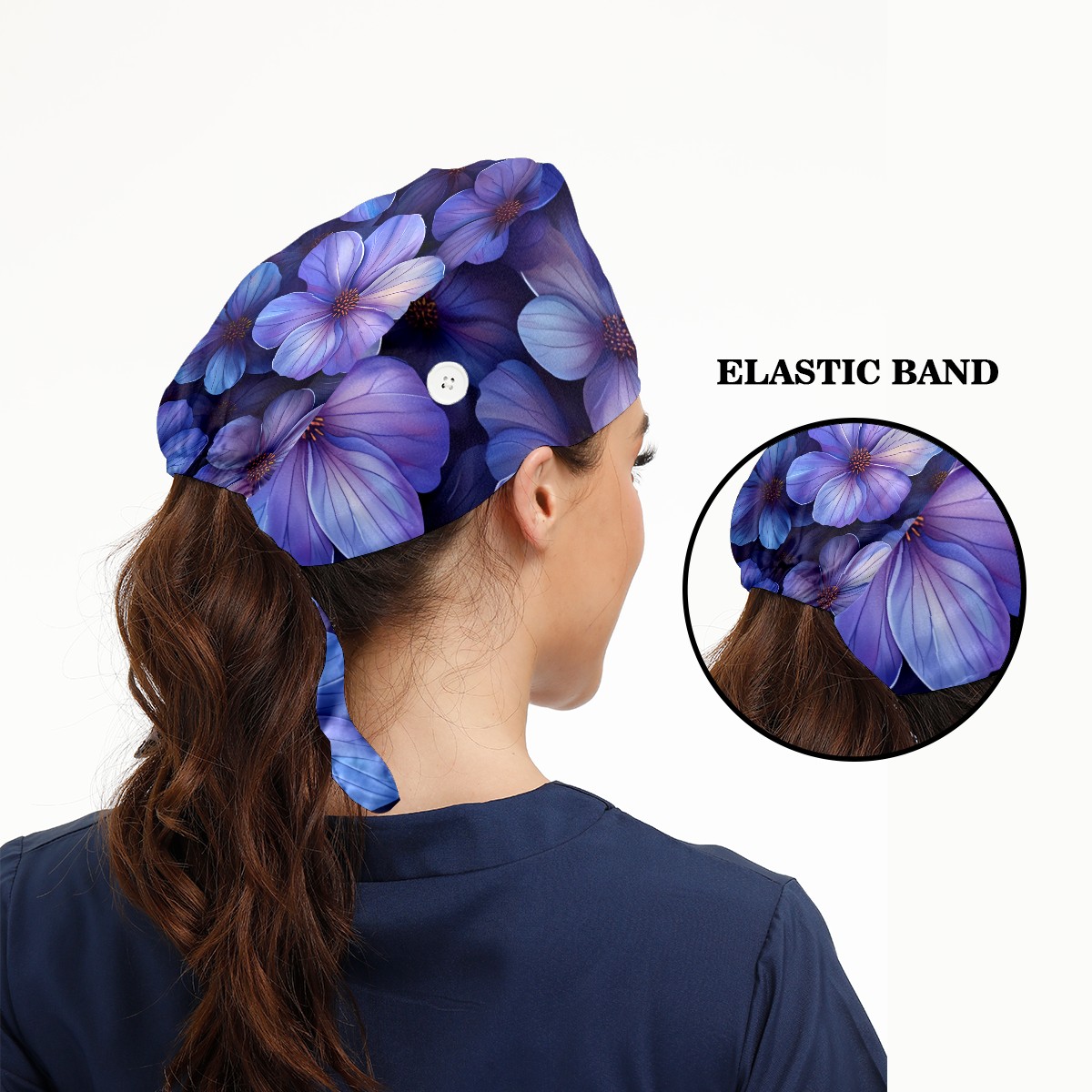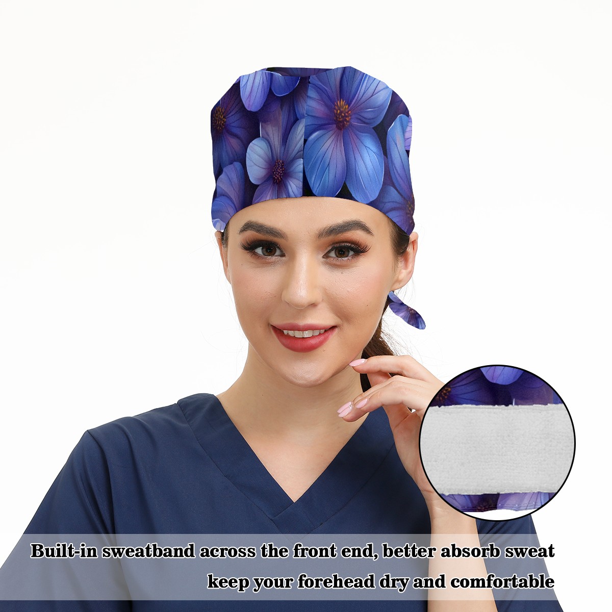 Working Caps with Button&Sweatband Satin Lined Cotton Adjustable Nurse Hats Elastic Band Scrub Cap Surgeon Hat Floral A