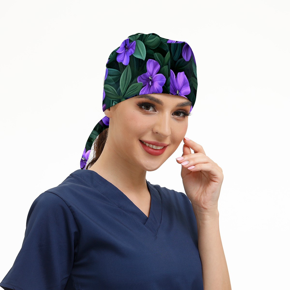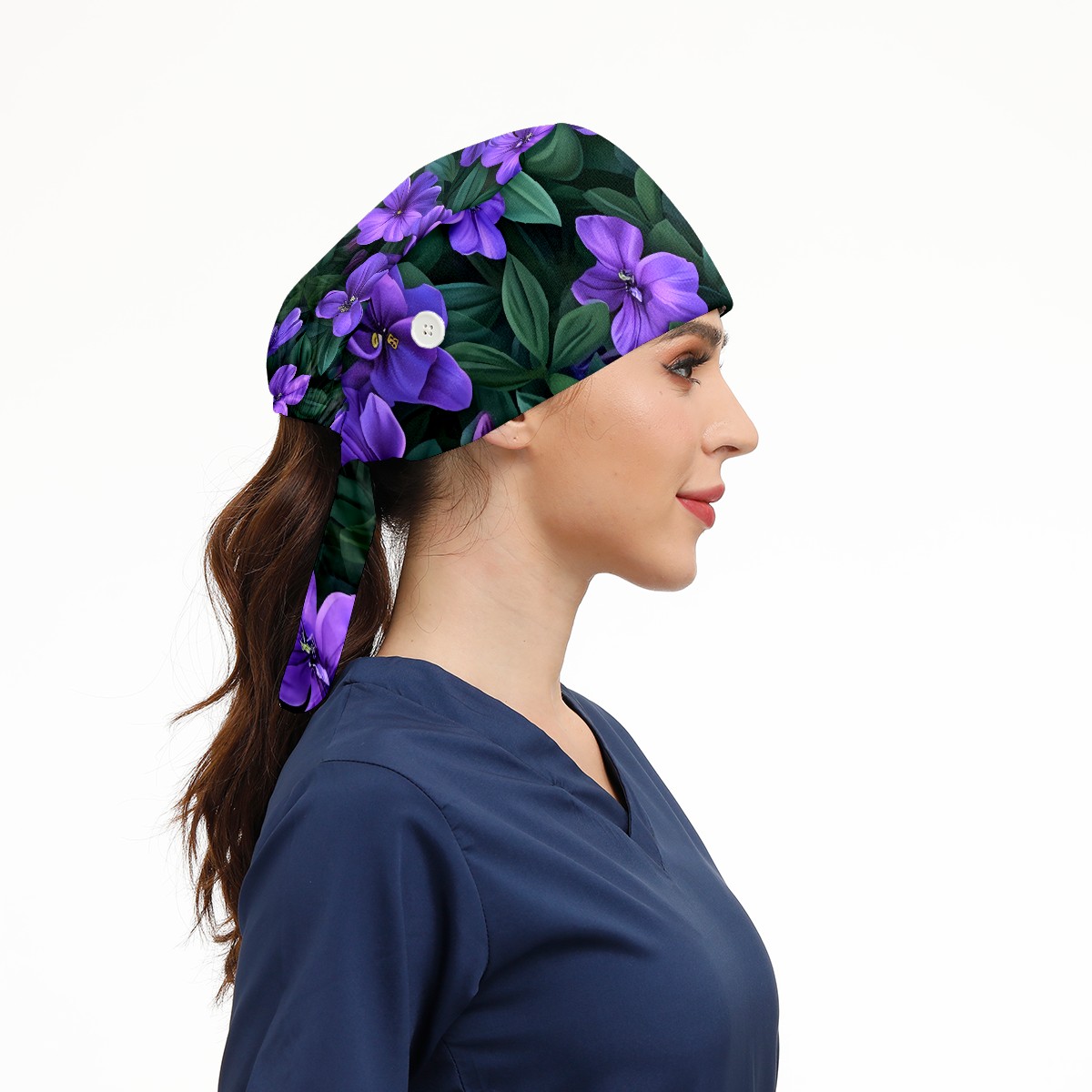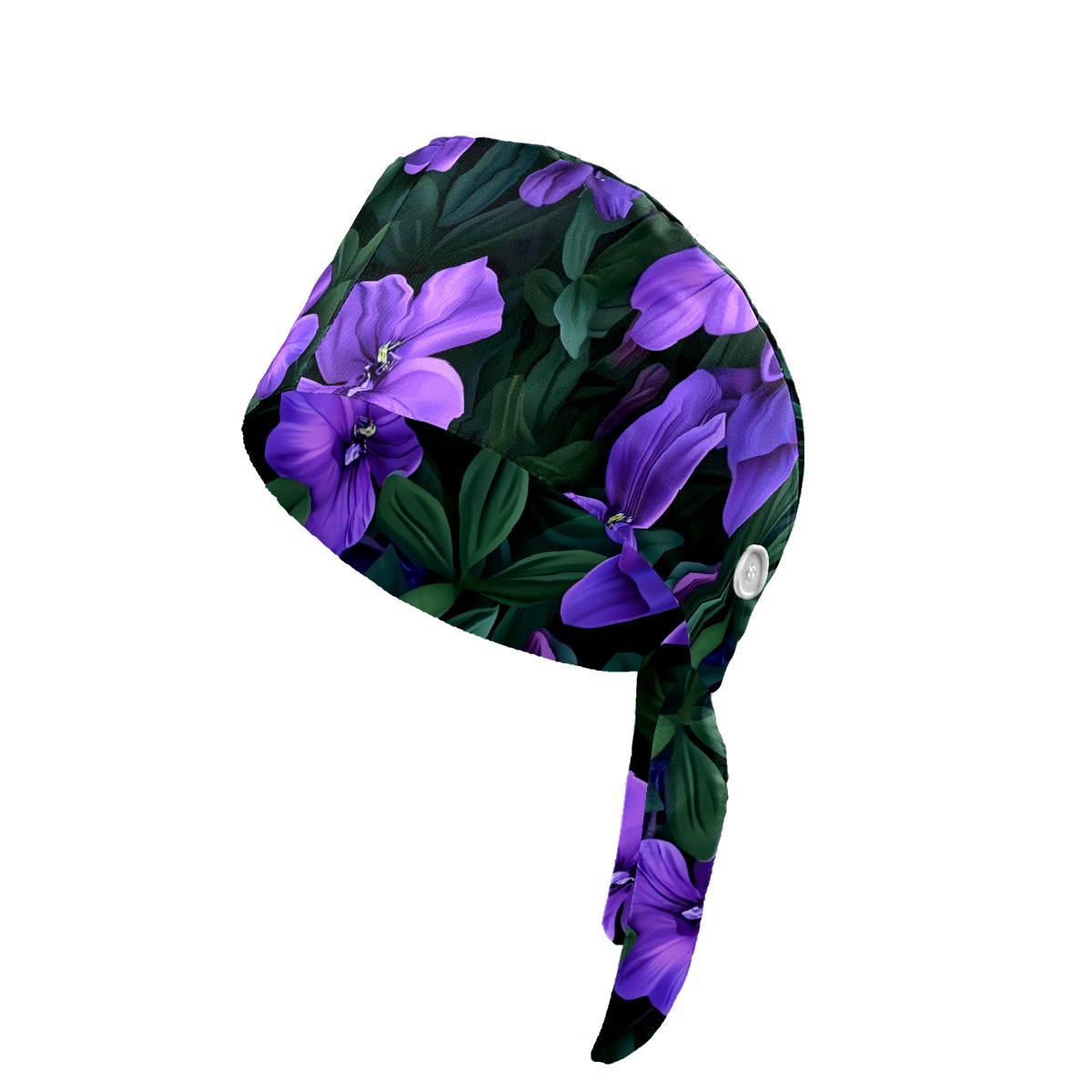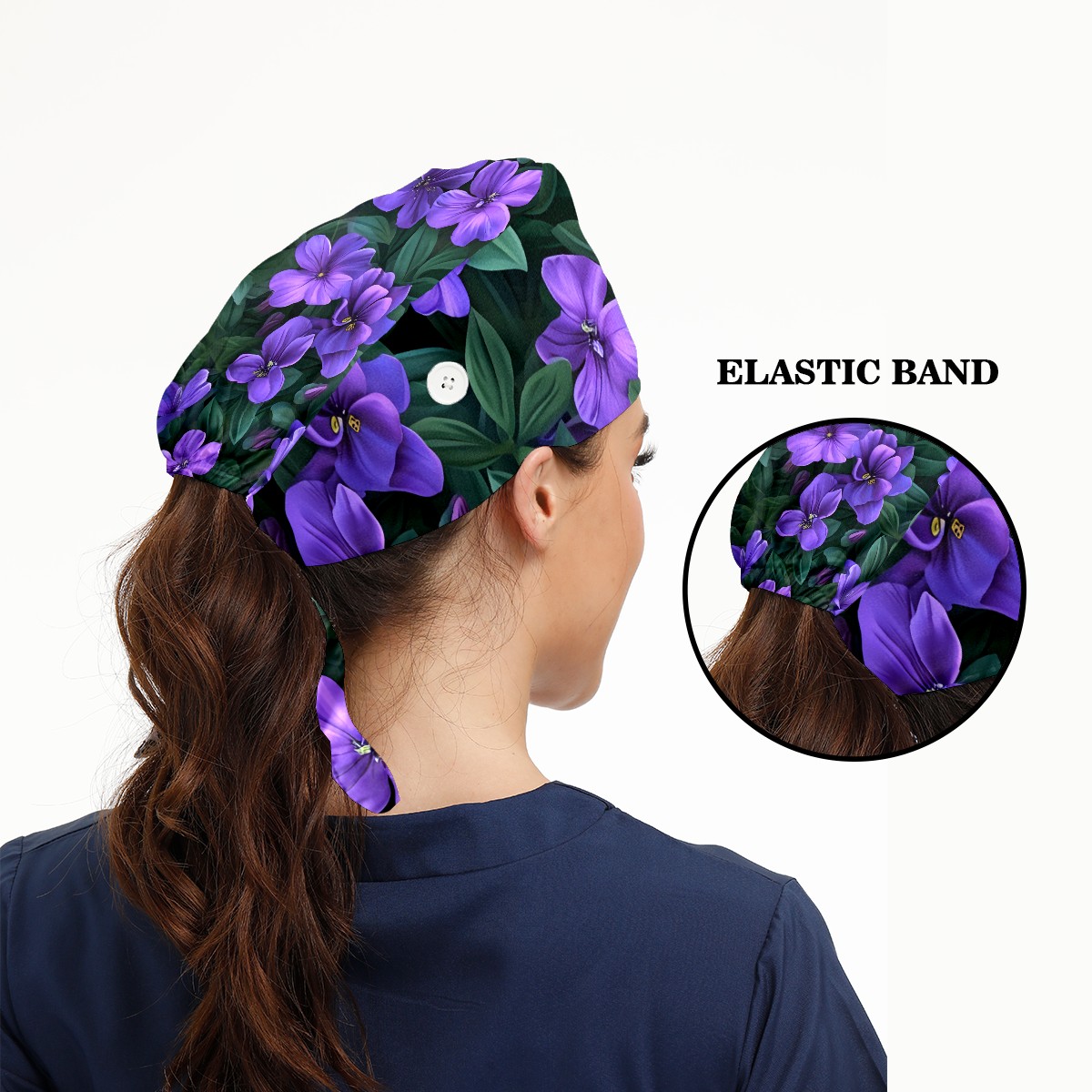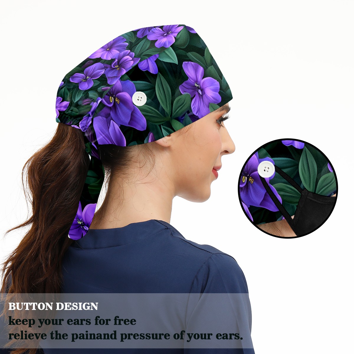 Working Caps with Button&Sweatband Satin Lined Cotton Adjustable Nurse Hats Elastic Band Scrub Cap Surgeon Hat Blossom B