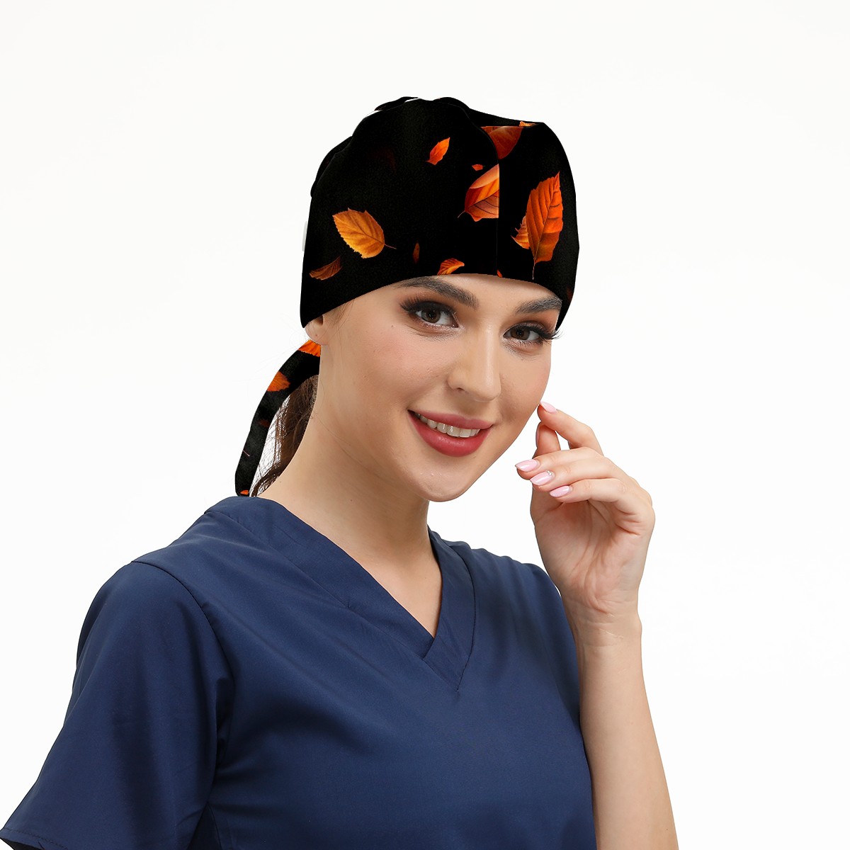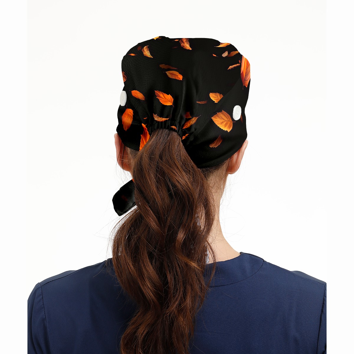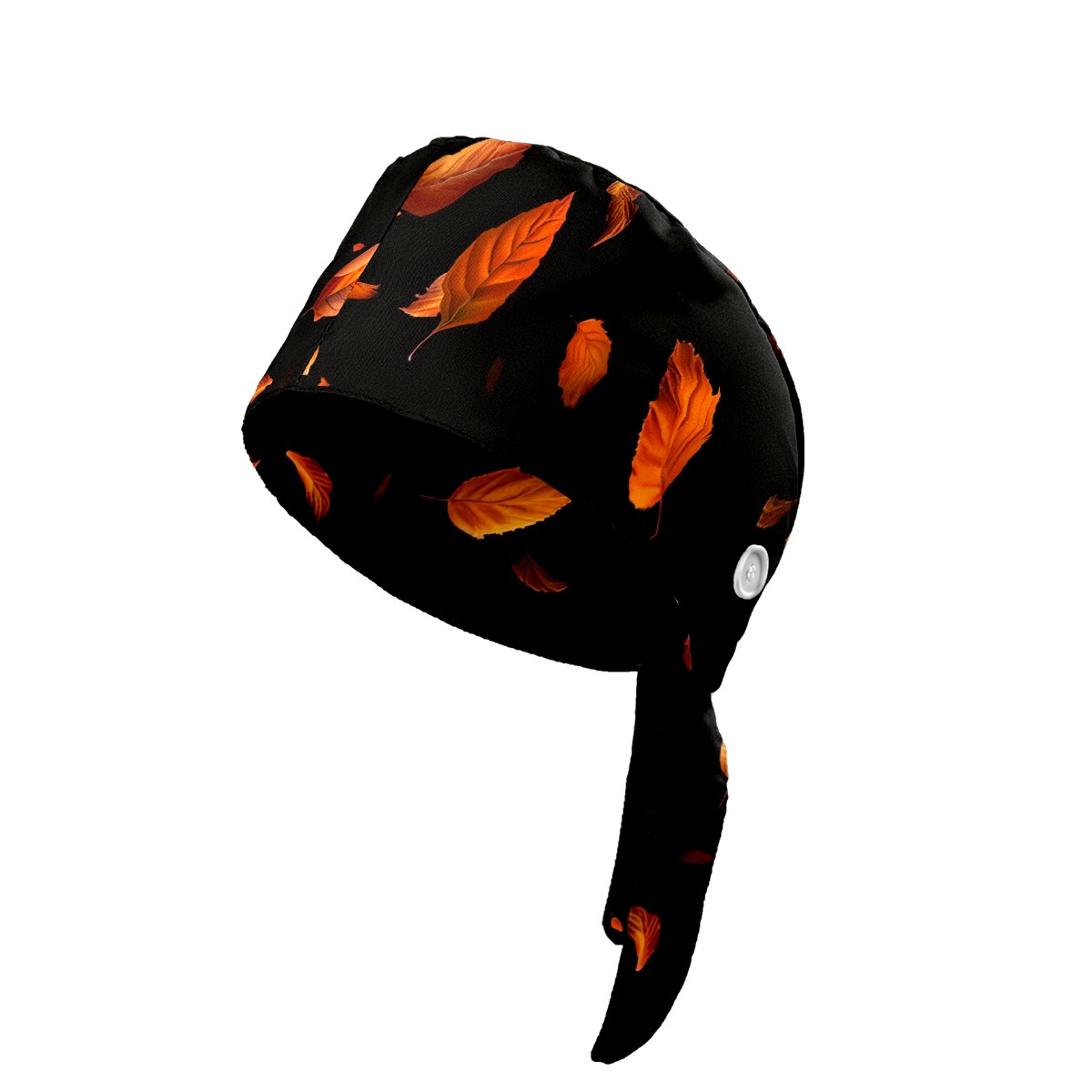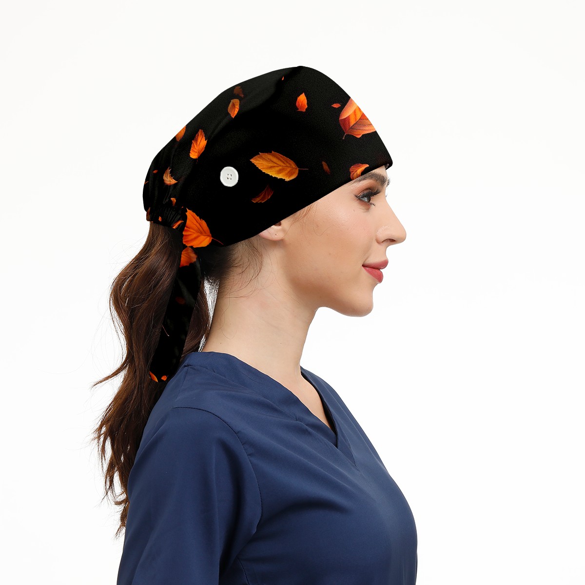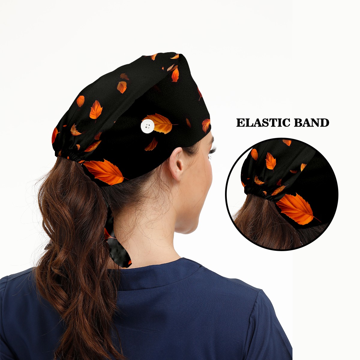Working Caps with Button&Sweatband Satin Lined Cotton Adjustable Nurse Hats Elastic Band Scrub Cap Surgeon Hat Yellowish Leaves