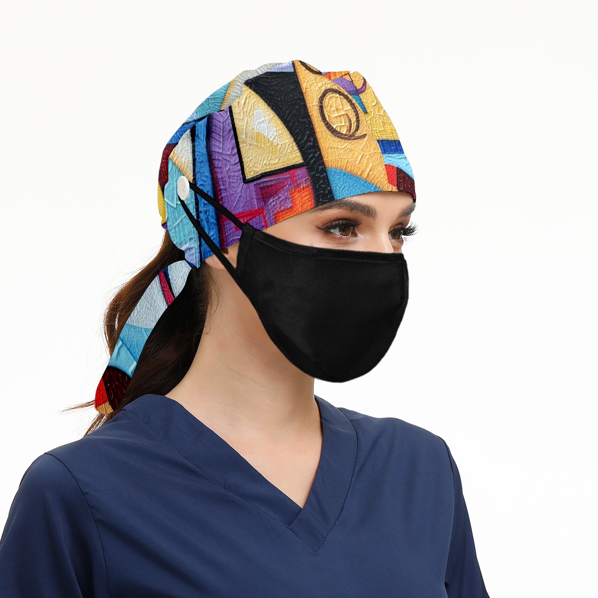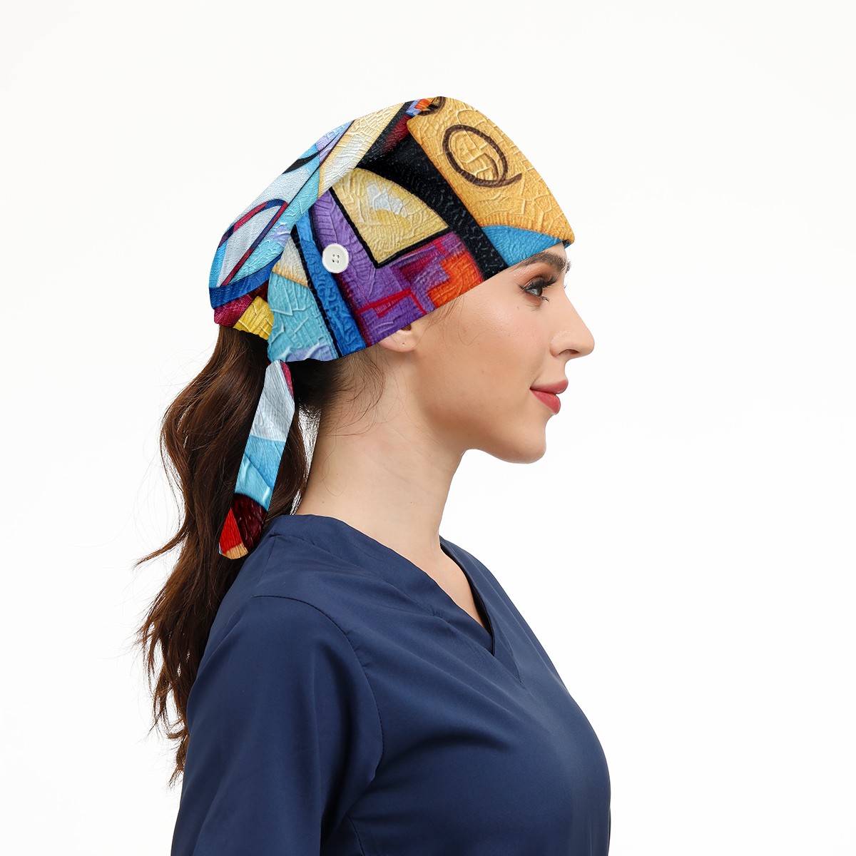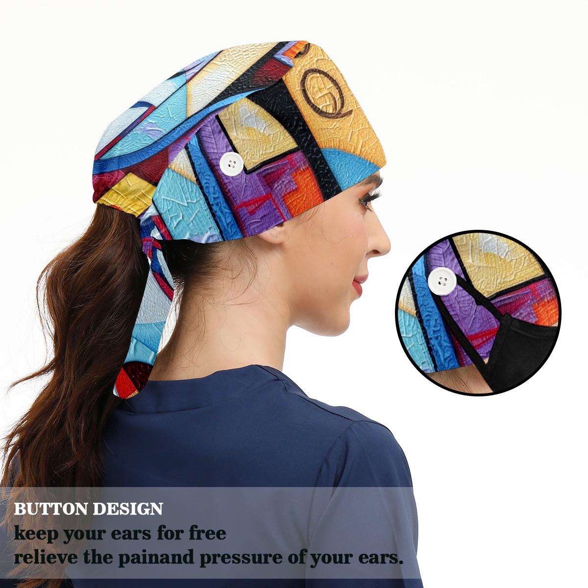 Working Caps with Button&Sweatband Satin Lined Cotton Adjustable Nurse Hats Elastic Band Scrub Cap Surgeon Hat Texture Abstract 1