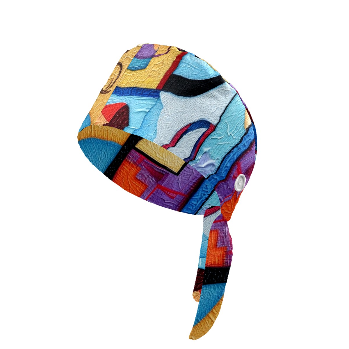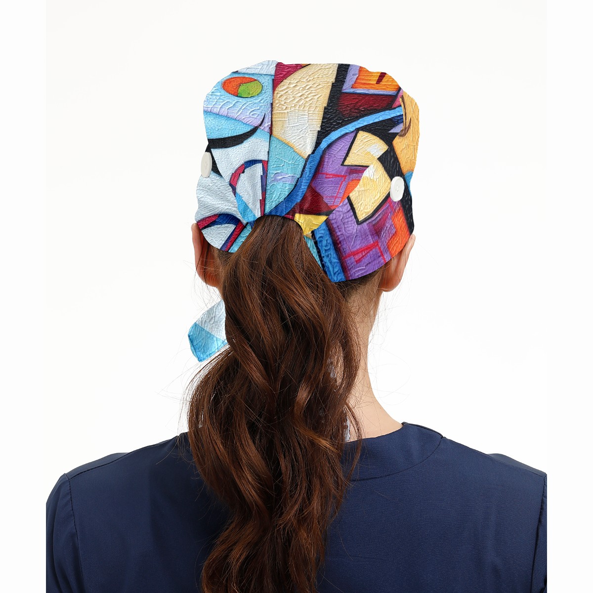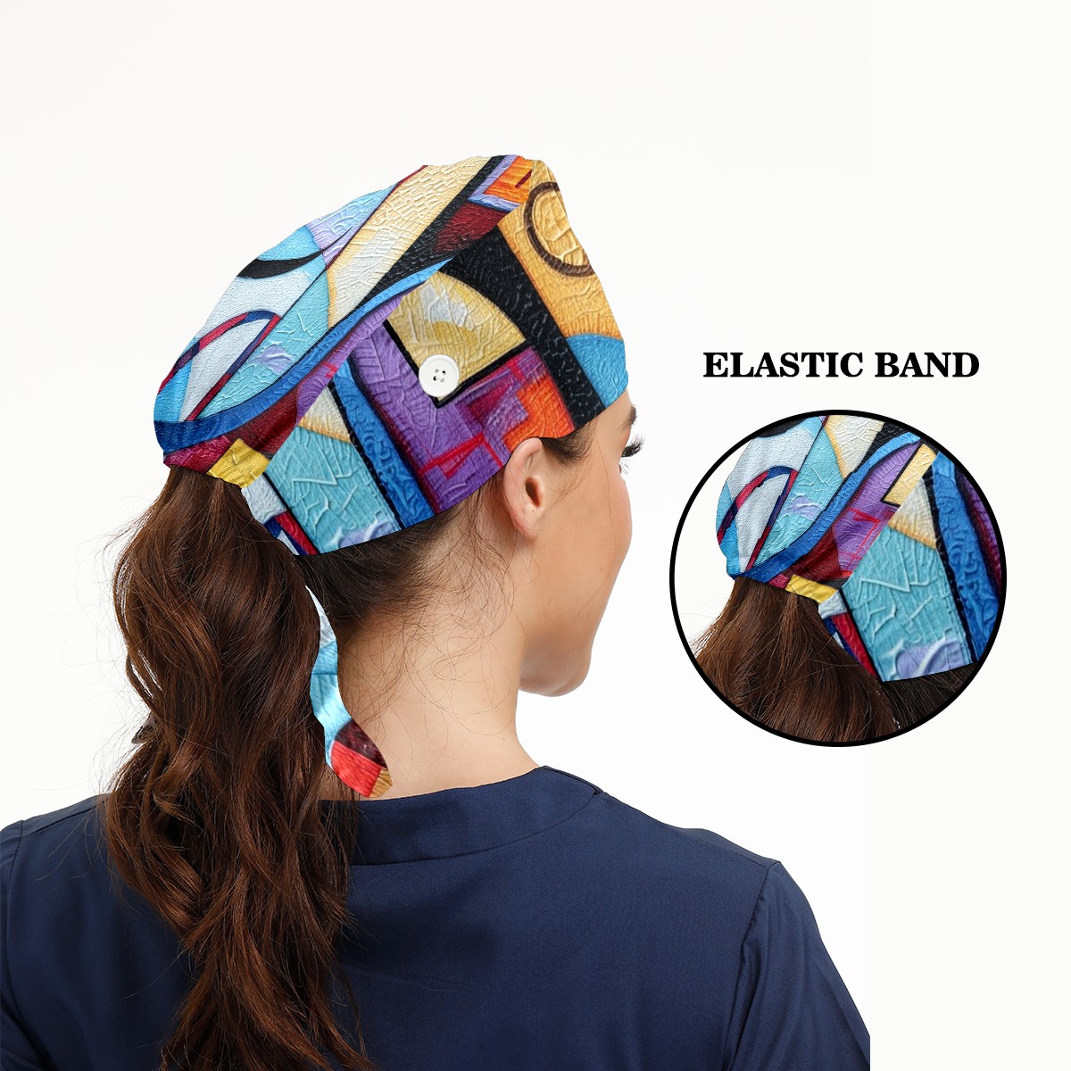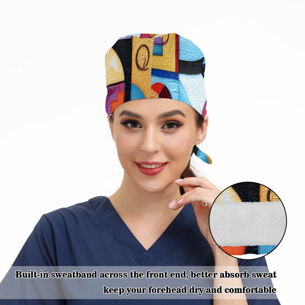 Working Caps with Button&Sweatband Satin Lined Cotton Adjustable Nurse Hats Elastic Band Scrub Cap Surgeon Hat Texture Abstract 1