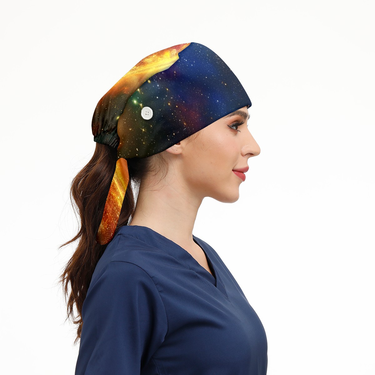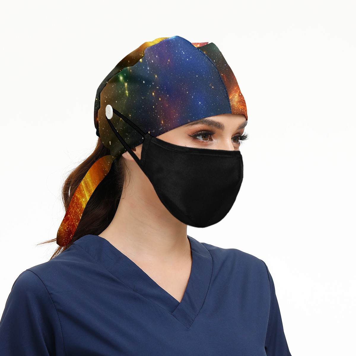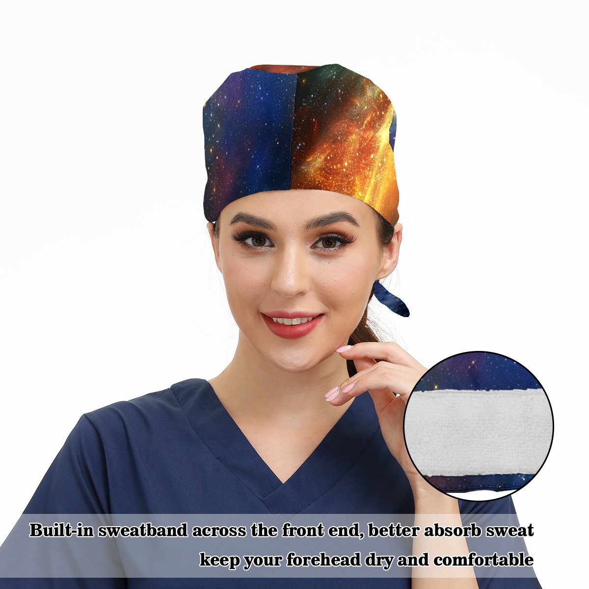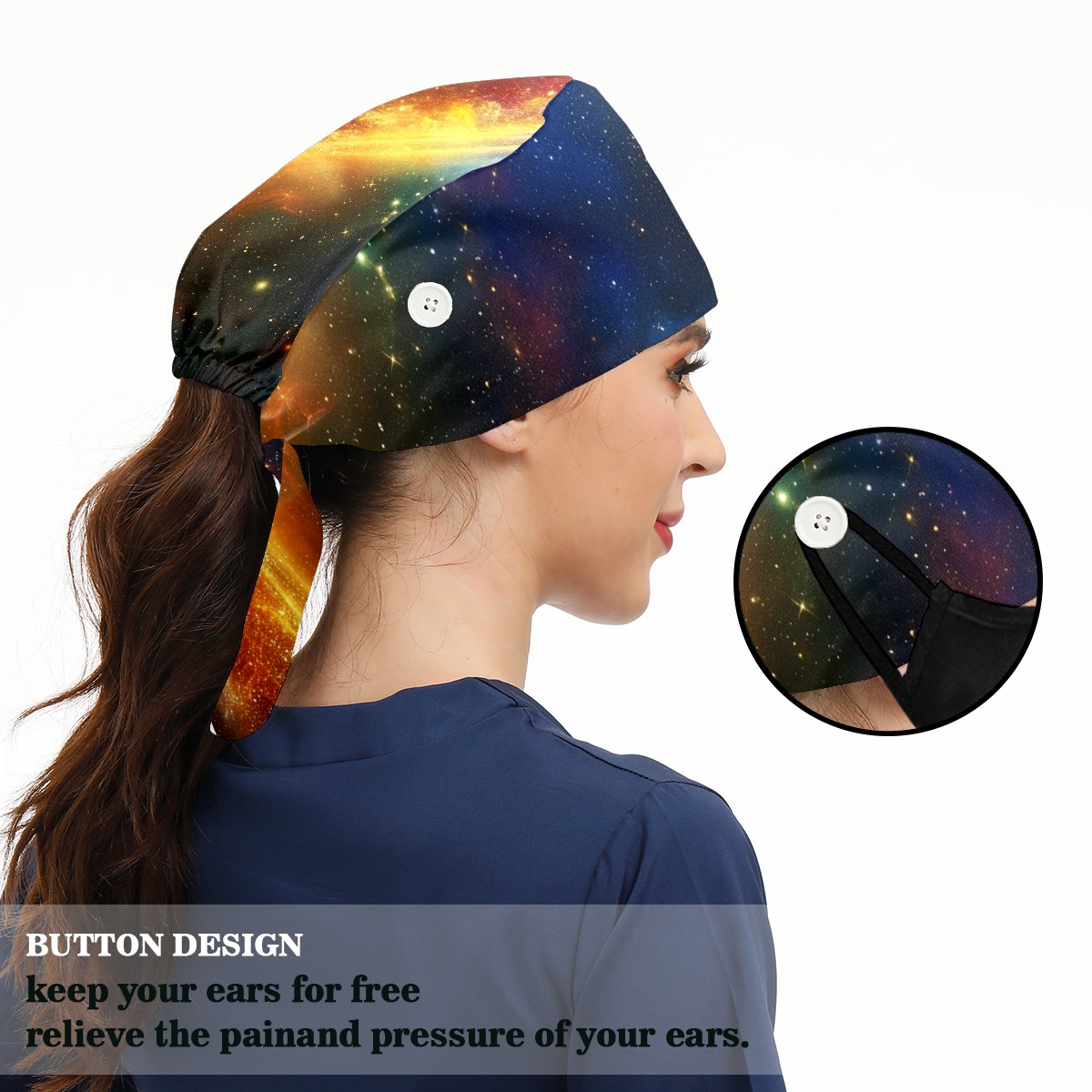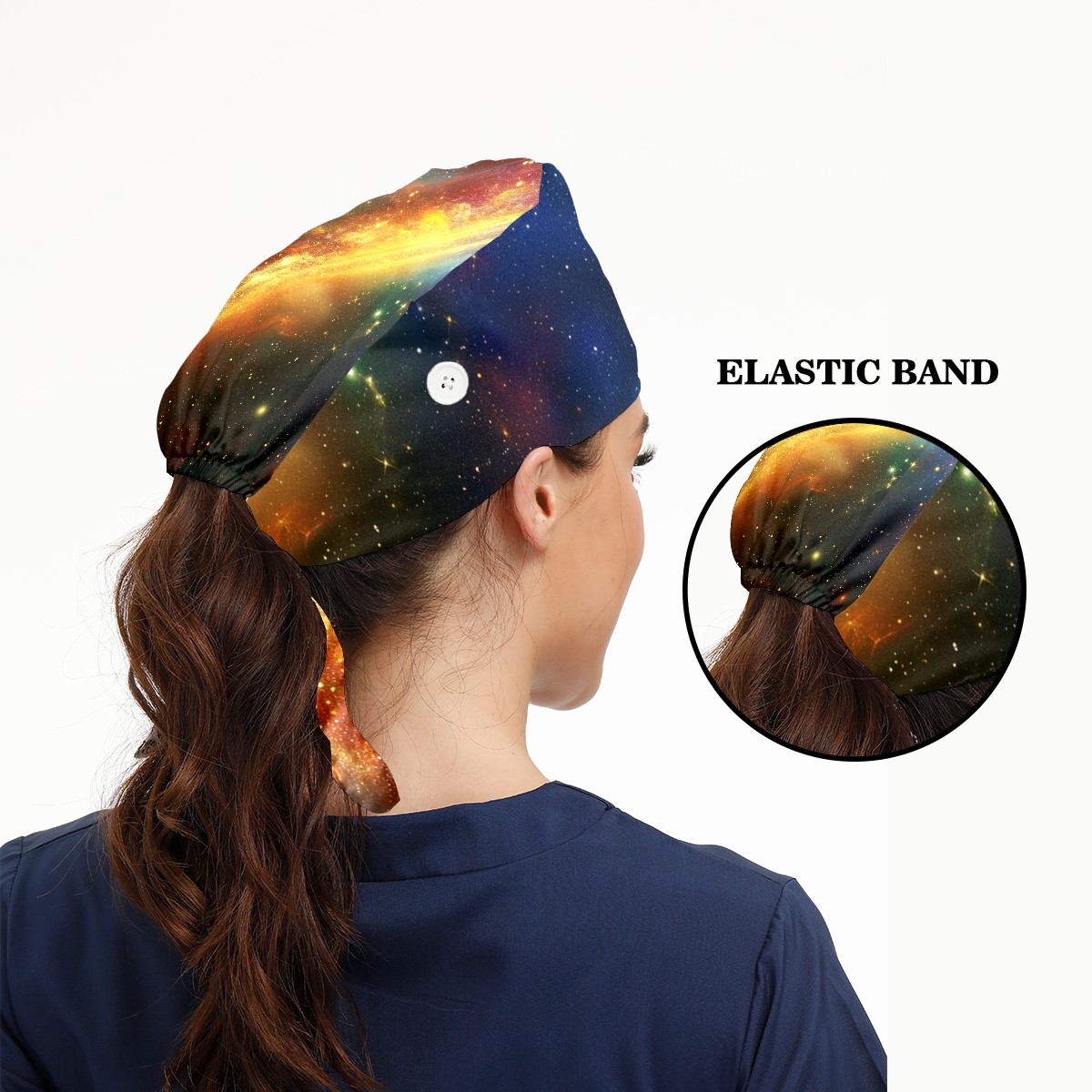 Working Caps with Button&Sweatband Satin Lined Cotton Adjustable Nurse Hats Elastic Band Scrub Cap Surgeon Hat Shimmering Luminous 1