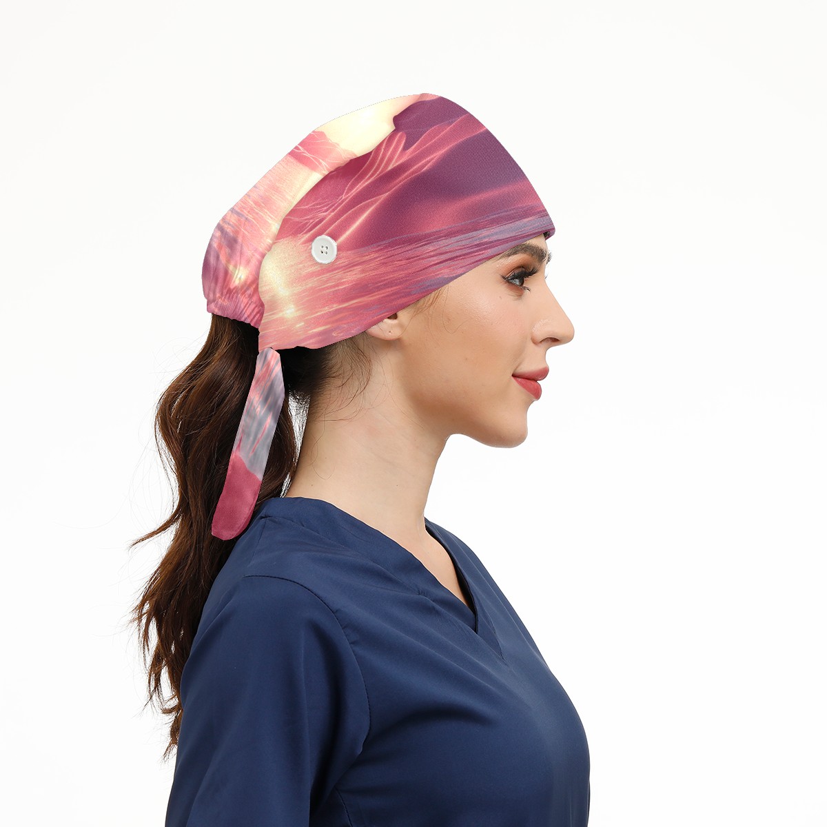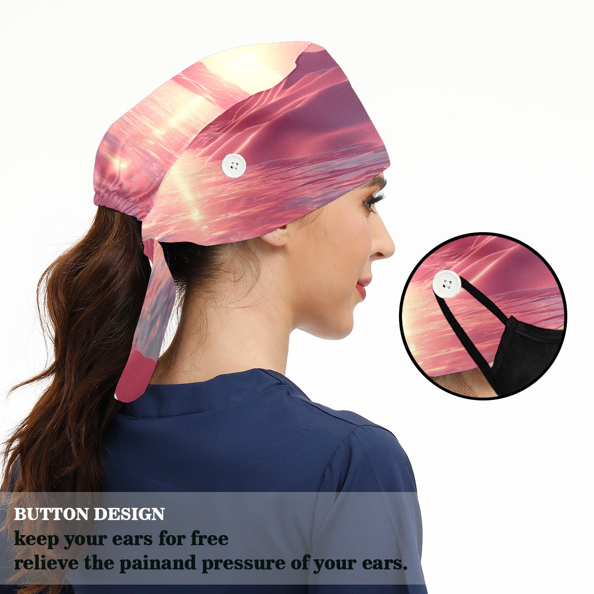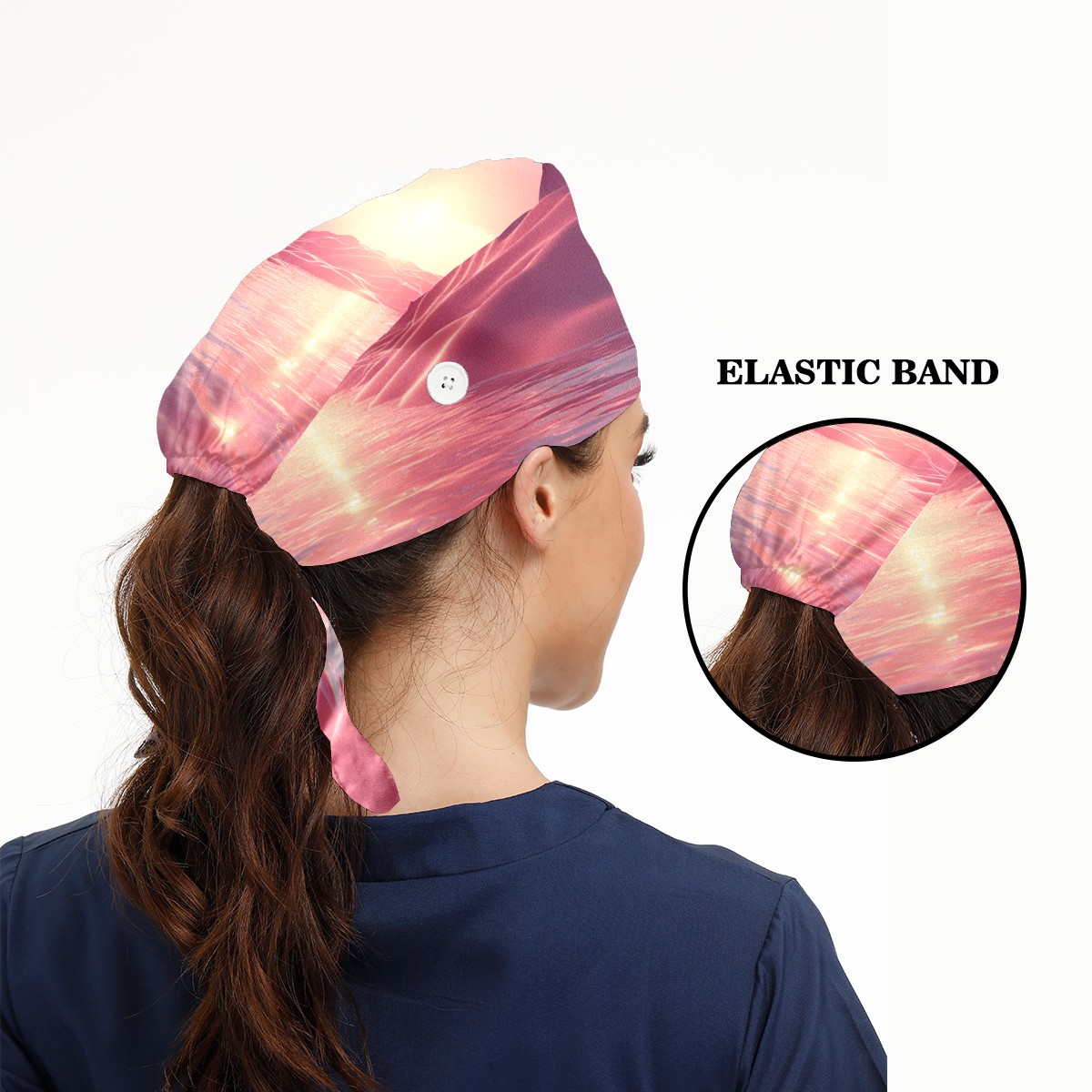 Working Caps with Button&Sweatband Satin Lined Cotton Adjustable Nurse Hats Elastic Band Scrub Cap Surgeon Hat Pink Ocean 1