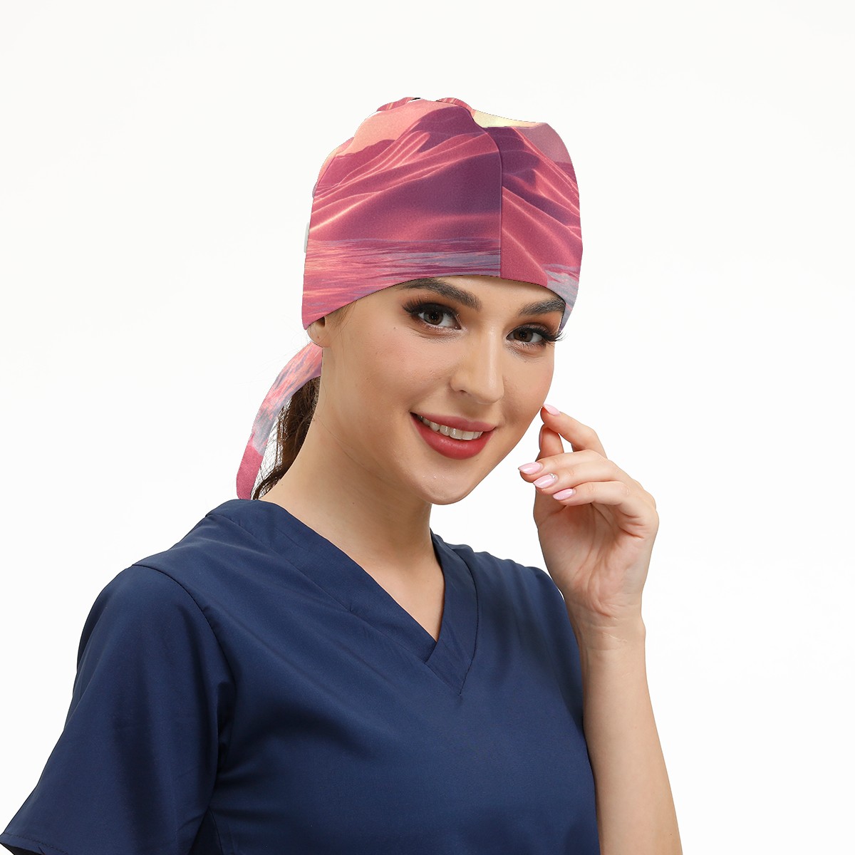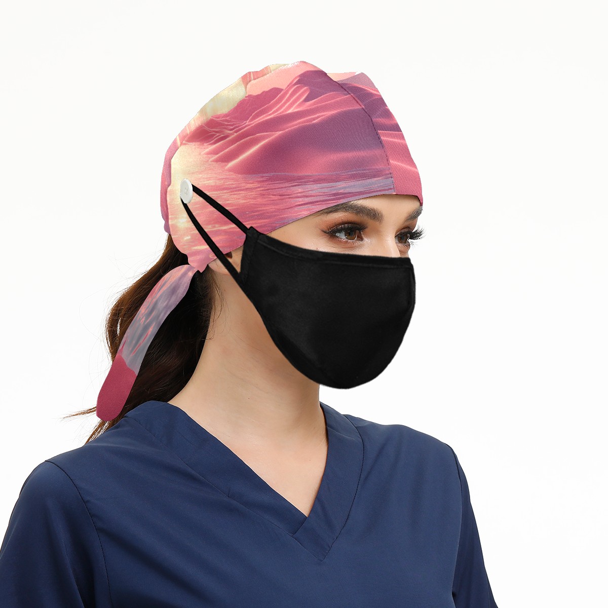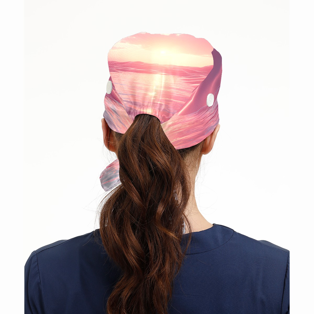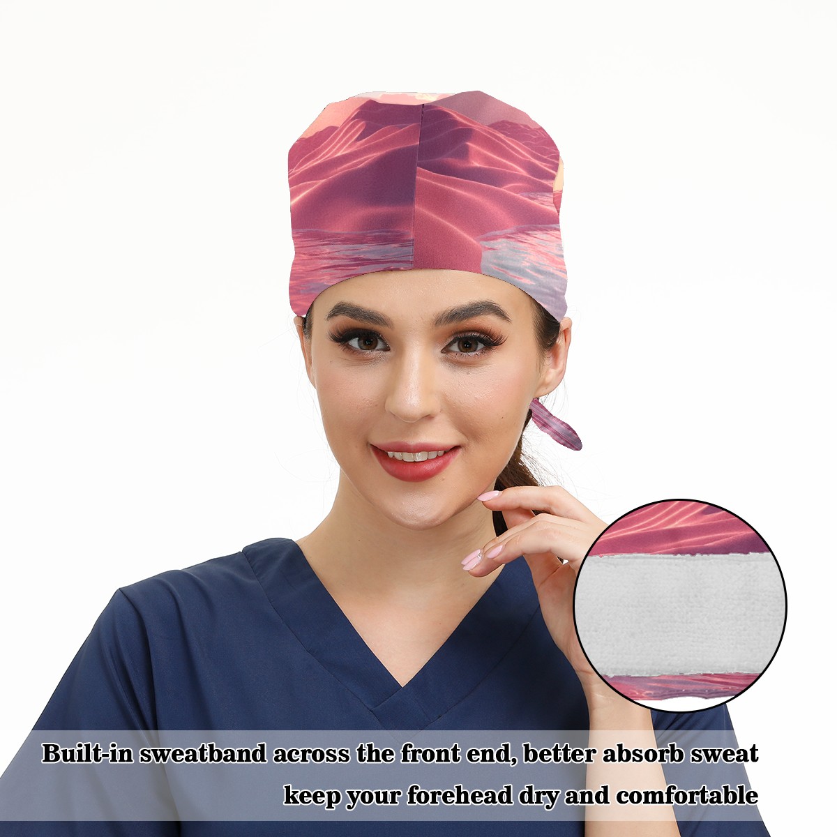 Working Caps with Button&Sweatband Satin Lined Cotton Adjustable Nurse Hats Elastic Band Scrub Cap Surgeon Hat Pink Ocean 1