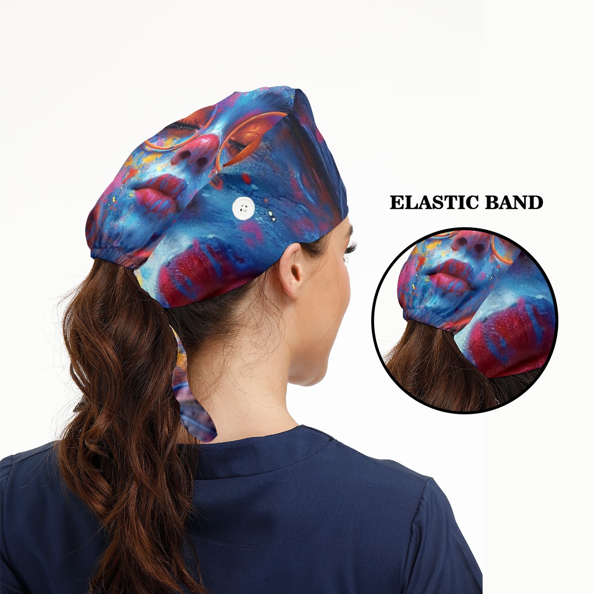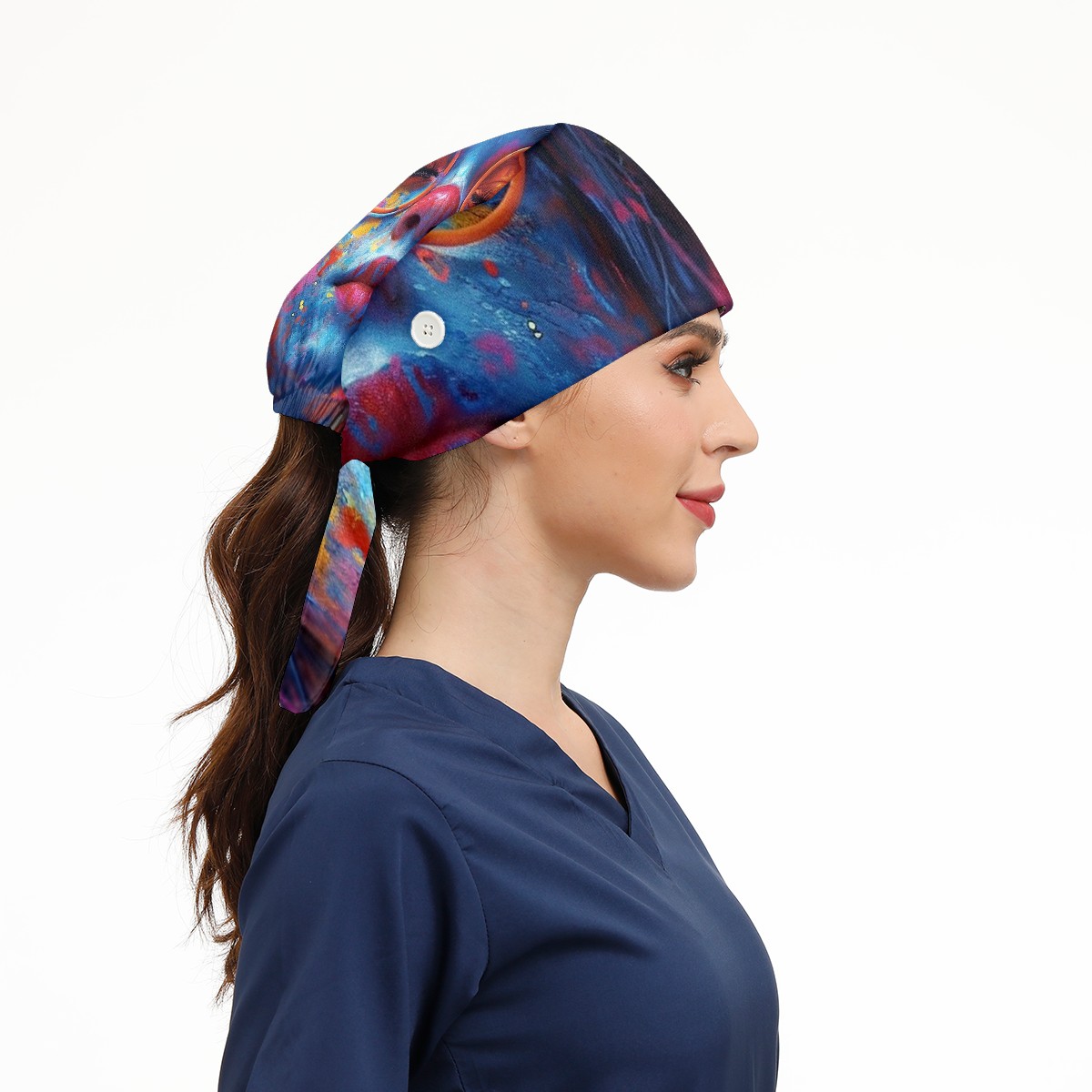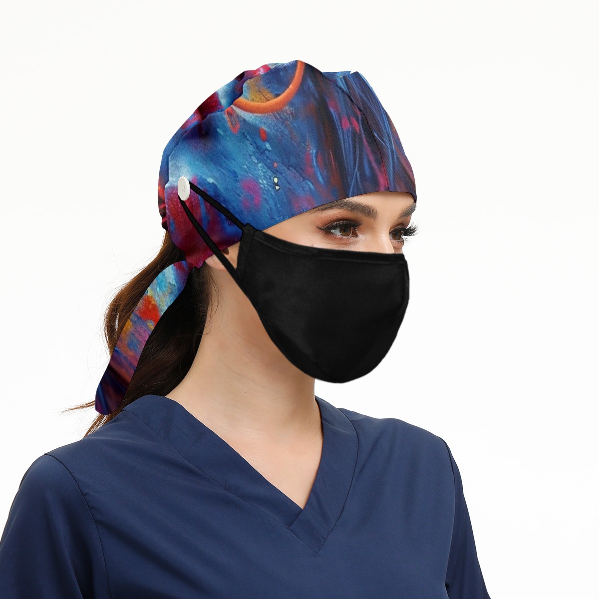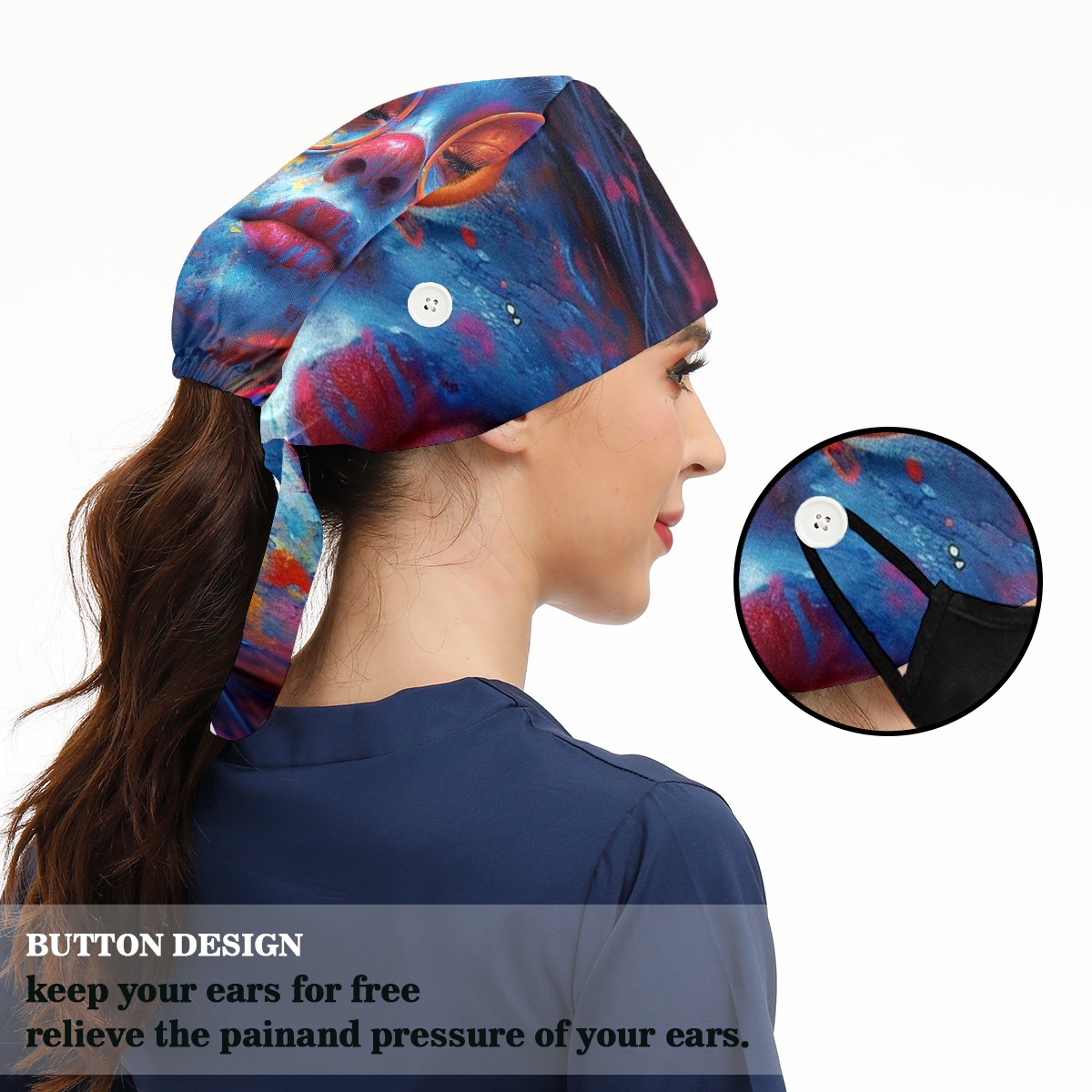 Working Caps with Button&Sweatband Satin Lined Cotton Adjustable Nurse Hats Elastic Band Scrub Cap Surgeon Hat Neon-lit Rings 3