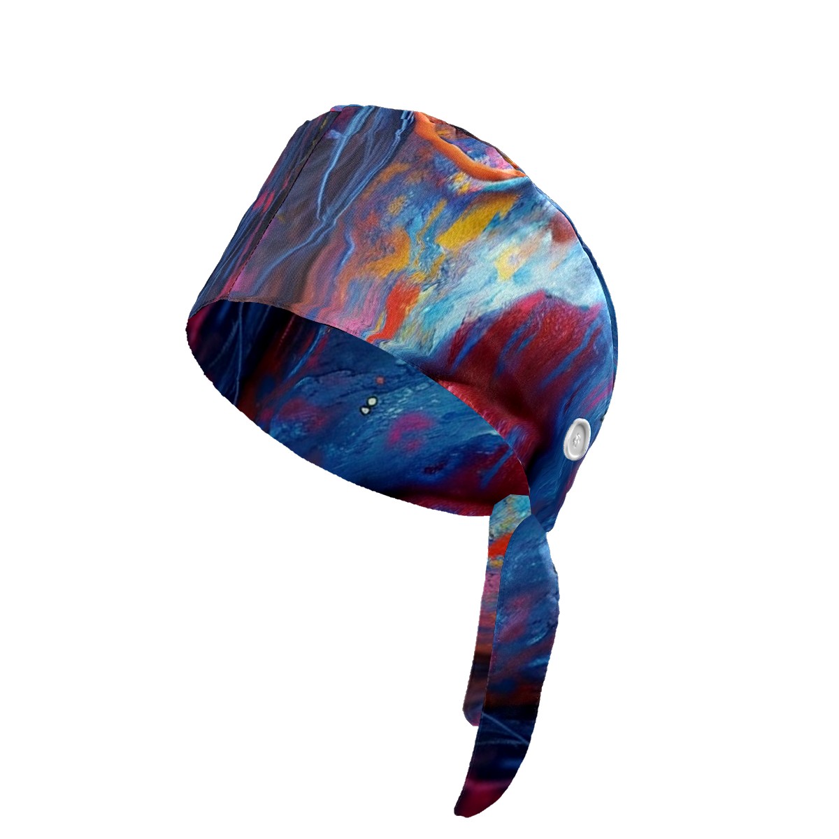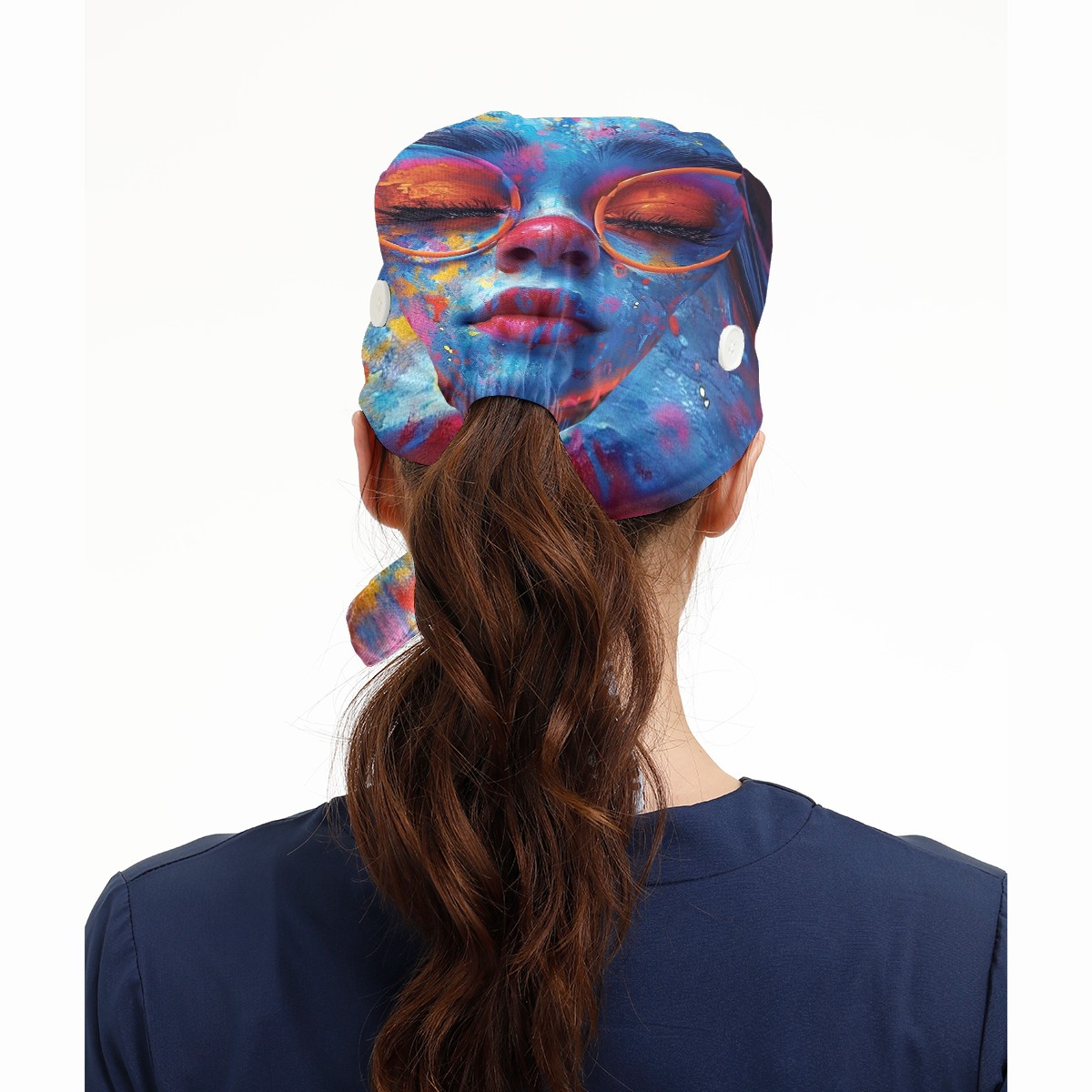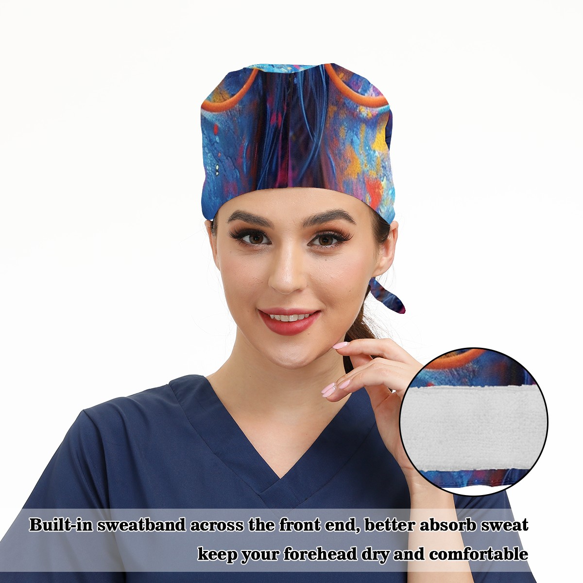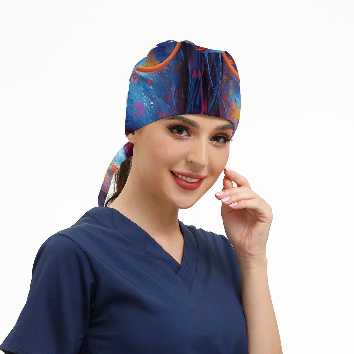 Working Caps with Button&Sweatband Satin Lined Cotton Adjustable Nurse Hats Elastic Band Scrub Cap Surgeon Hat Neon-lit Rings 3