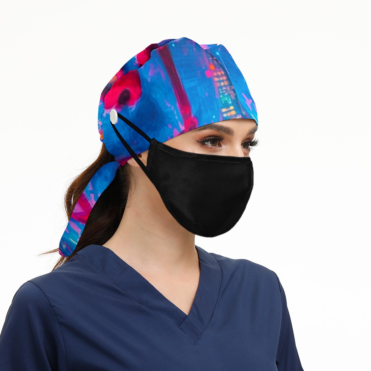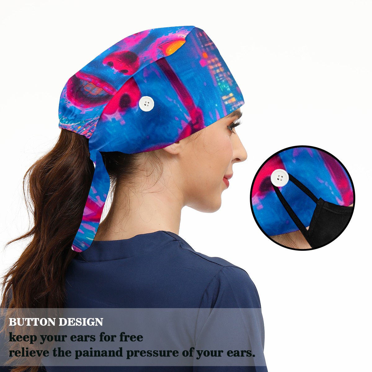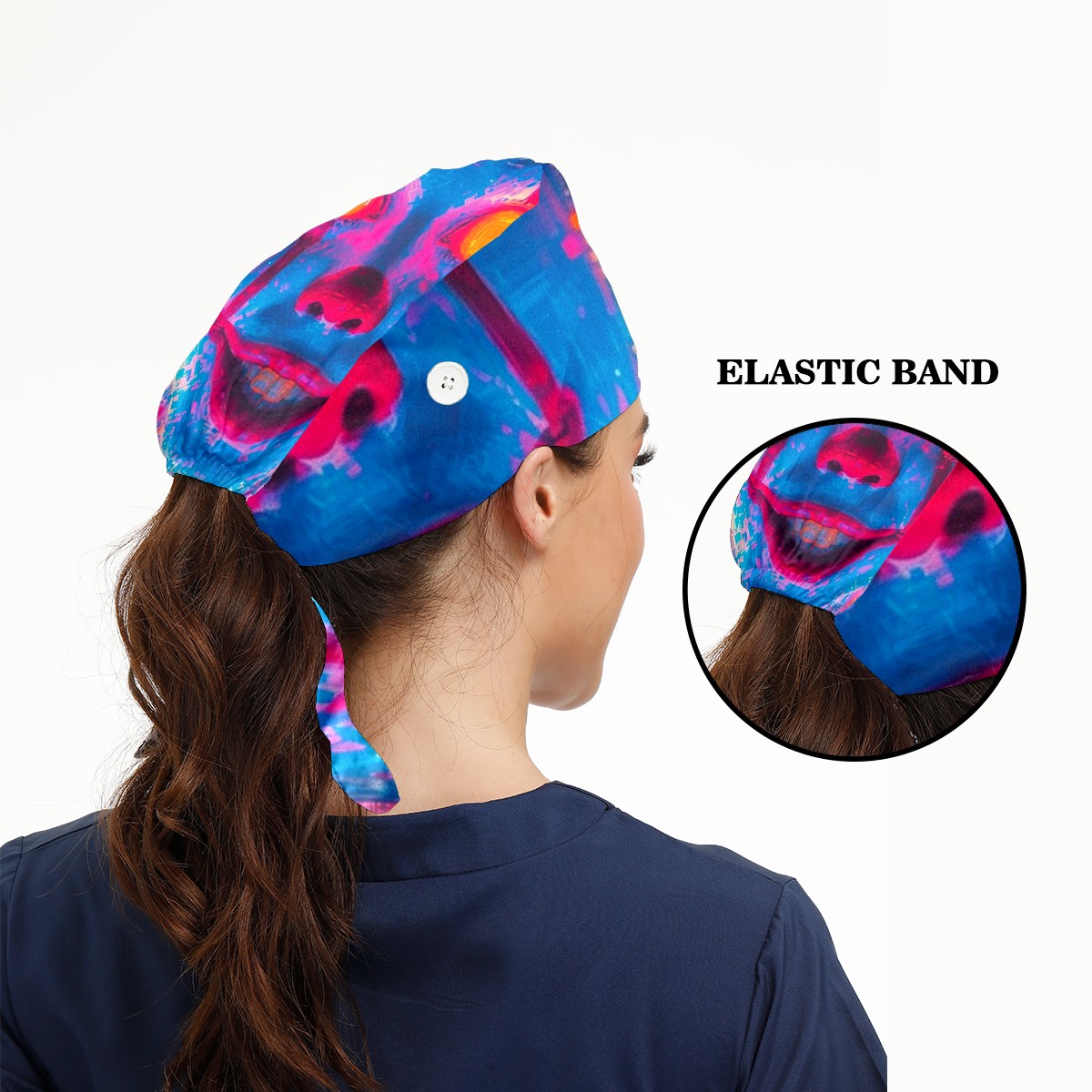 Working Caps with Button&Sweatband Satin Lined Cotton Adjustable Nurse Hats Elastic Band Scrub Cap Surgeon Hat Neon-lit Rings 2