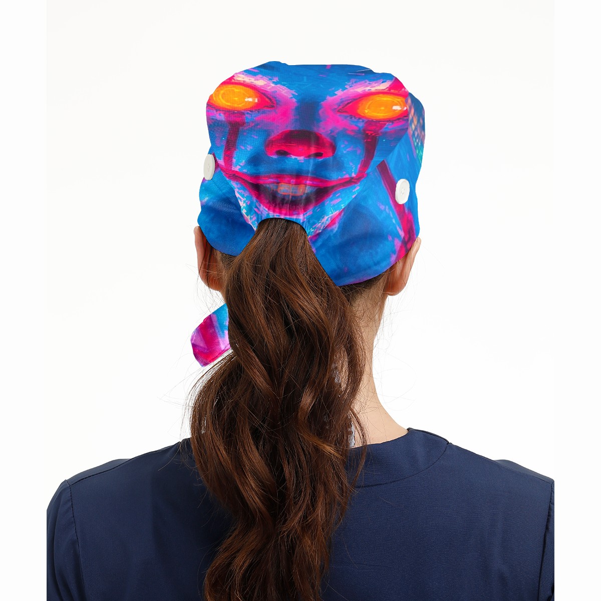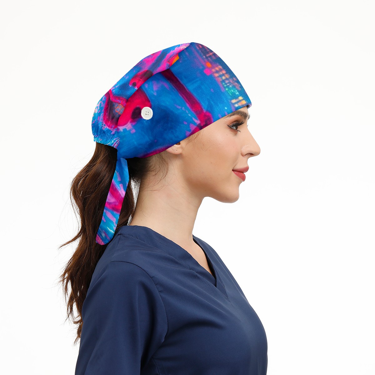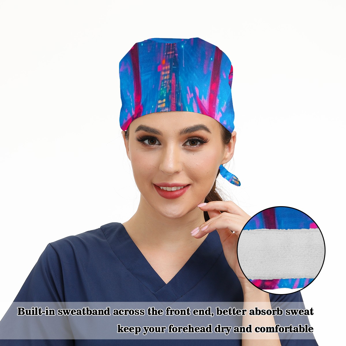 Working Caps with Button&Sweatband Satin Lined Cotton Adjustable Nurse Hats Elastic Band Scrub Cap Surgeon Hat Neon-lit Rings 2