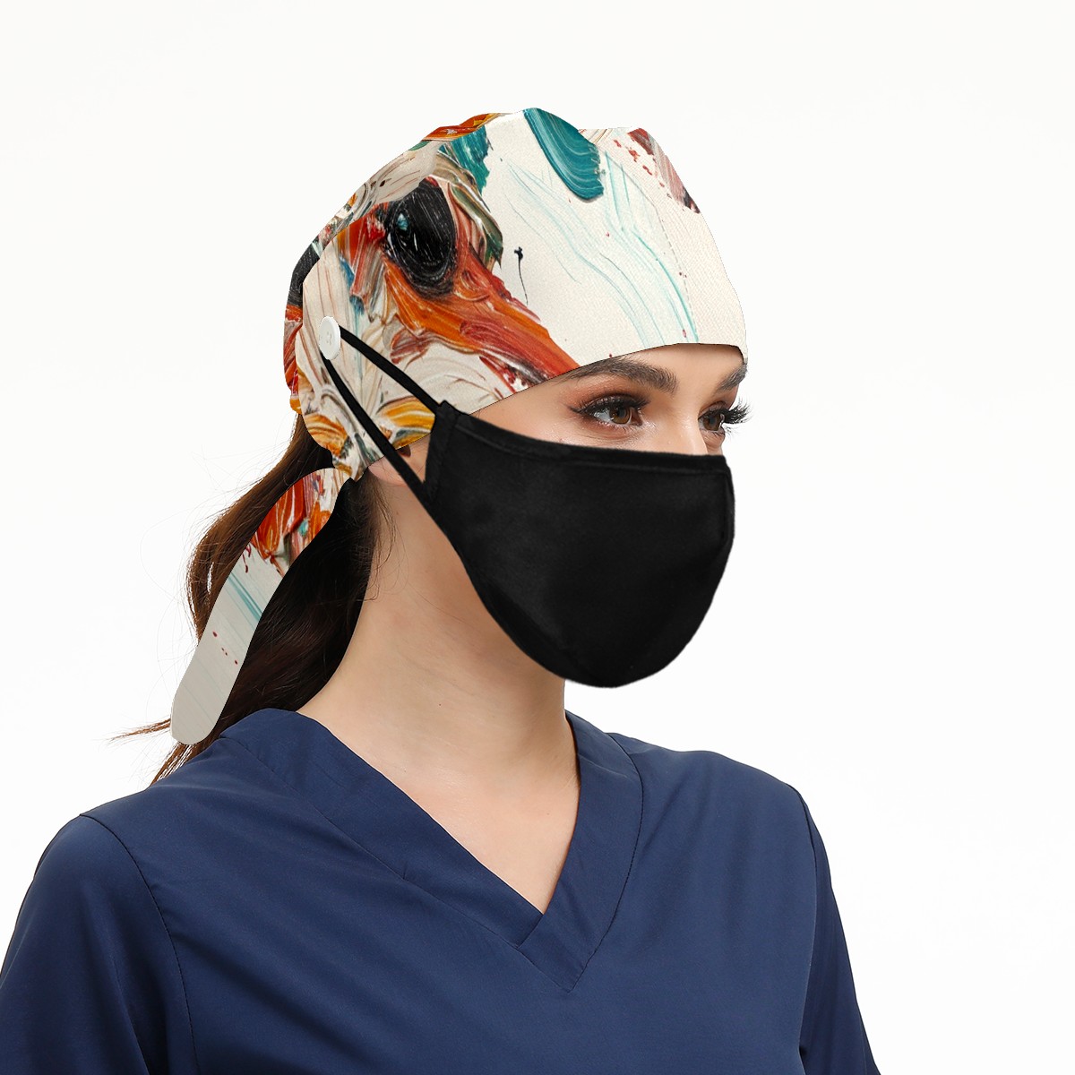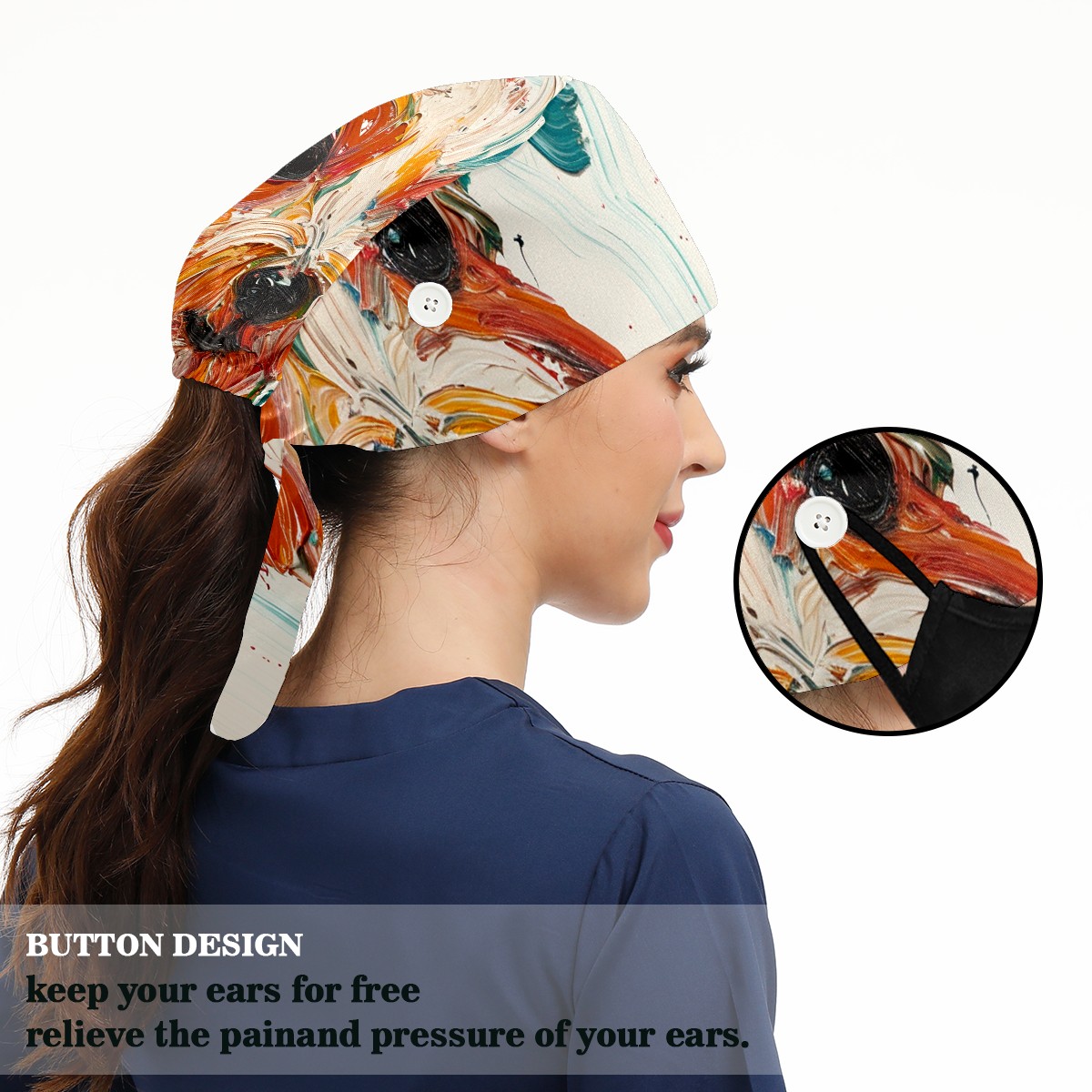Working Caps with Button&Sweatband Satin Lined Cotton Adjustable Nurse Hats Elastic Band Scrub Cap Surgeon Hat Minischnauzer Dog 4
