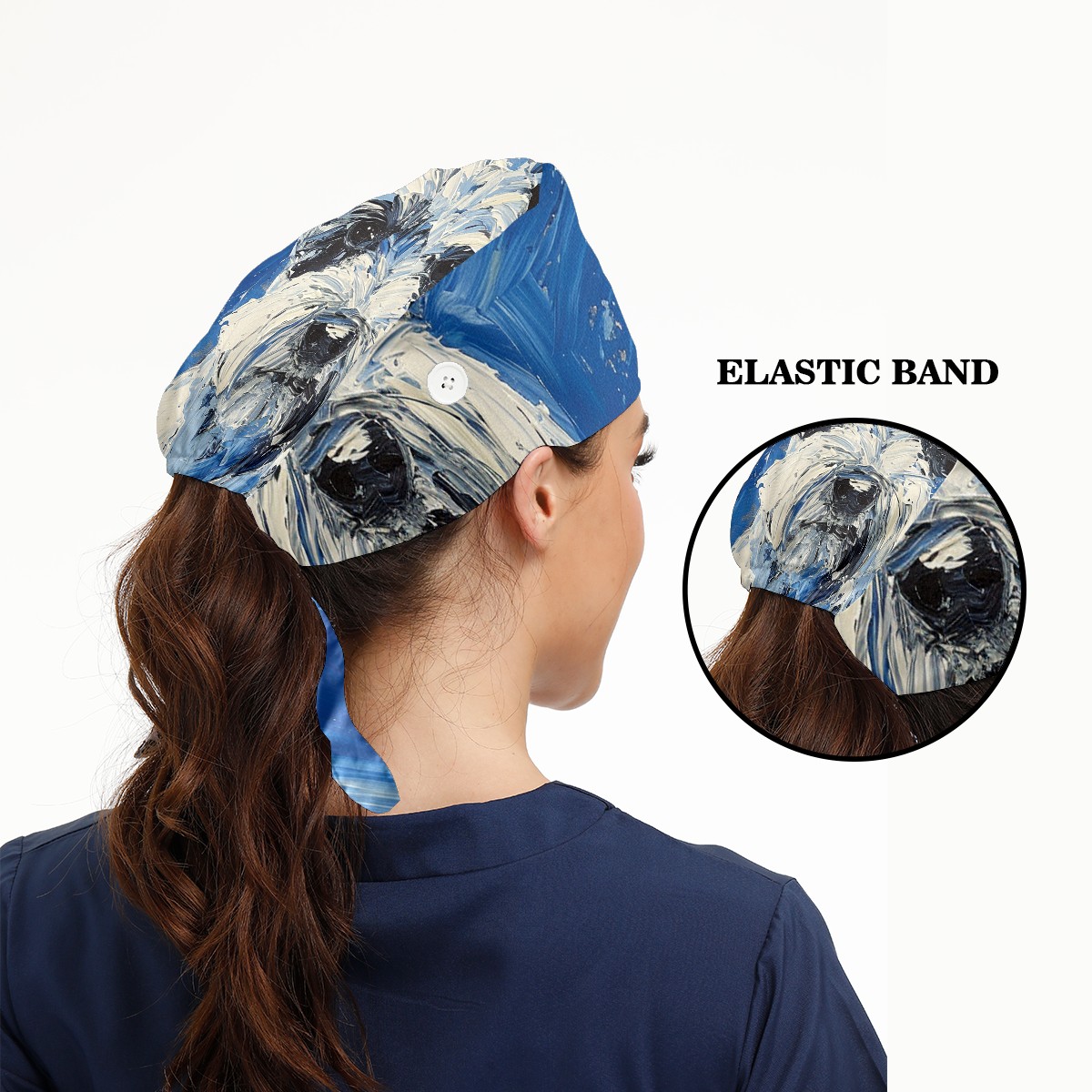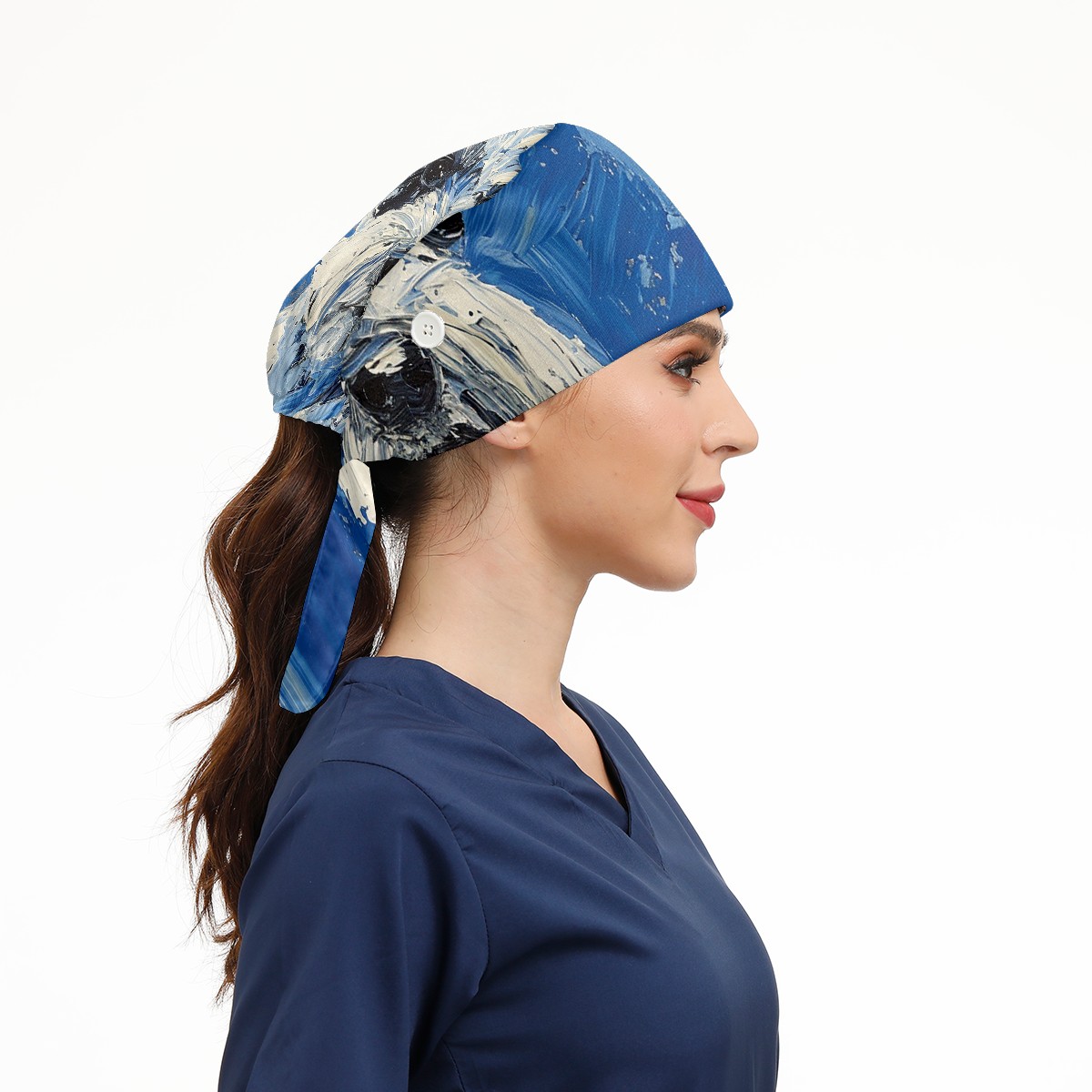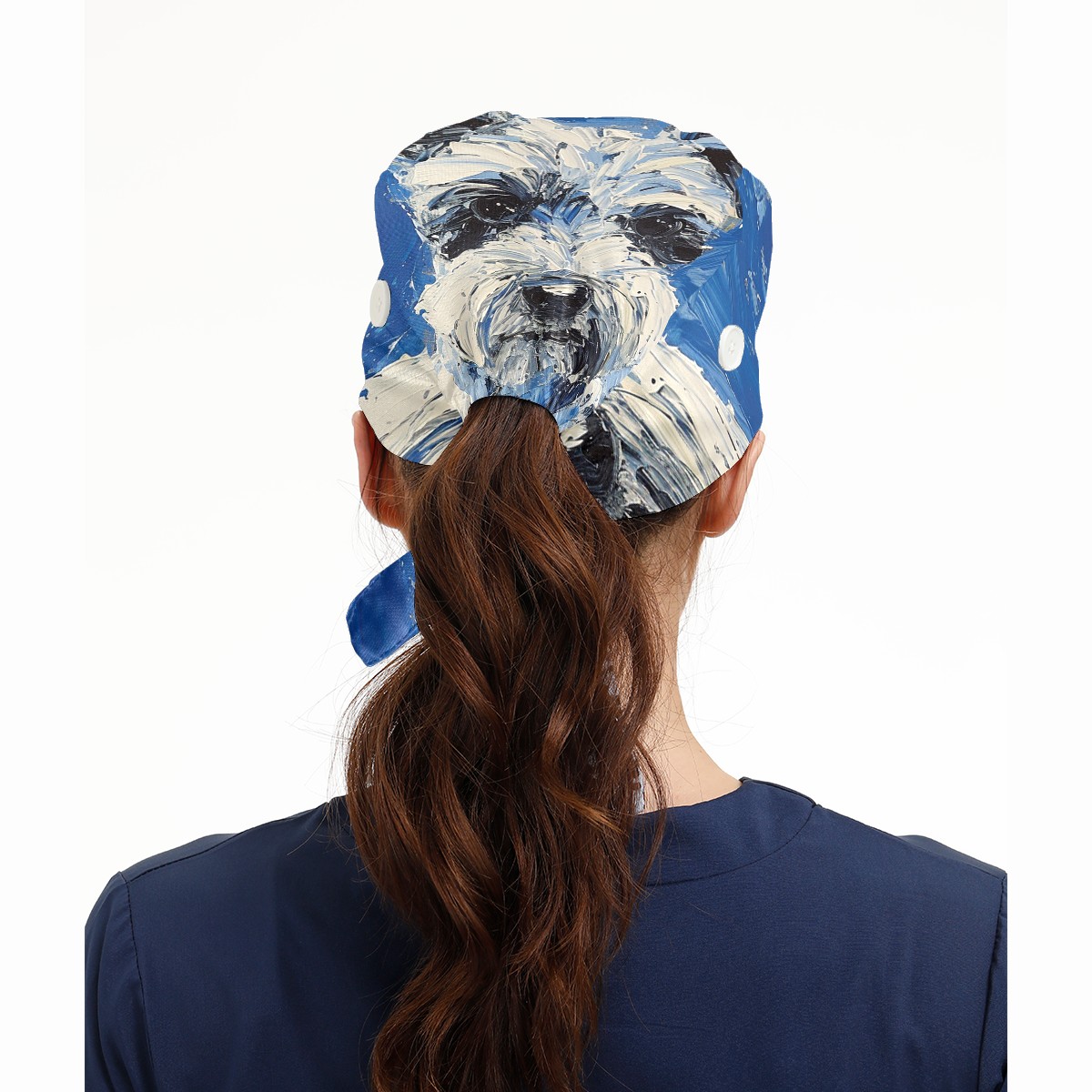 Working Caps with Button&Sweatband Satin Lined Cotton Adjustable Nurse Hats Elastic Band Scrub Cap Surgeon Hat Minischnauzer Dog 3