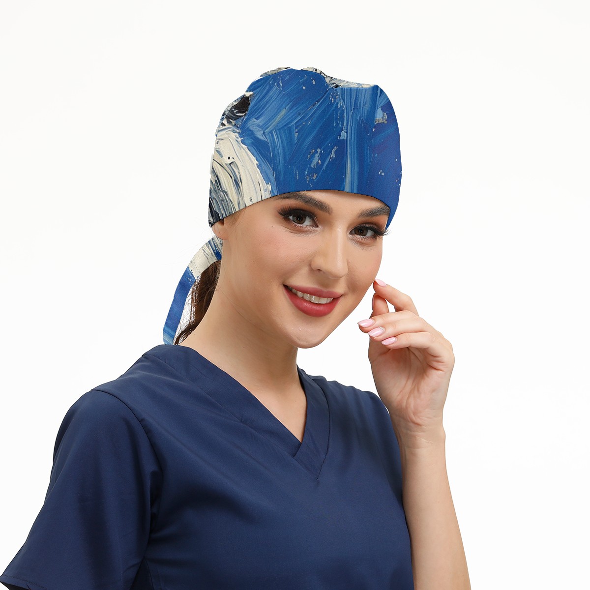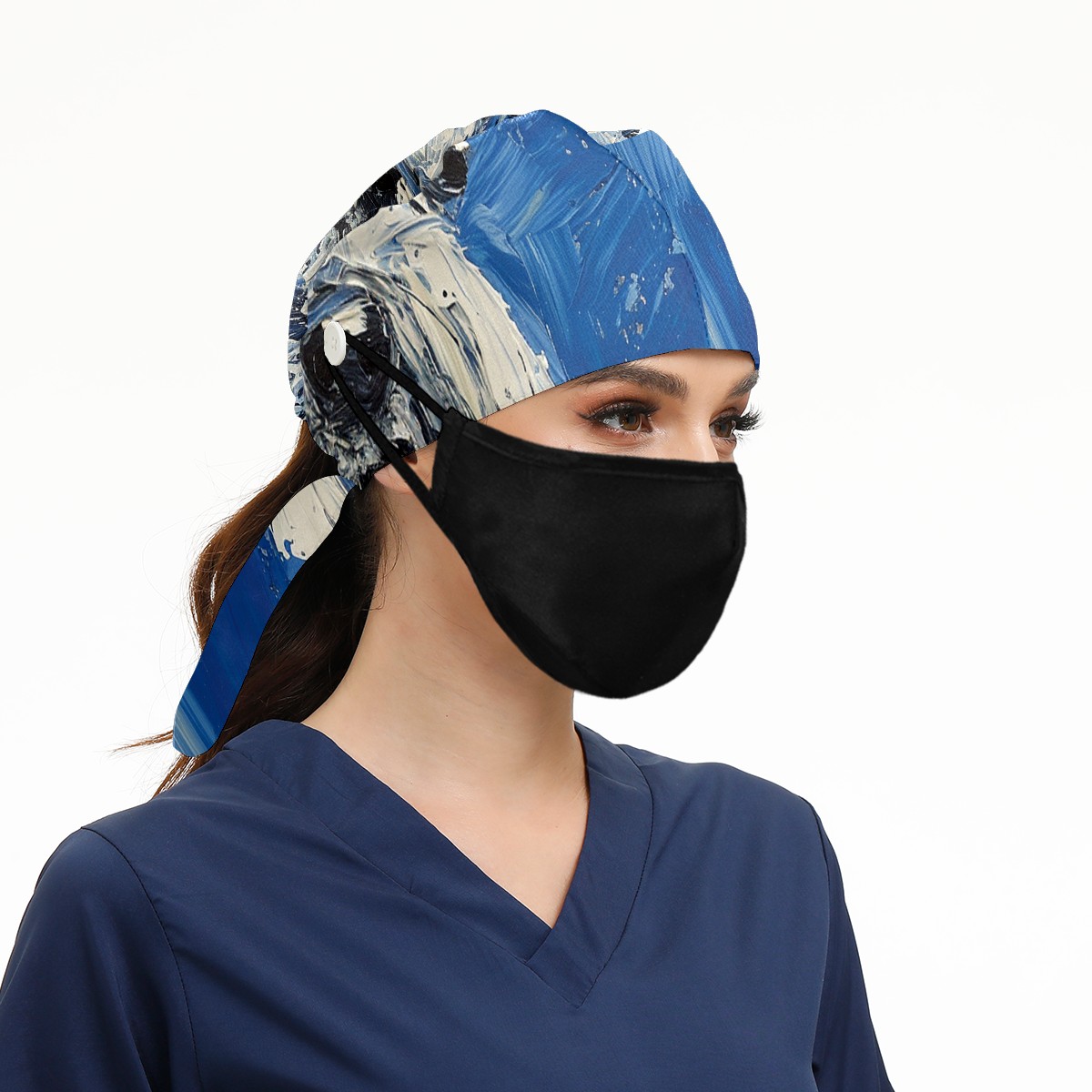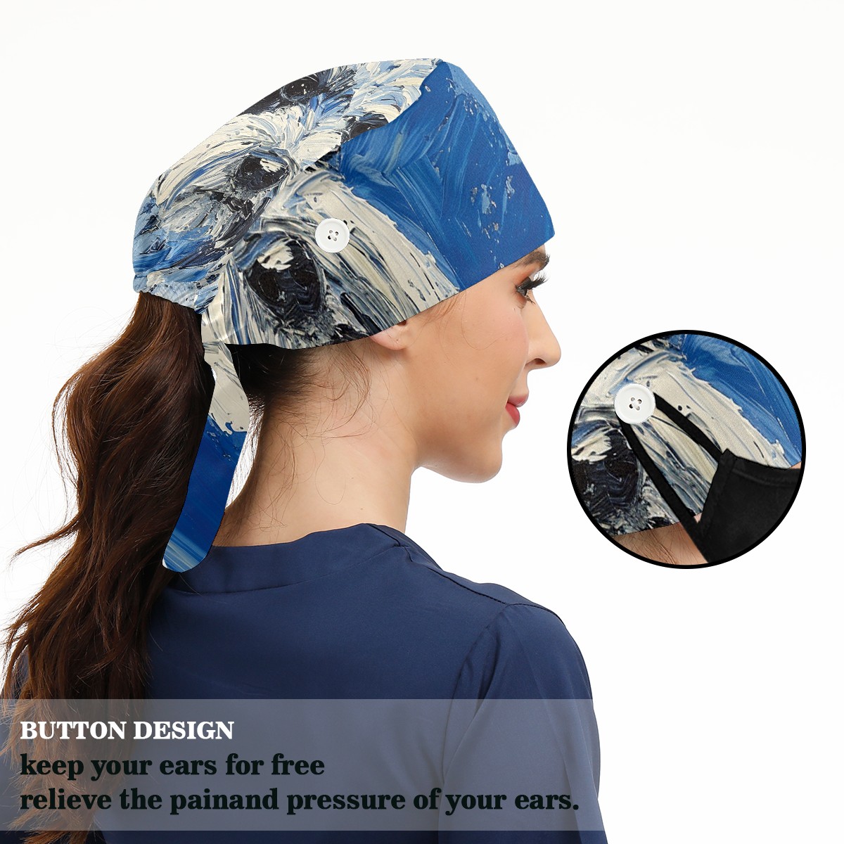 Working Caps with Button&Sweatband Satin Lined Cotton Adjustable Nurse Hats Elastic Band Scrub Cap Surgeon Hat Minischnauzer Dog 3