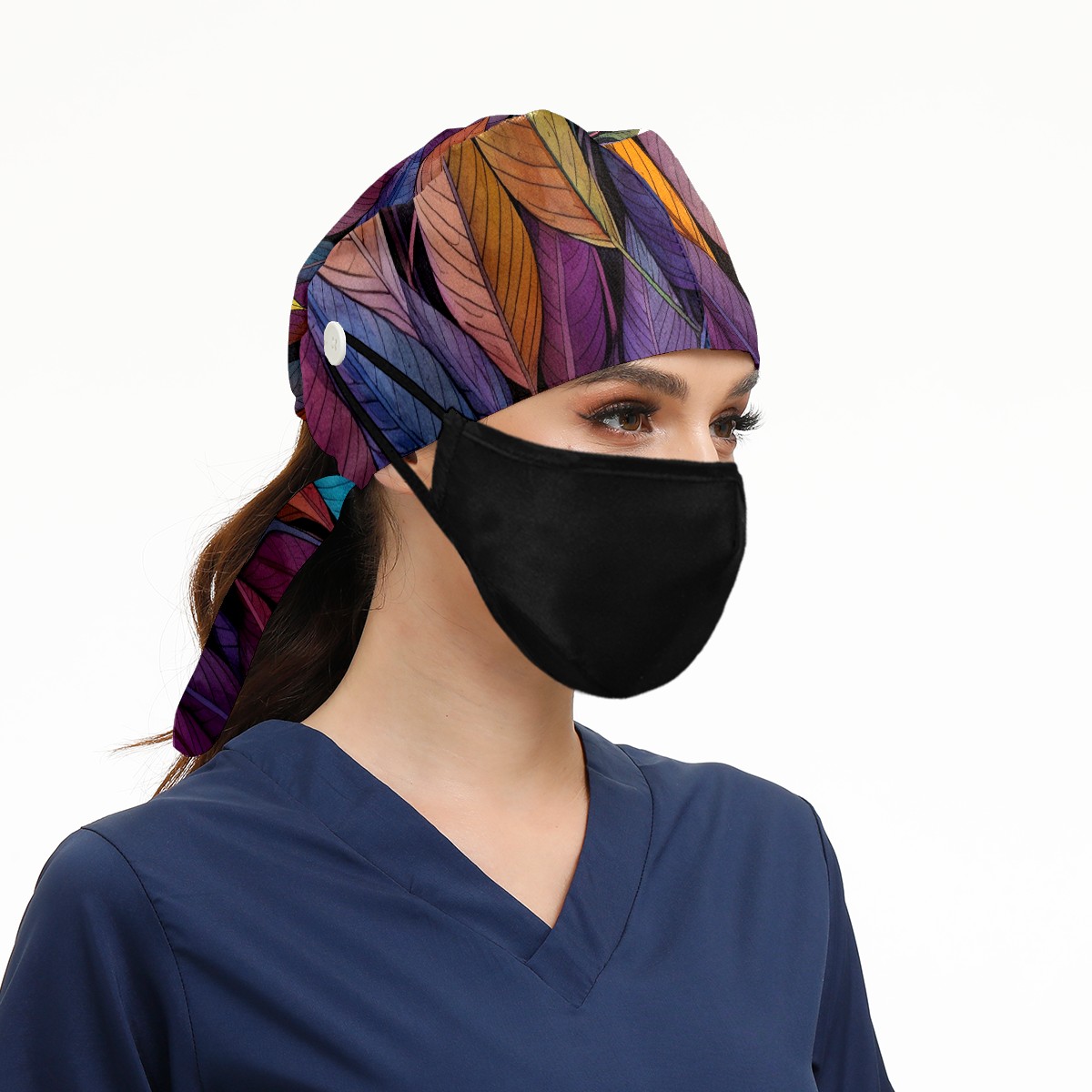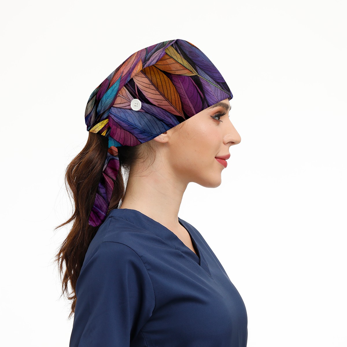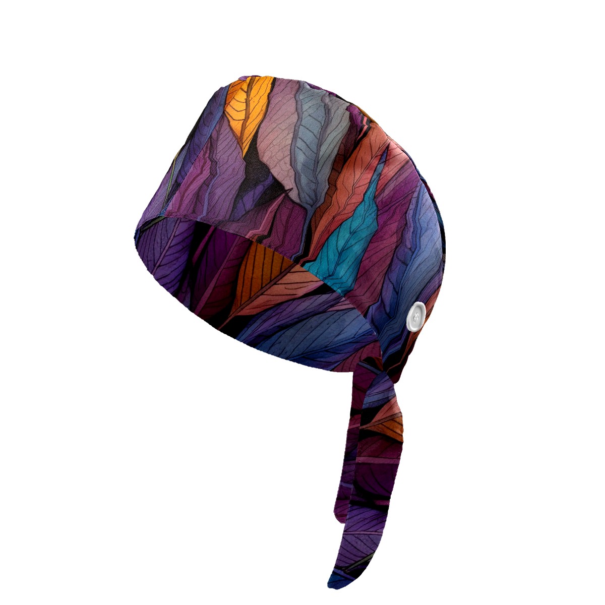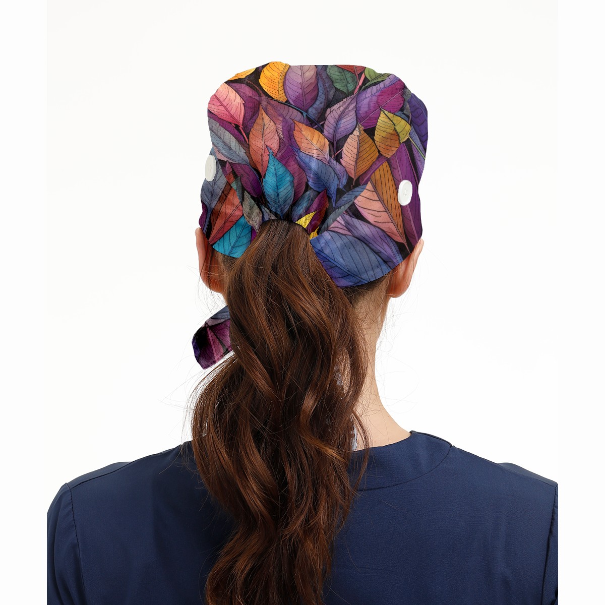 Working Caps with Button&Sweatband Satin Lined Cotton Adjustable Nurse Hats Elastic Band Scrub Cap Surgeon Hat Leaves 10