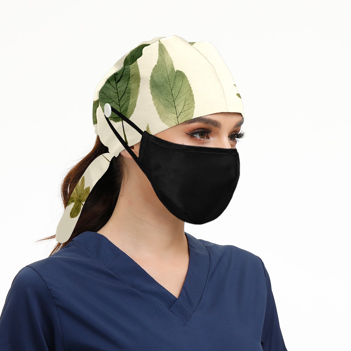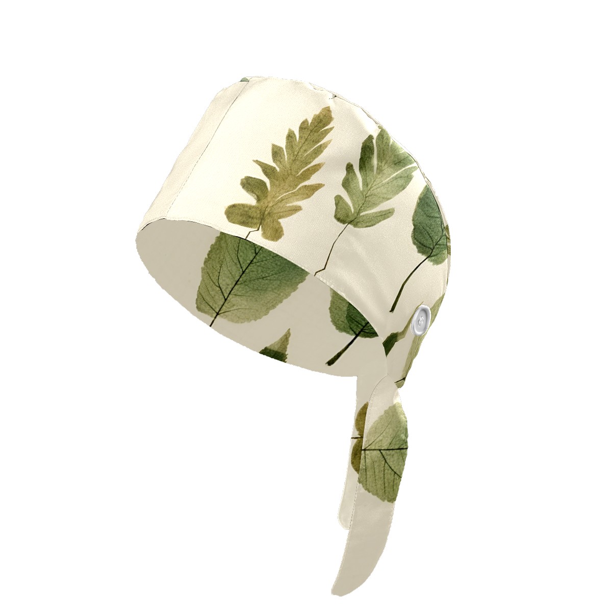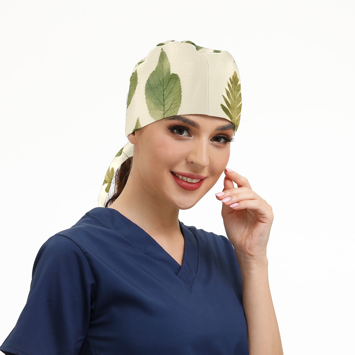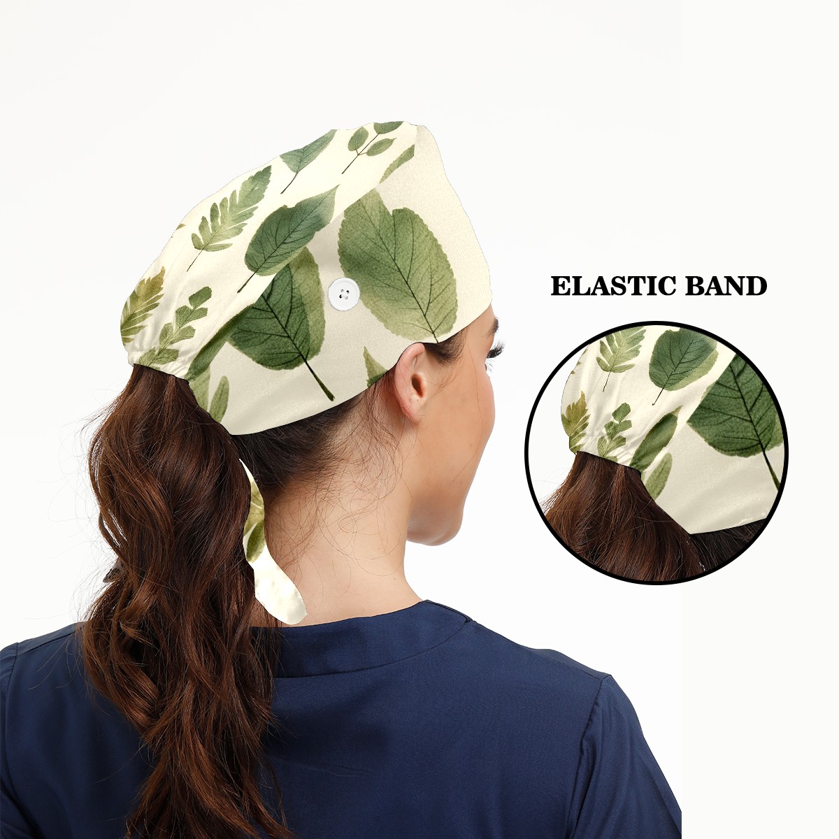 Working Caps with Button&Sweatband Satin Lined Cotton Adjustable Nurse Hats Elastic Band Scrub Cap Surgeon Hat Leaves 4