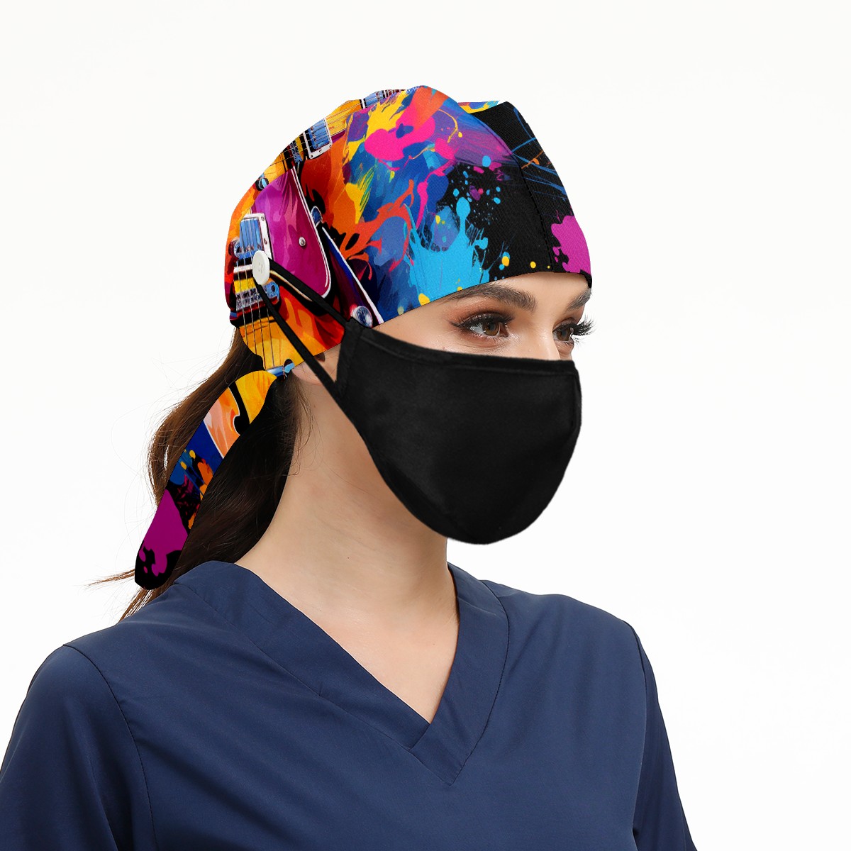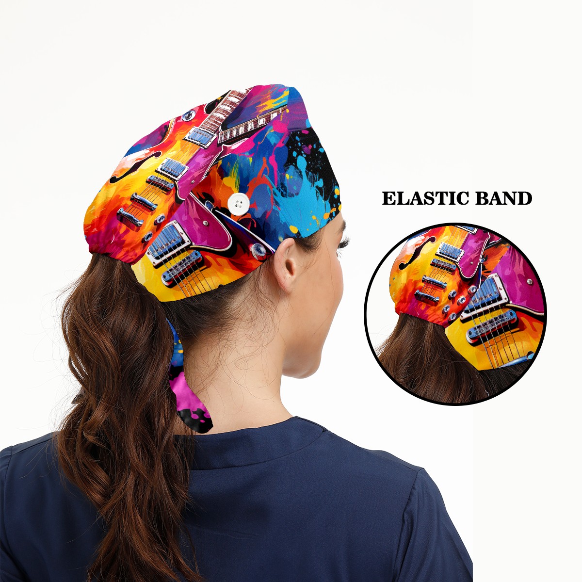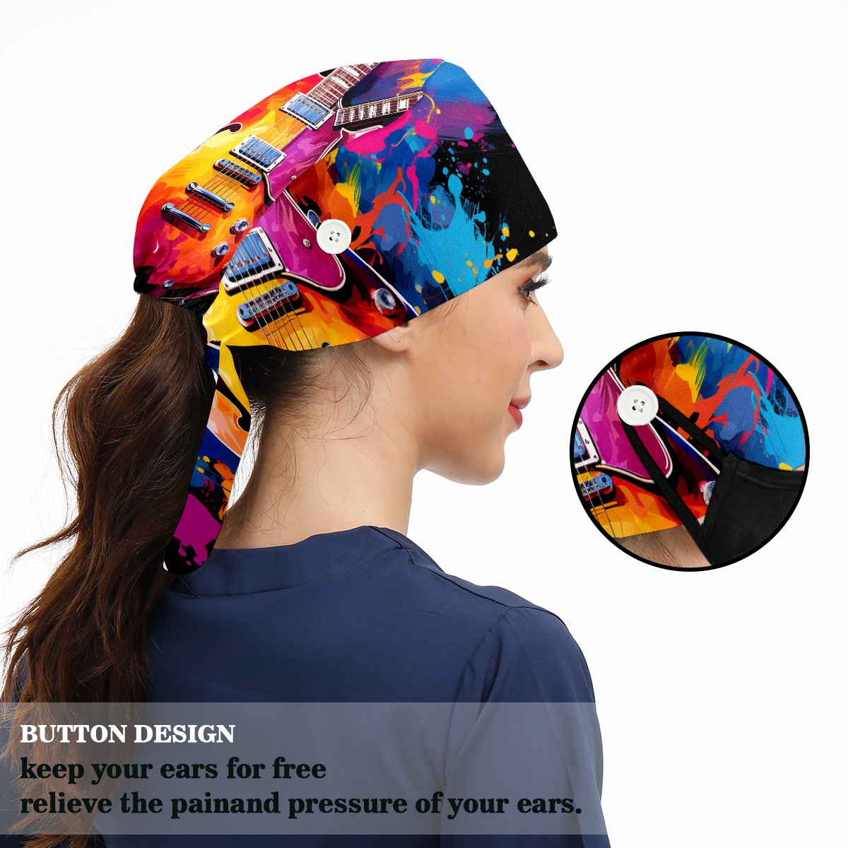 Working Caps with Button&Sweatband Satin Lined Cotton Adjustable Nurse Hats Elastic Band Scrub Cap Surgeon Hat Guitar 3