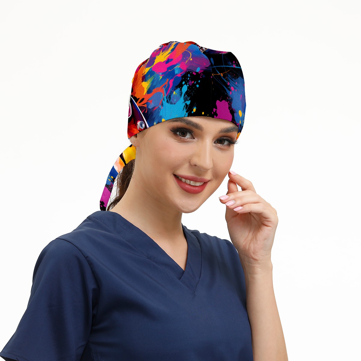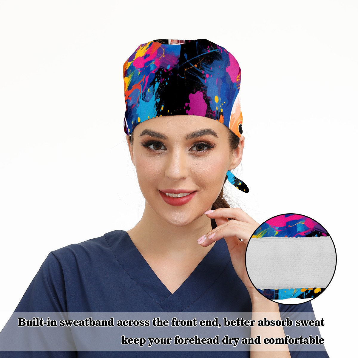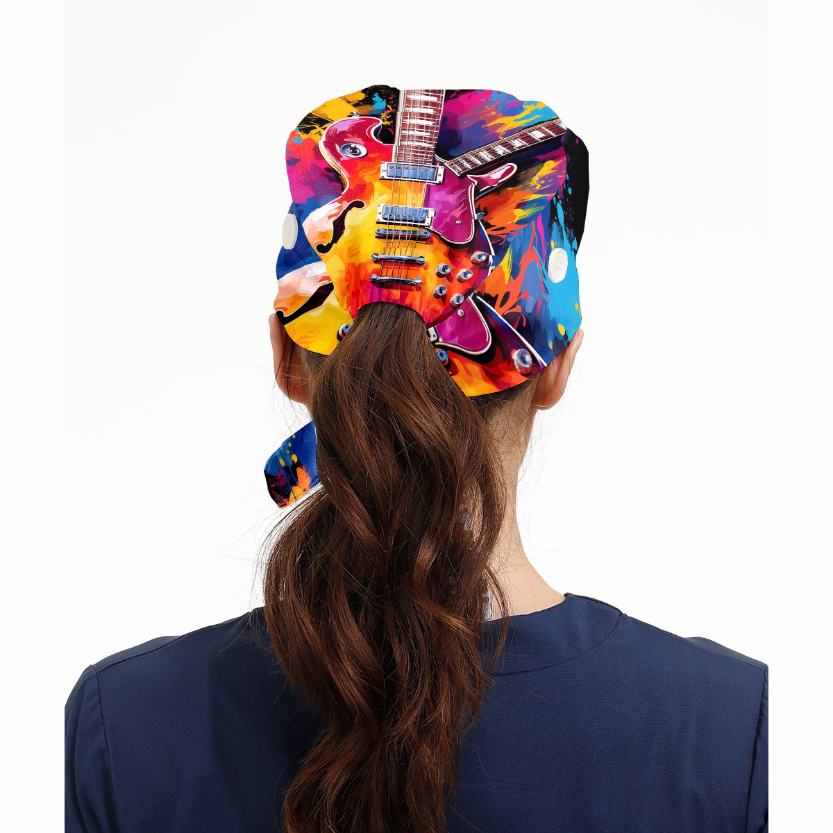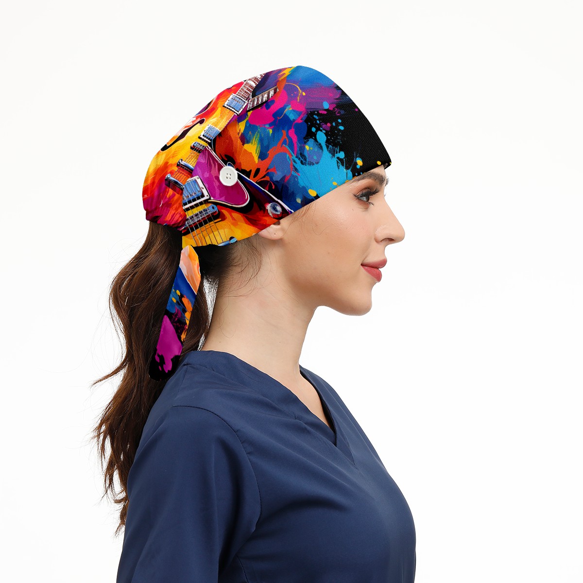 Working Caps with Button&Sweatband Satin Lined Cotton Adjustable Nurse Hats Elastic Band Scrub Cap Surgeon Hat Guitar 3
