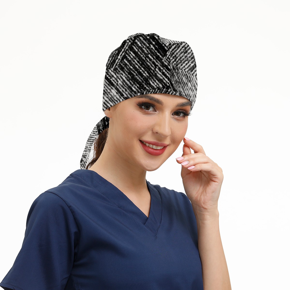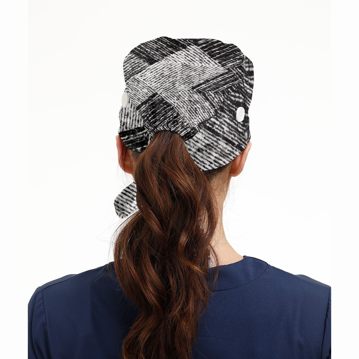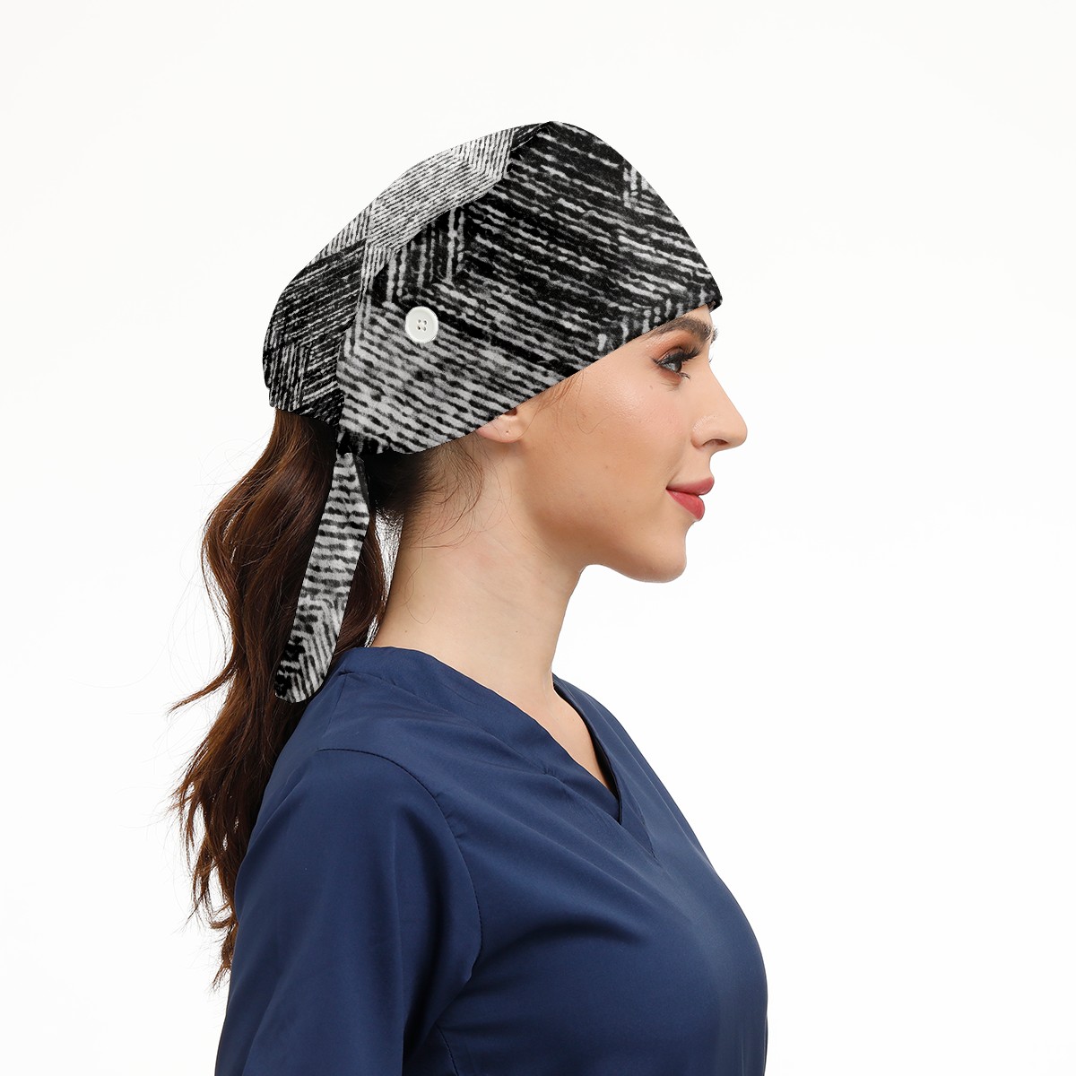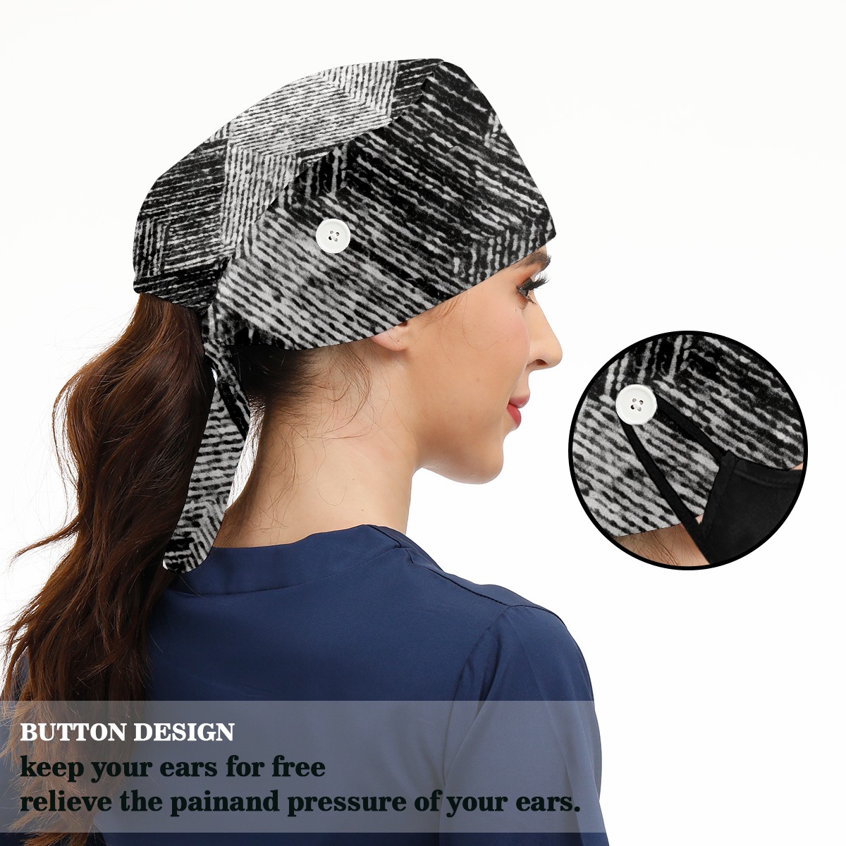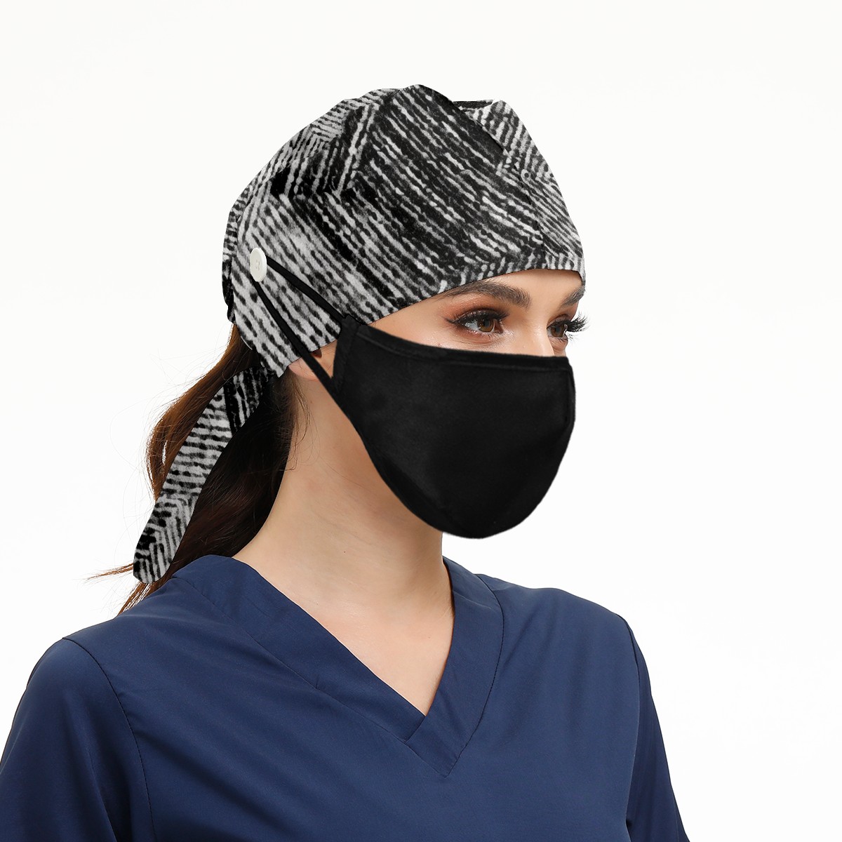 Working Caps with Button&Sweatband Satin Lined Cotton Adjustable Nurse Hats Elastic Band Scrub Cap Surgeon Hat Harris Tweed Plaid 3