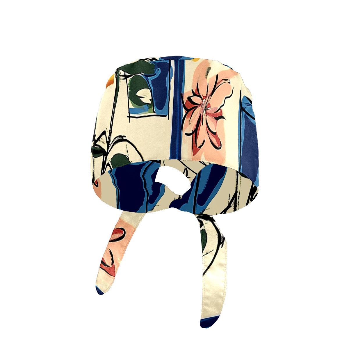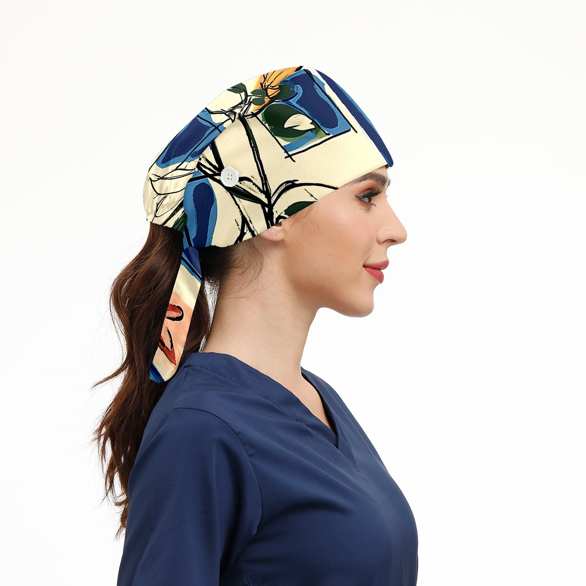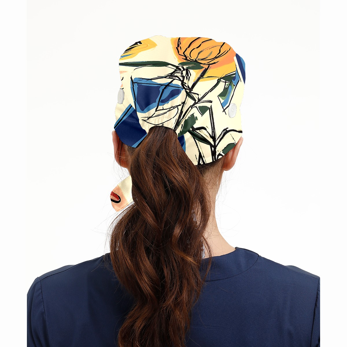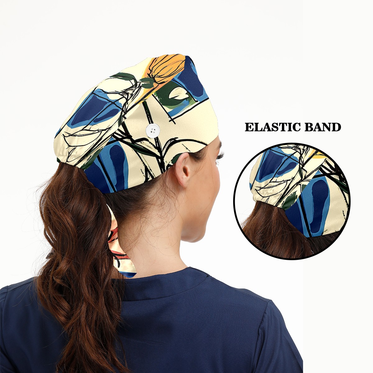 Working Caps with Button&Sweatband Satin Lined Cotton Adjustable Nurse Hats Elastic Band Scrub Cap Surgeon Hat Glass Flowers 4