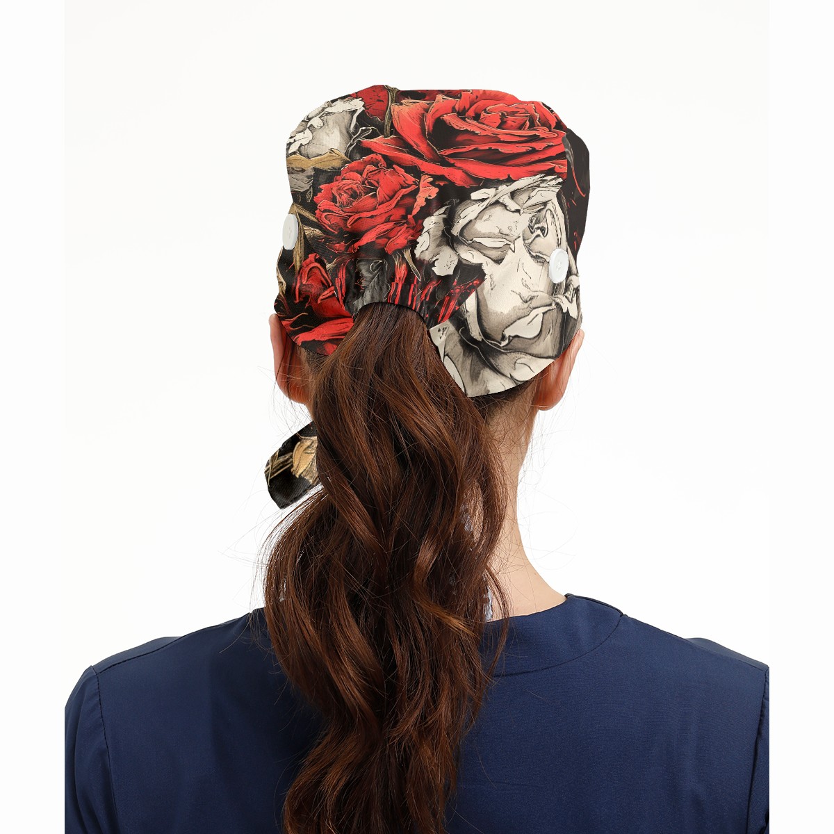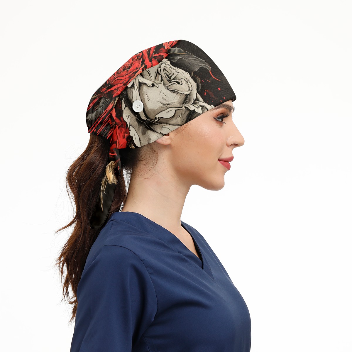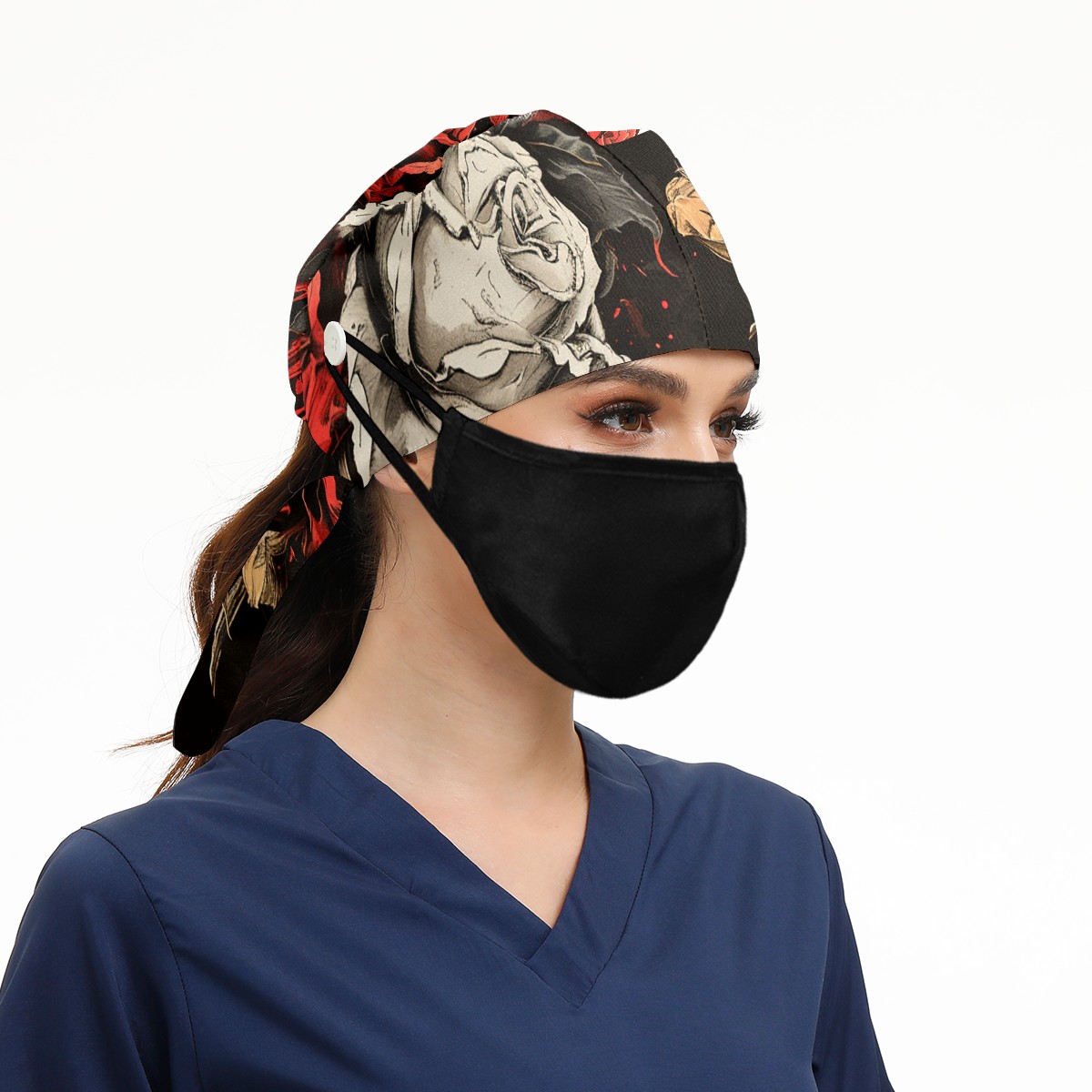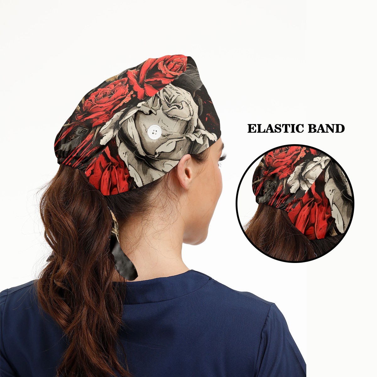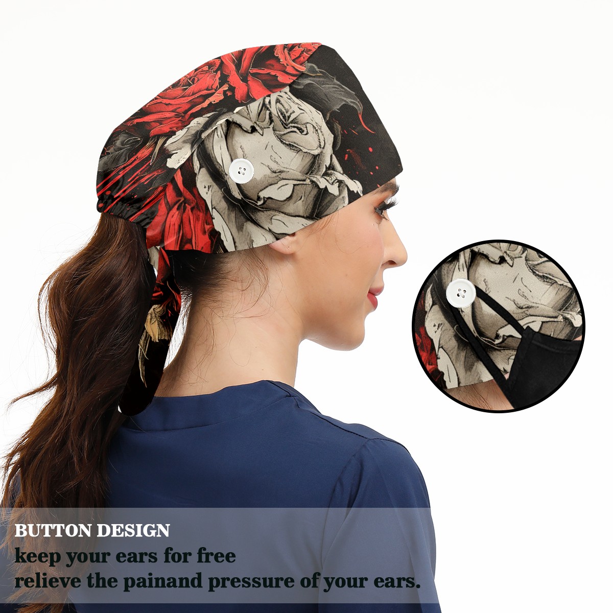 Working Caps with Button&Sweatband Satin Lined Cotton Adjustable Nurse Hats Elastic Band Scrub Cap Surgeon Hat Flowers Dying 4