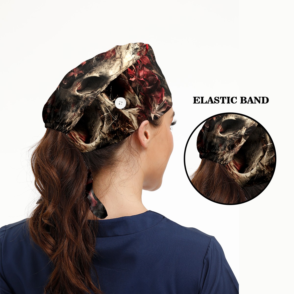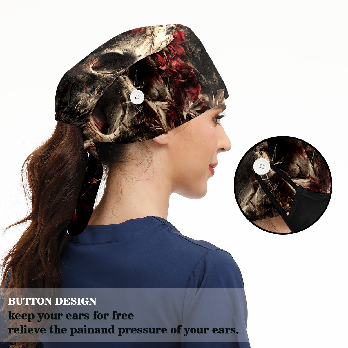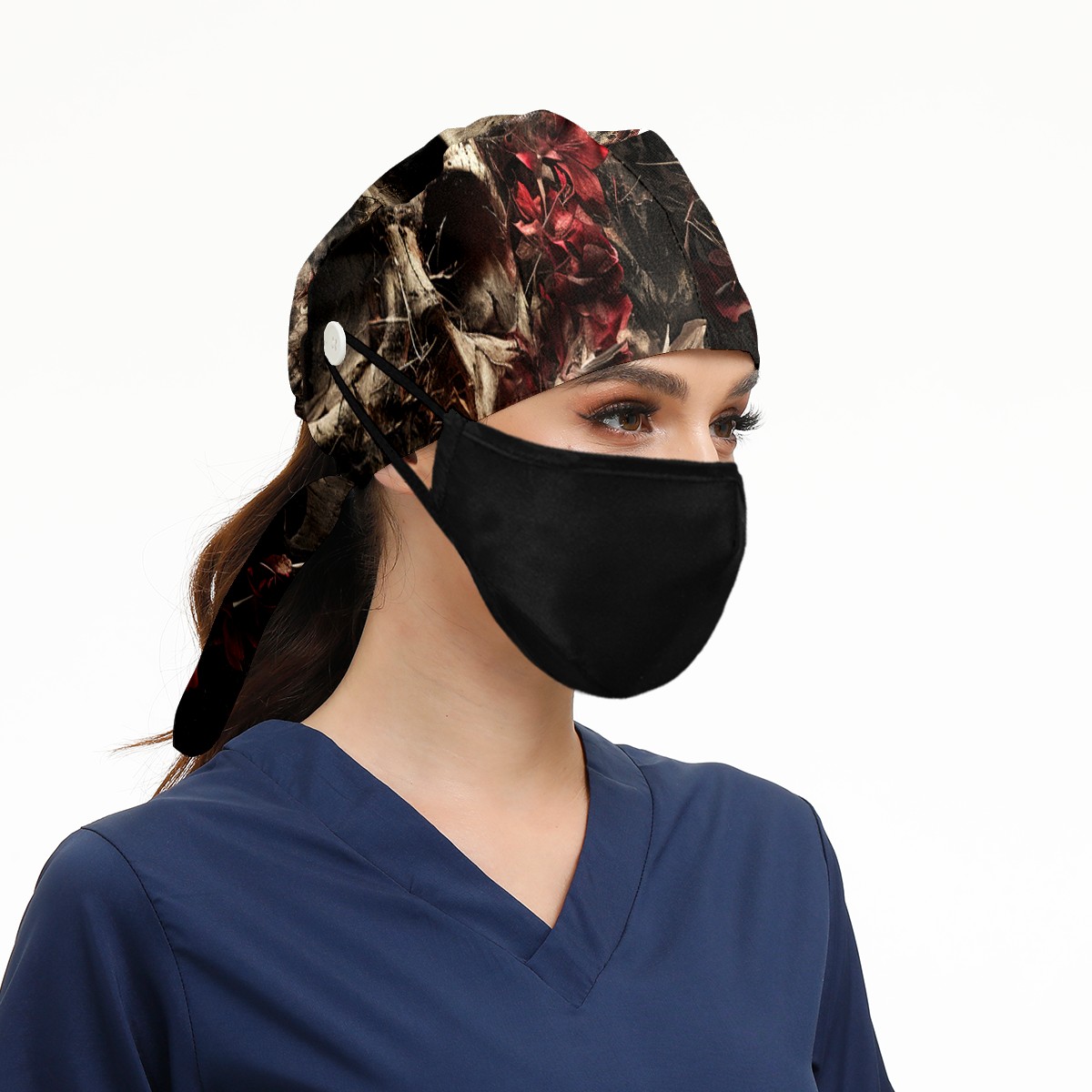 Working Caps with Button&Sweatband Satin Lined Cotton Adjustable Nurse Hats Elastic Band Scrub Cap Surgeon Hat Flowers Dying 1