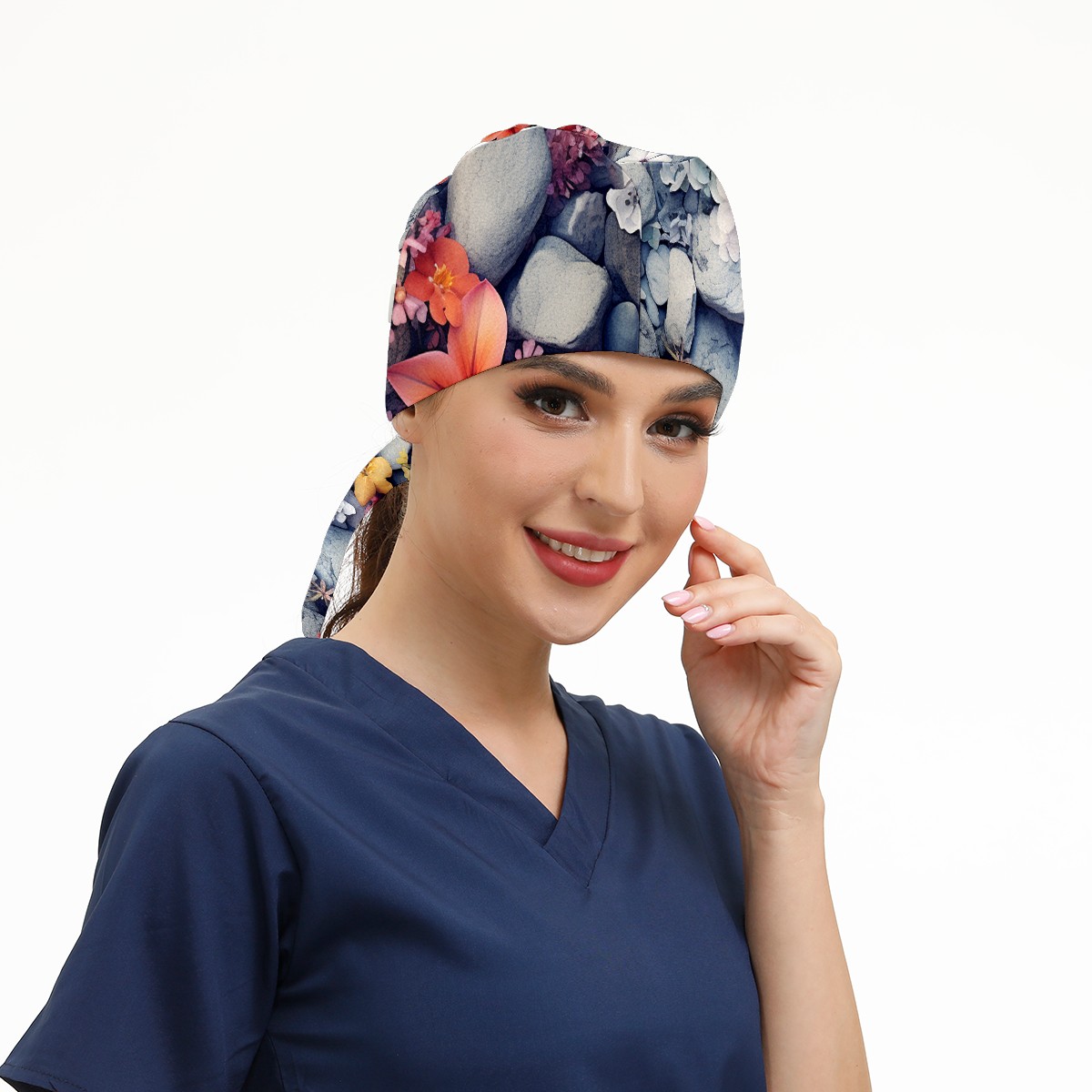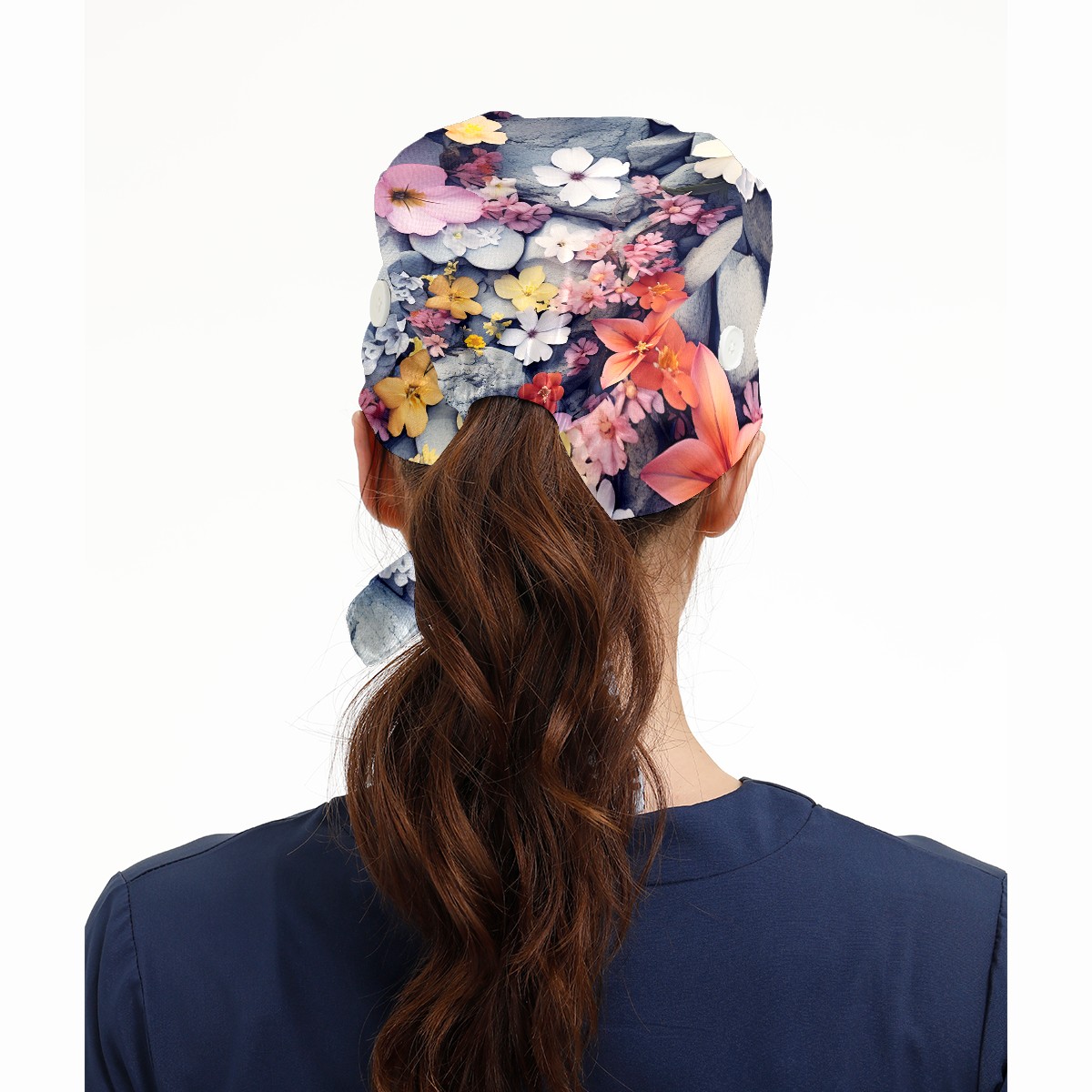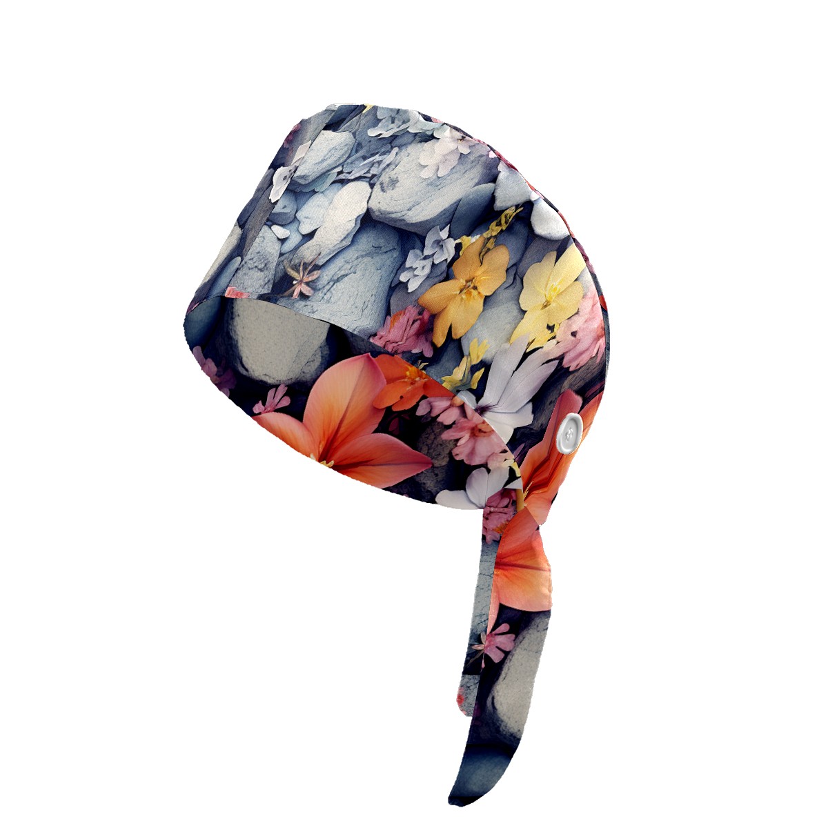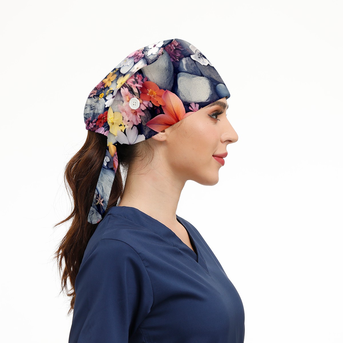 Working Caps with Button&Sweatband Satin Lined Cotton Adjustable Nurse Hats Elastic Band Scrub Cap Surgeon Hat Flower 007
