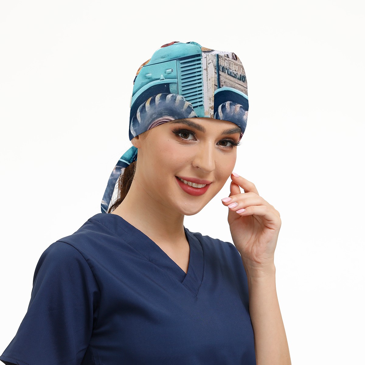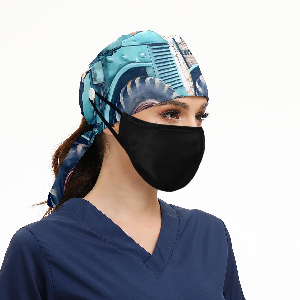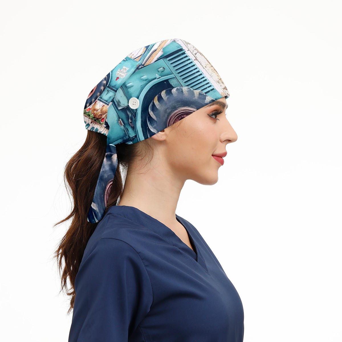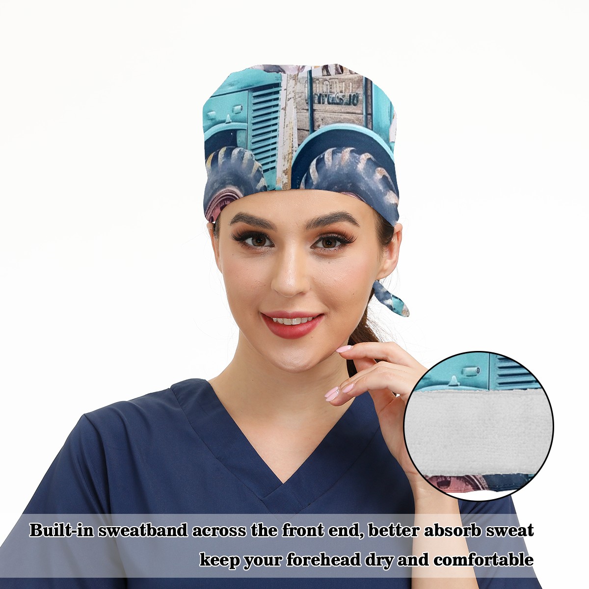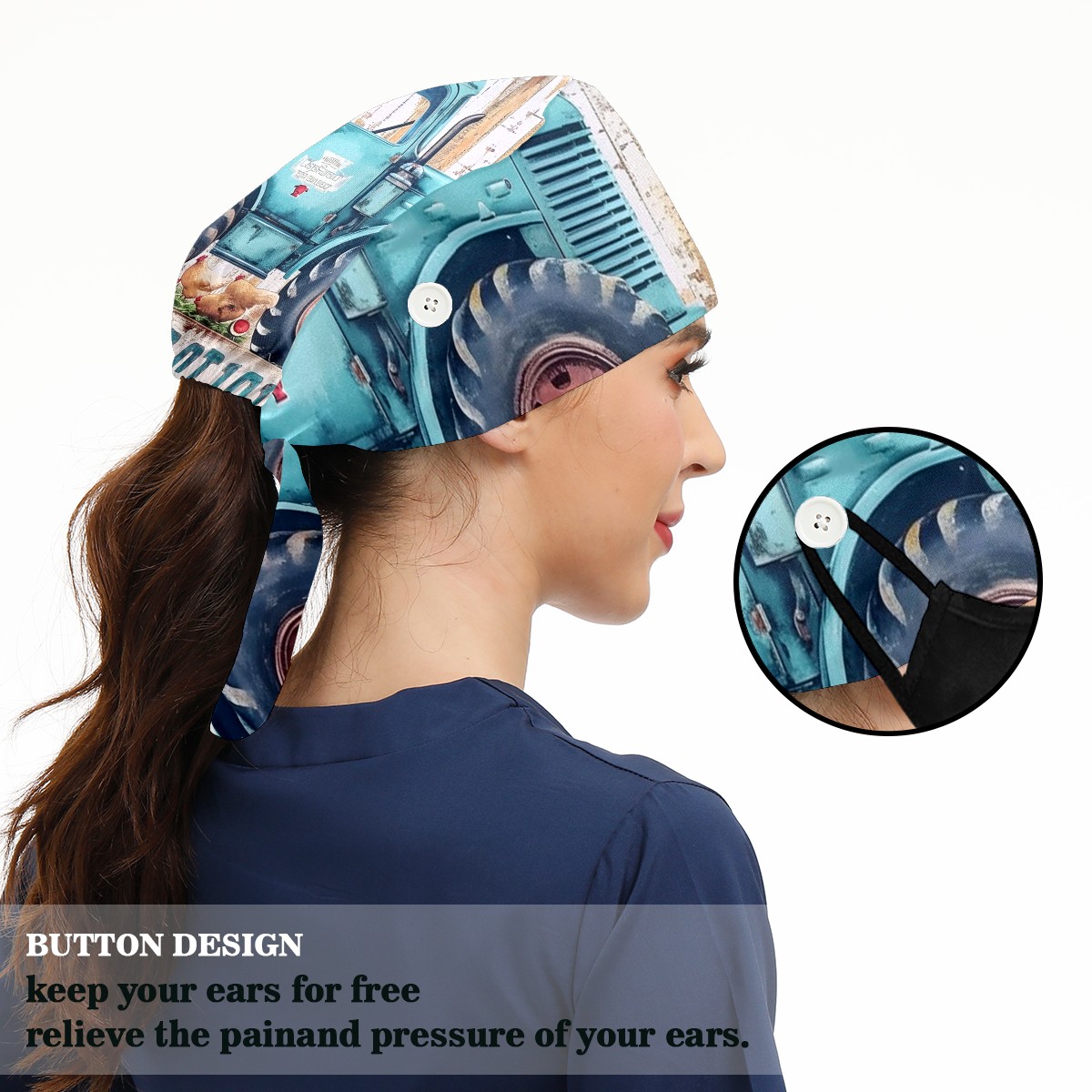 Working Caps with Button&Sweatband Satin Lined Cotton Adjustable Nurse Hats Elastic Band Scrub Cap Surgeon Hat Chicken 3