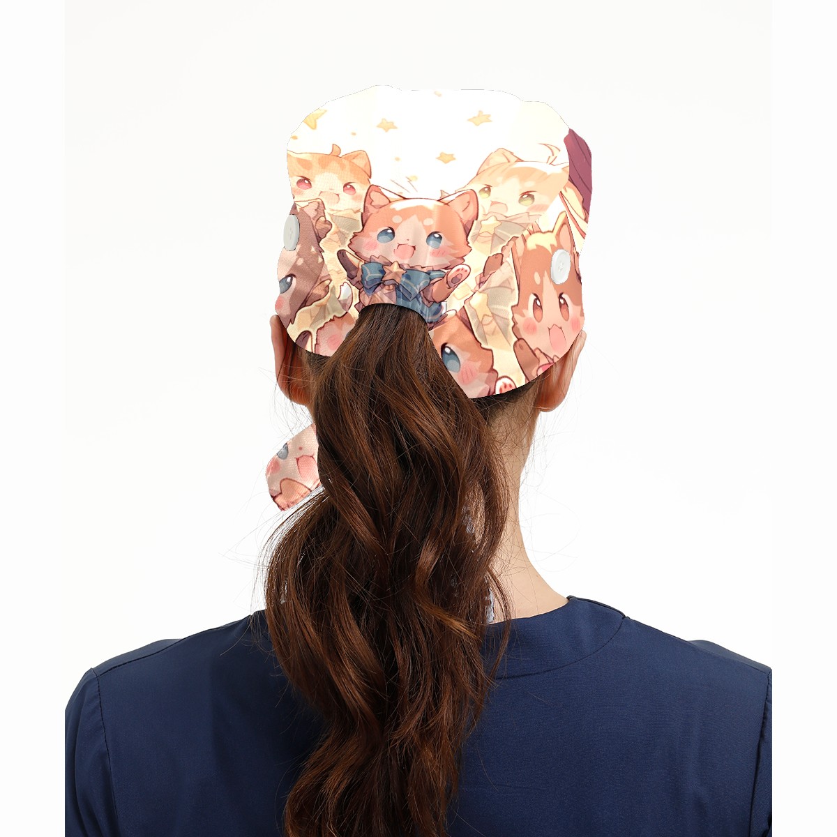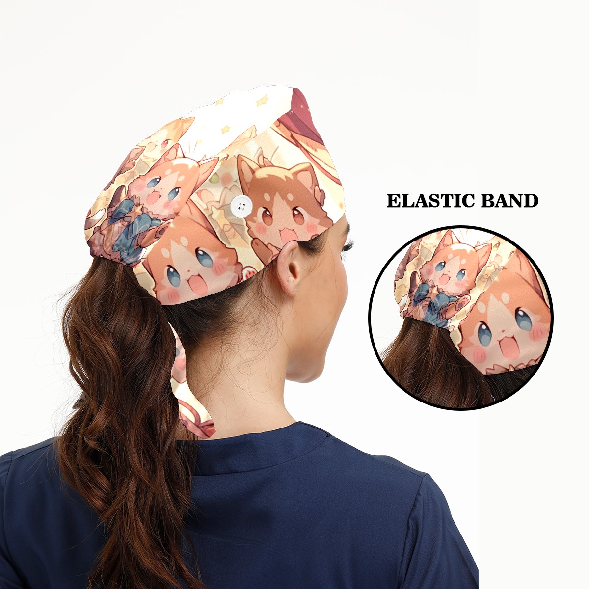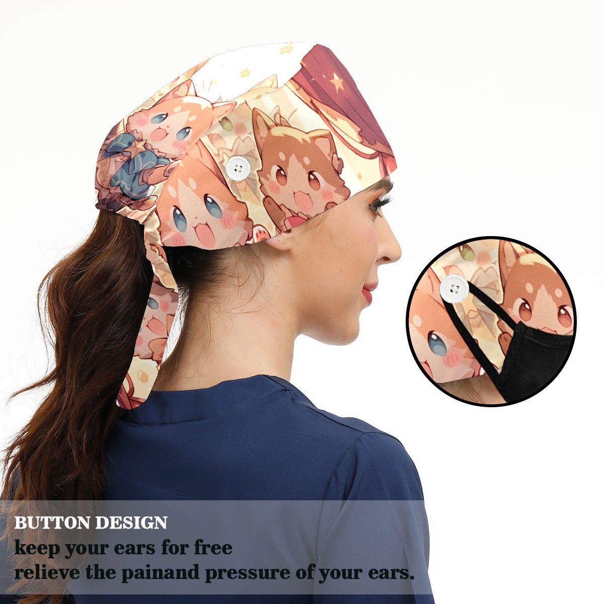 Working Caps with Button&Sweatband Satin Lined Cotton Adjustable Nurse Hats Elastic Band Scrub Cap Surgeon Hat Cat Stage 4