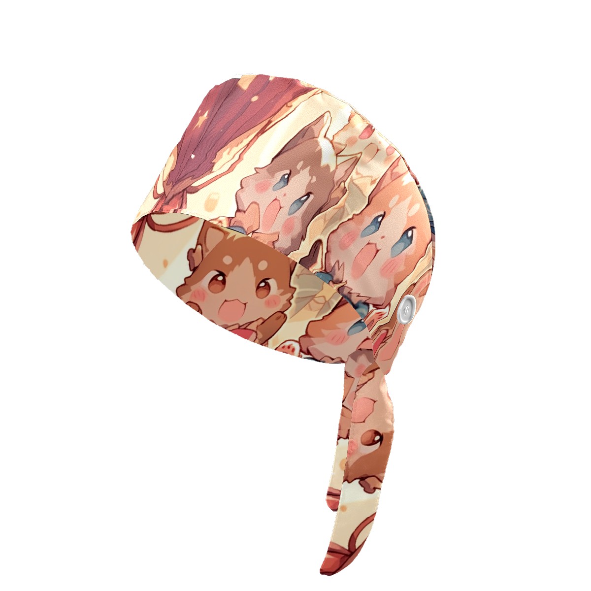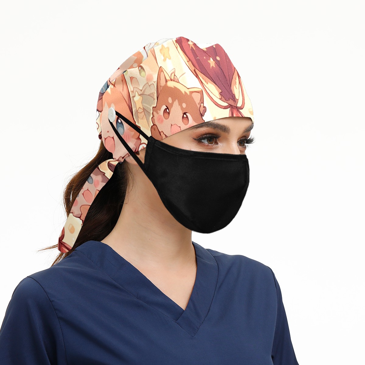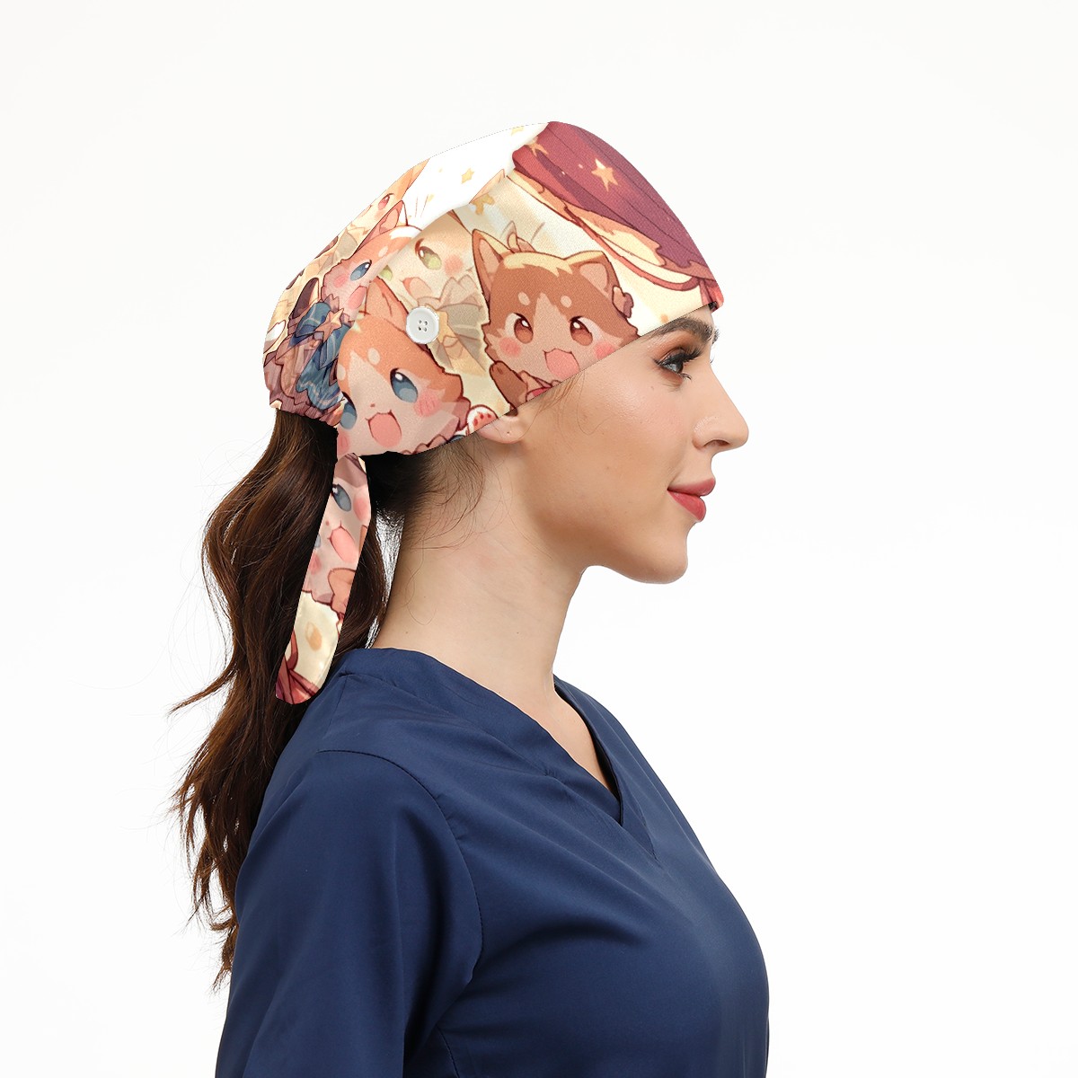 Working Caps with Button&Sweatband Satin Lined Cotton Adjustable Nurse Hats Elastic Band Scrub Cap Surgeon Hat Cat Stage 4