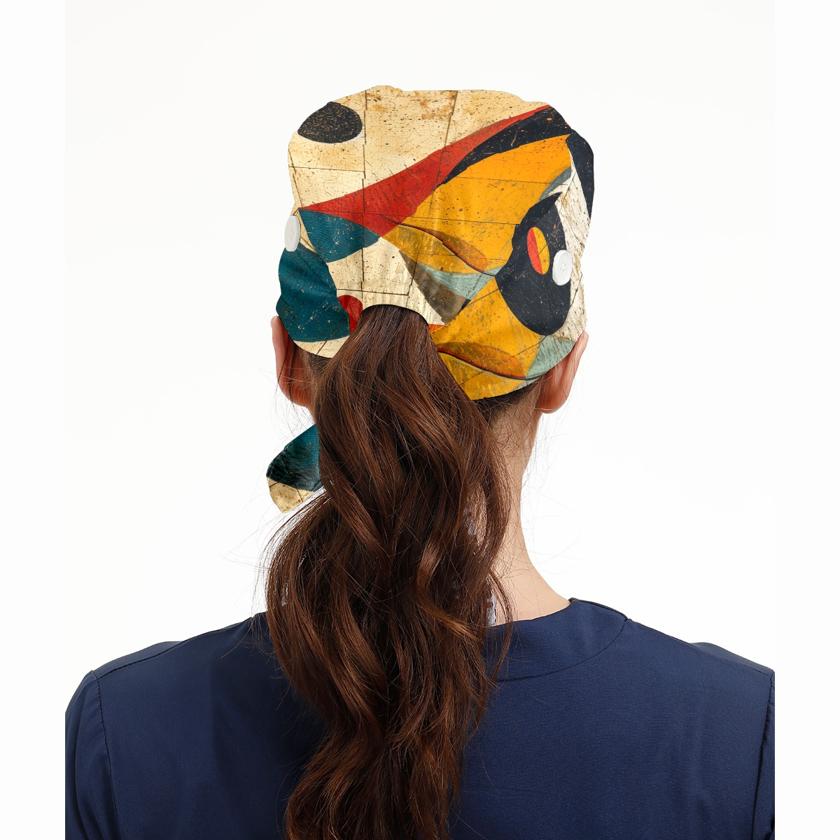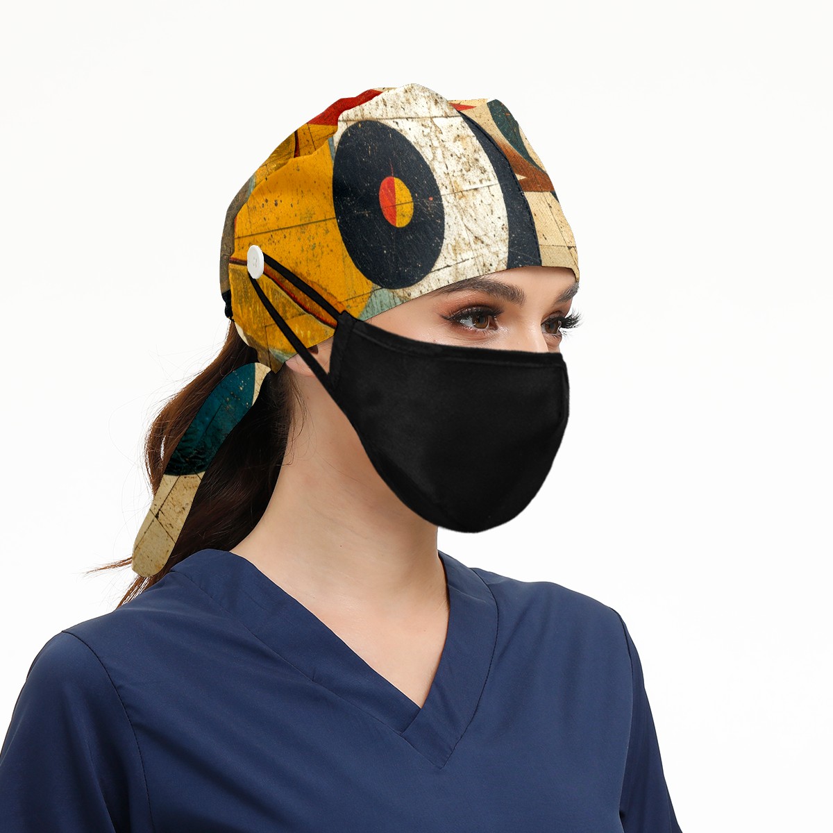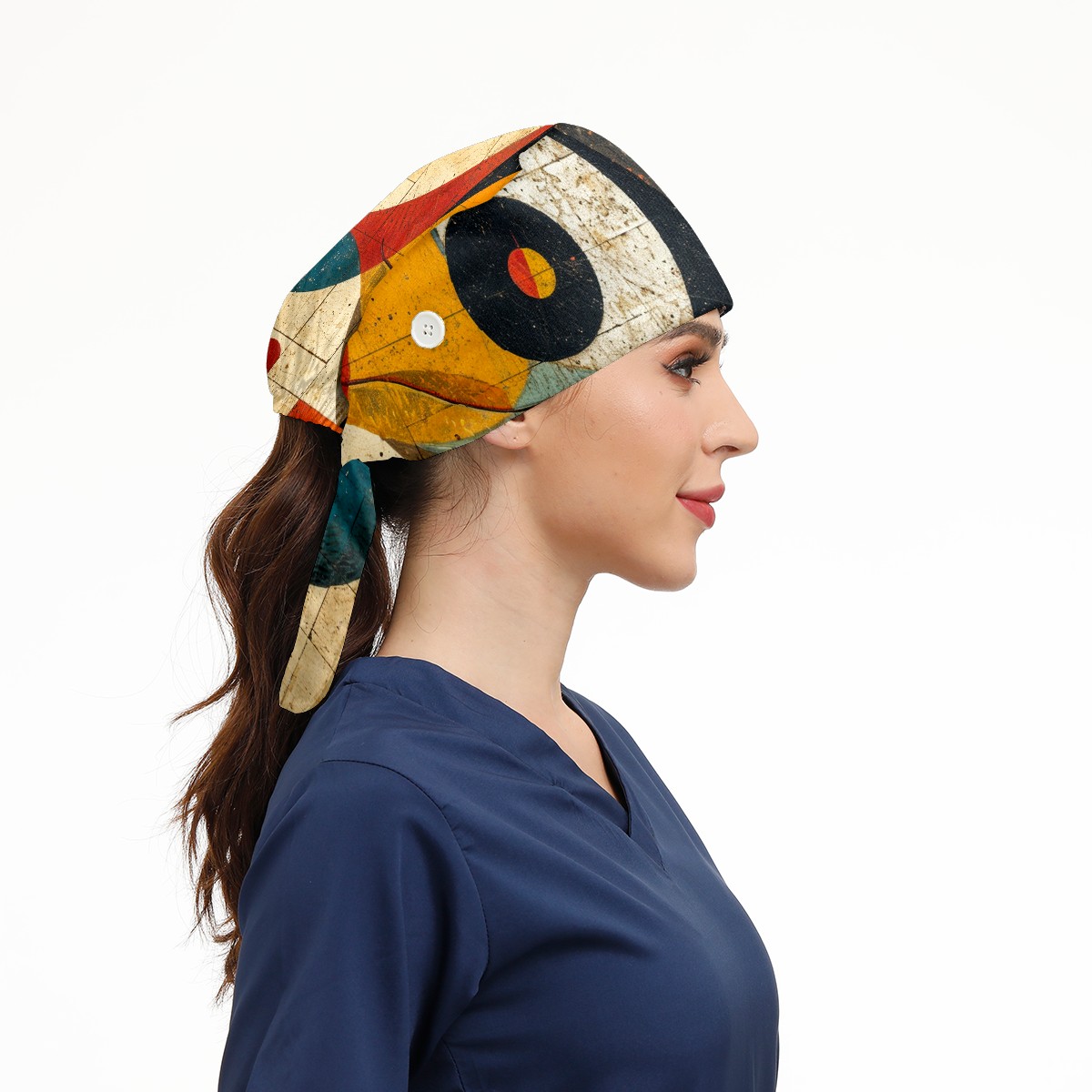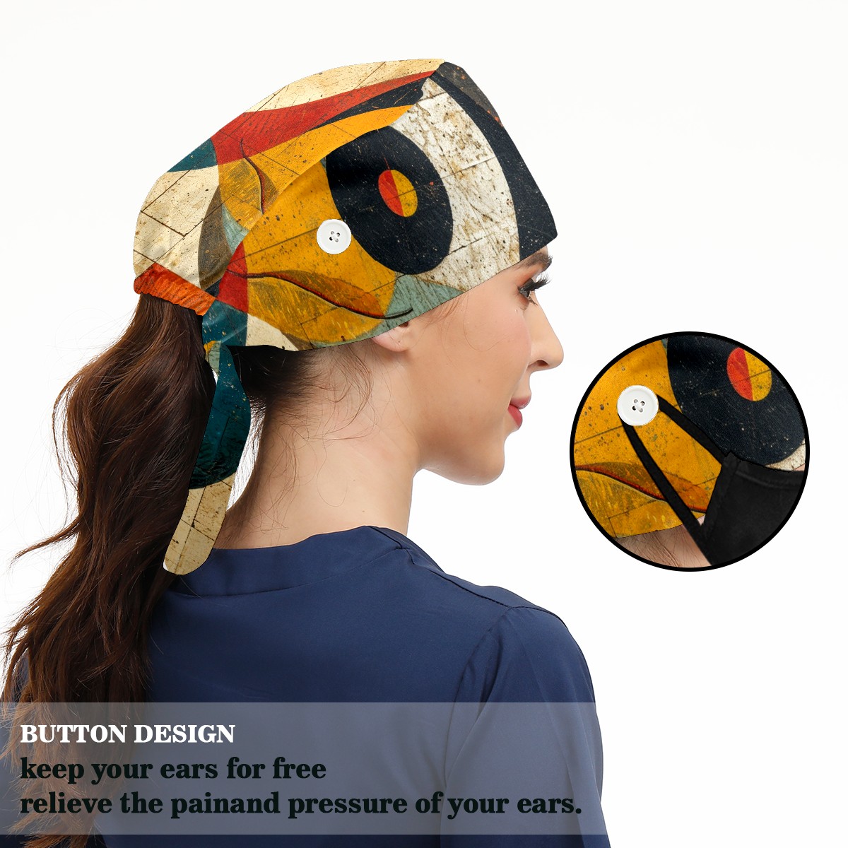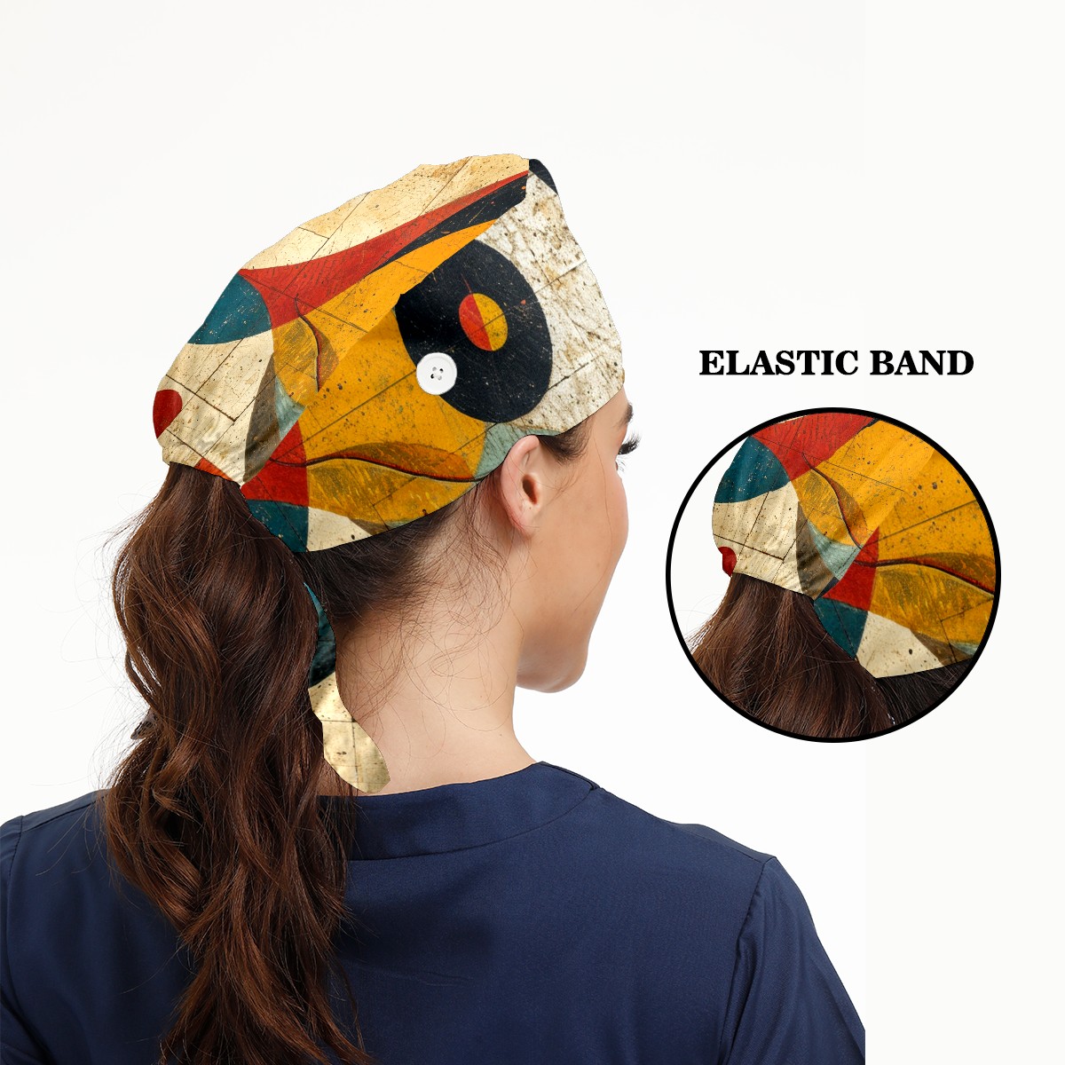 Working Caps with Button&Sweatband Satin Lined Cotton Adjustable Nurse Hats Elastic Band Scrub Cap Surgeon Hat Abstract Shapes 5