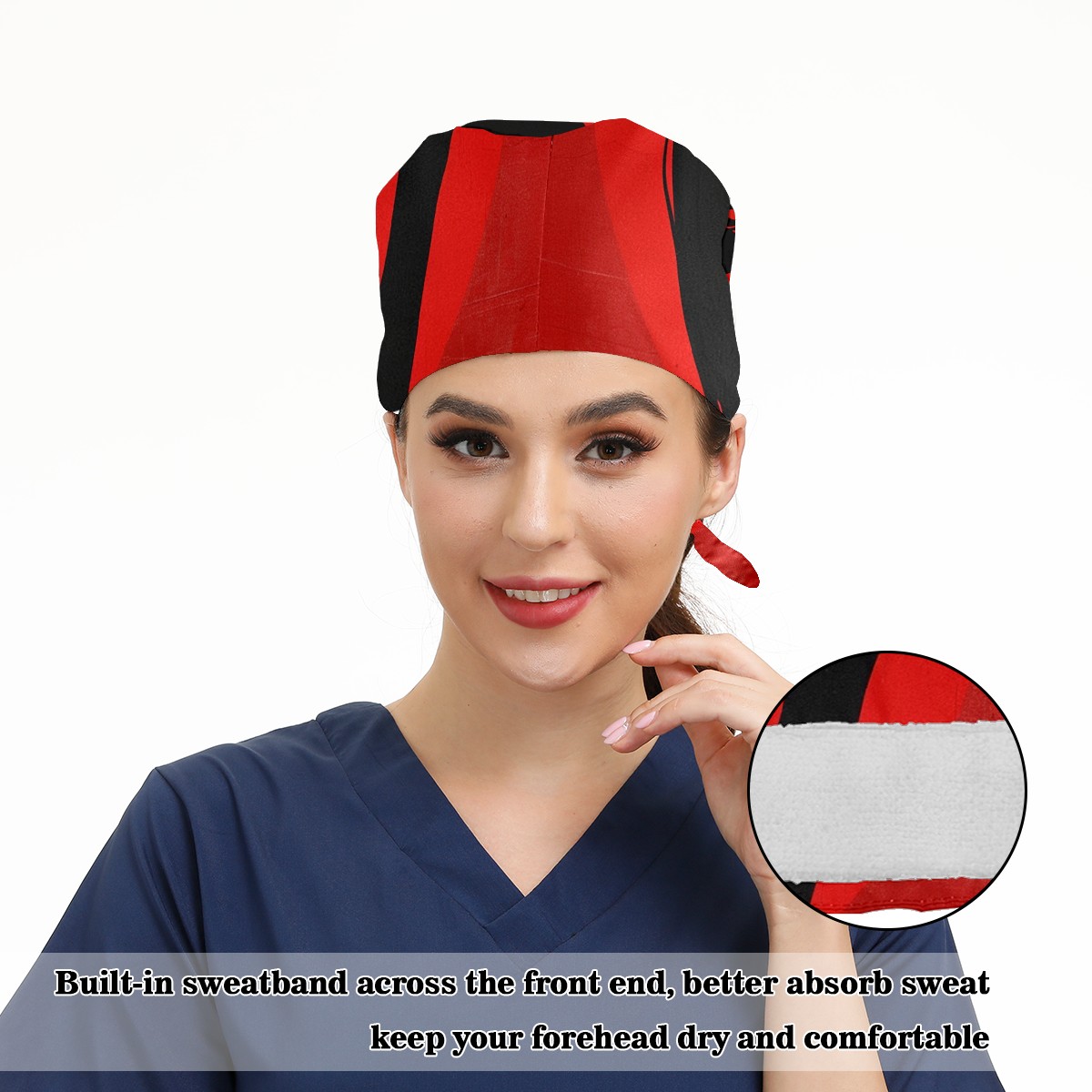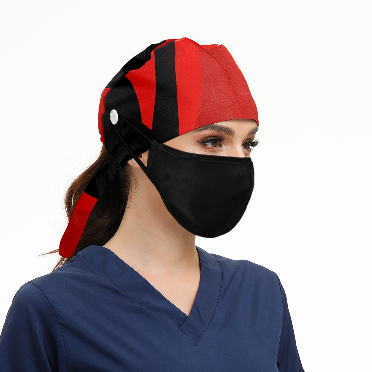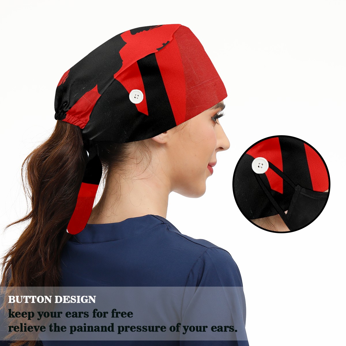 Working Caps with Button&Sweatband Satin Lined Cotton Adjustable Nurse Hats Elastic Band Scrub Cap Surgeon Hat A Woman With A Gun 1