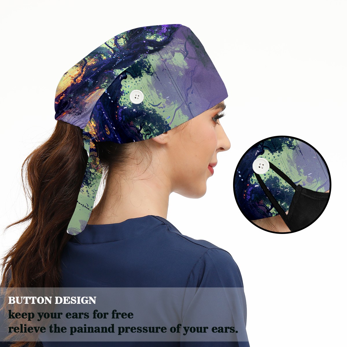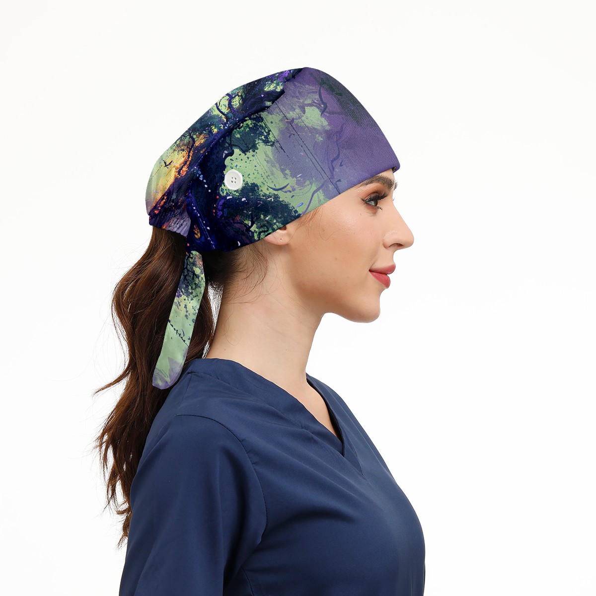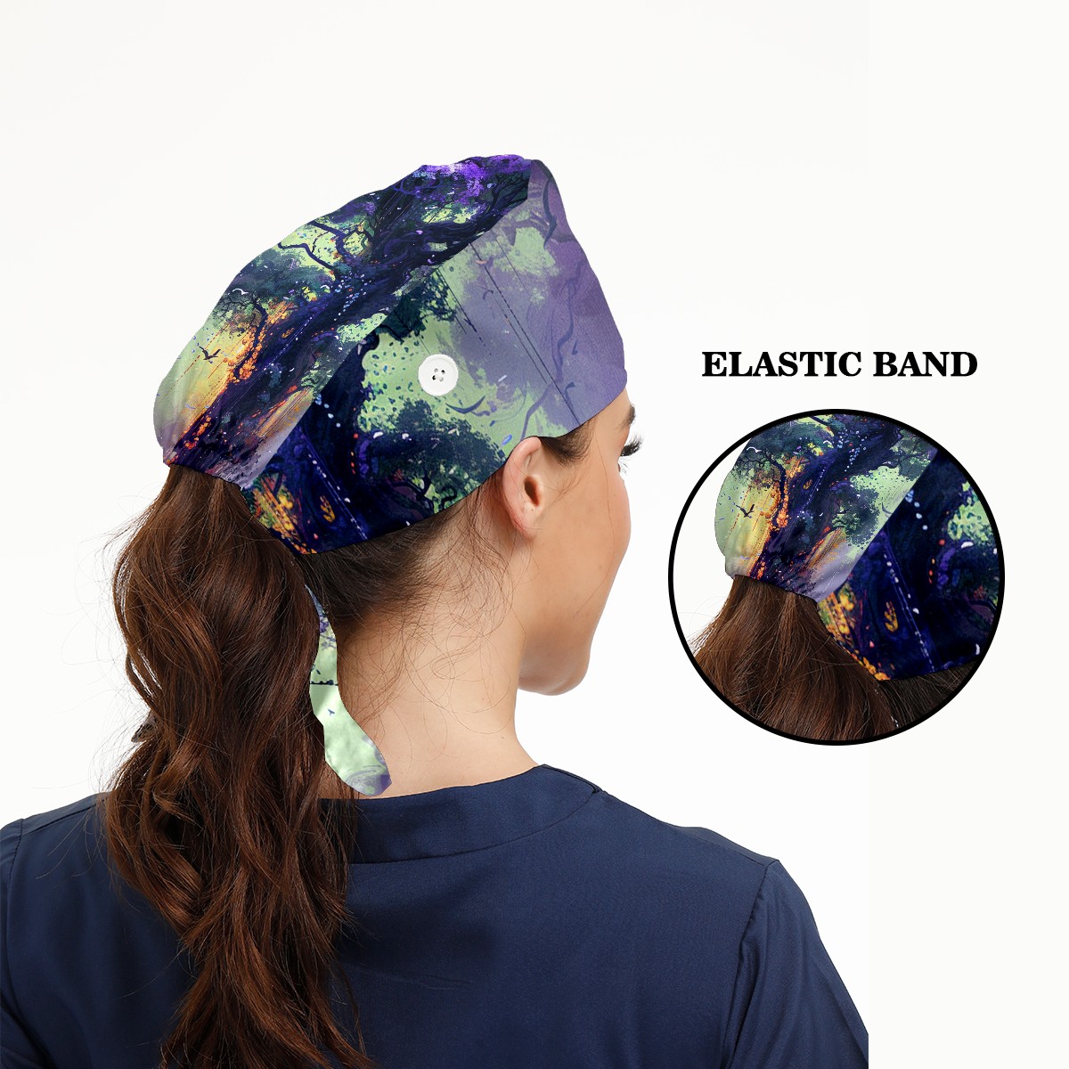 Working Caps with Button&Sweatband Satin Lined Cotton Adjustable Nurse Hats Elastic Band Scrub Cap Surgeon Hat Tree