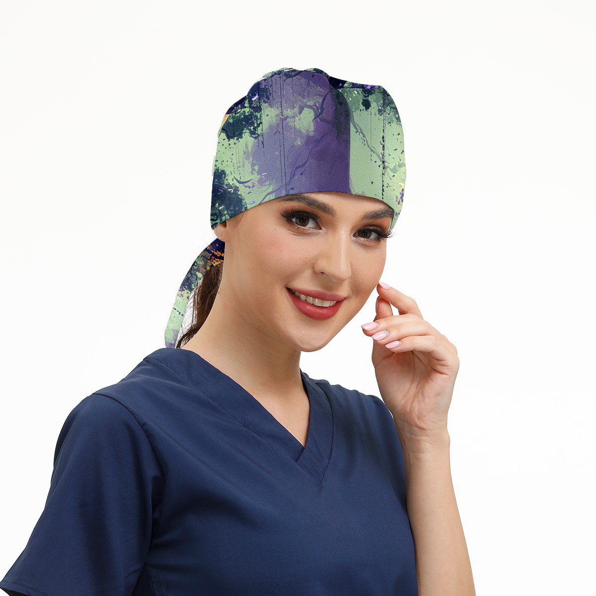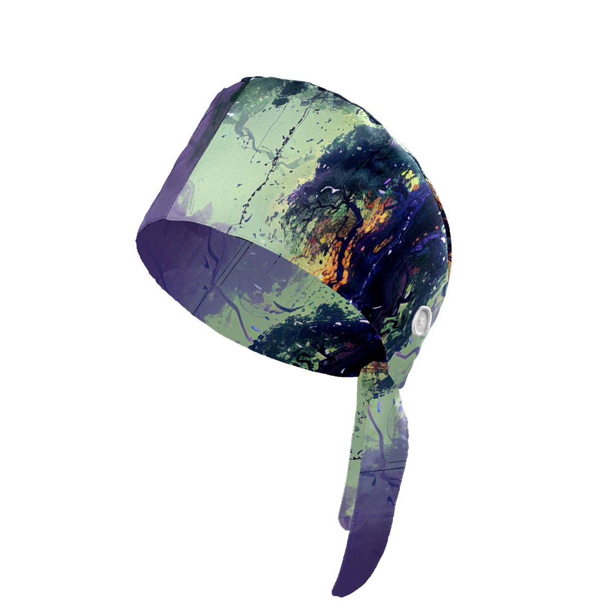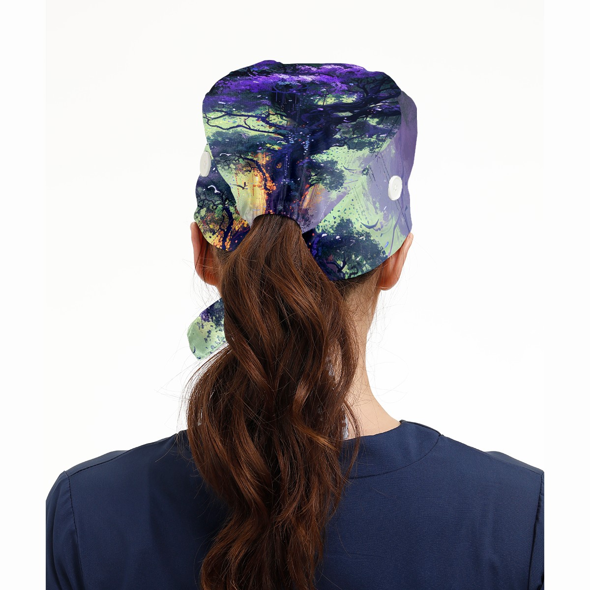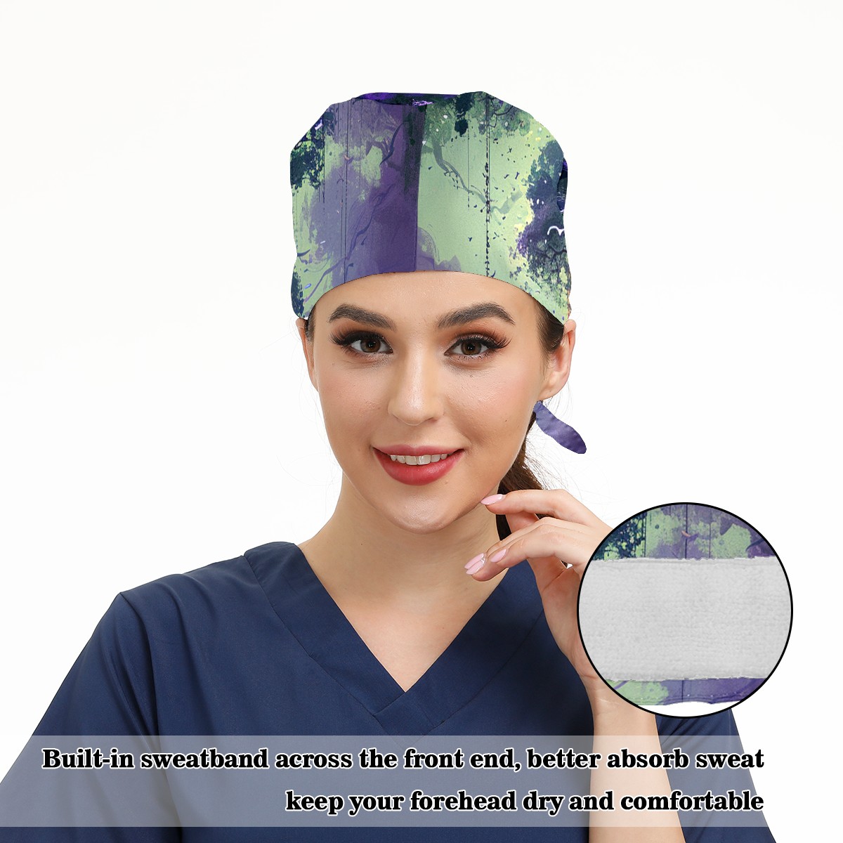 Working Caps with Button&Sweatband Satin Lined Cotton Adjustable Nurse Hats Elastic Band Scrub Cap Surgeon Hat Tree