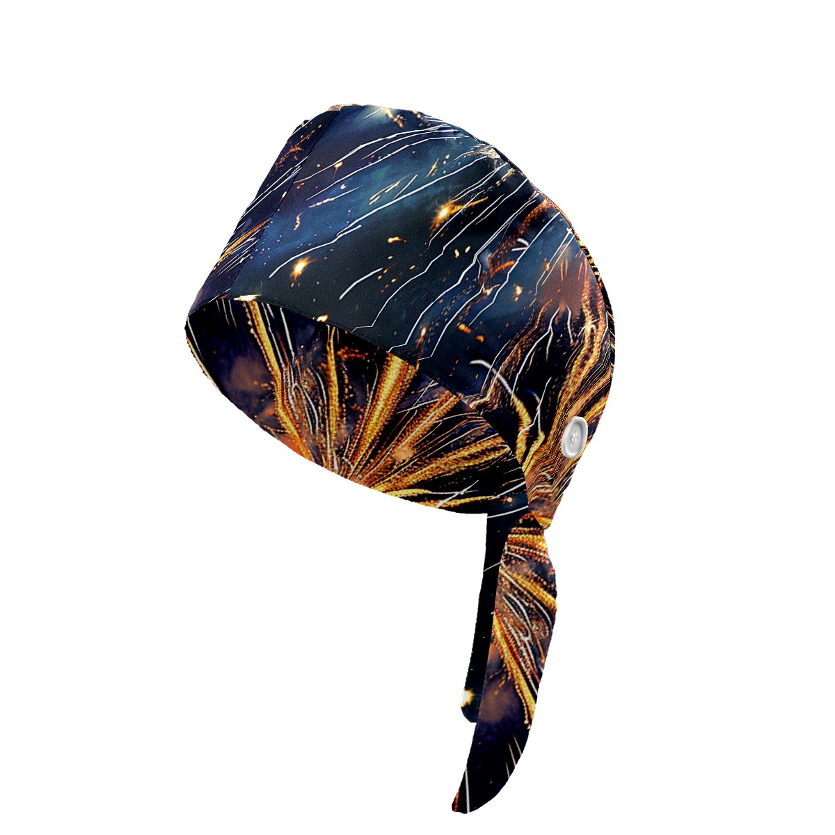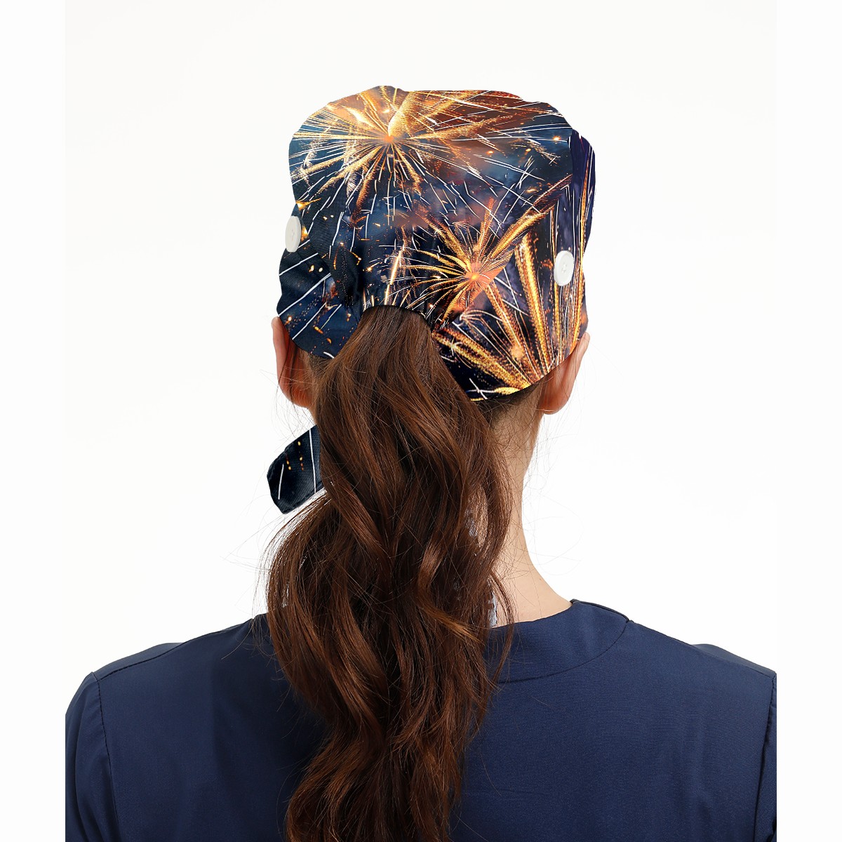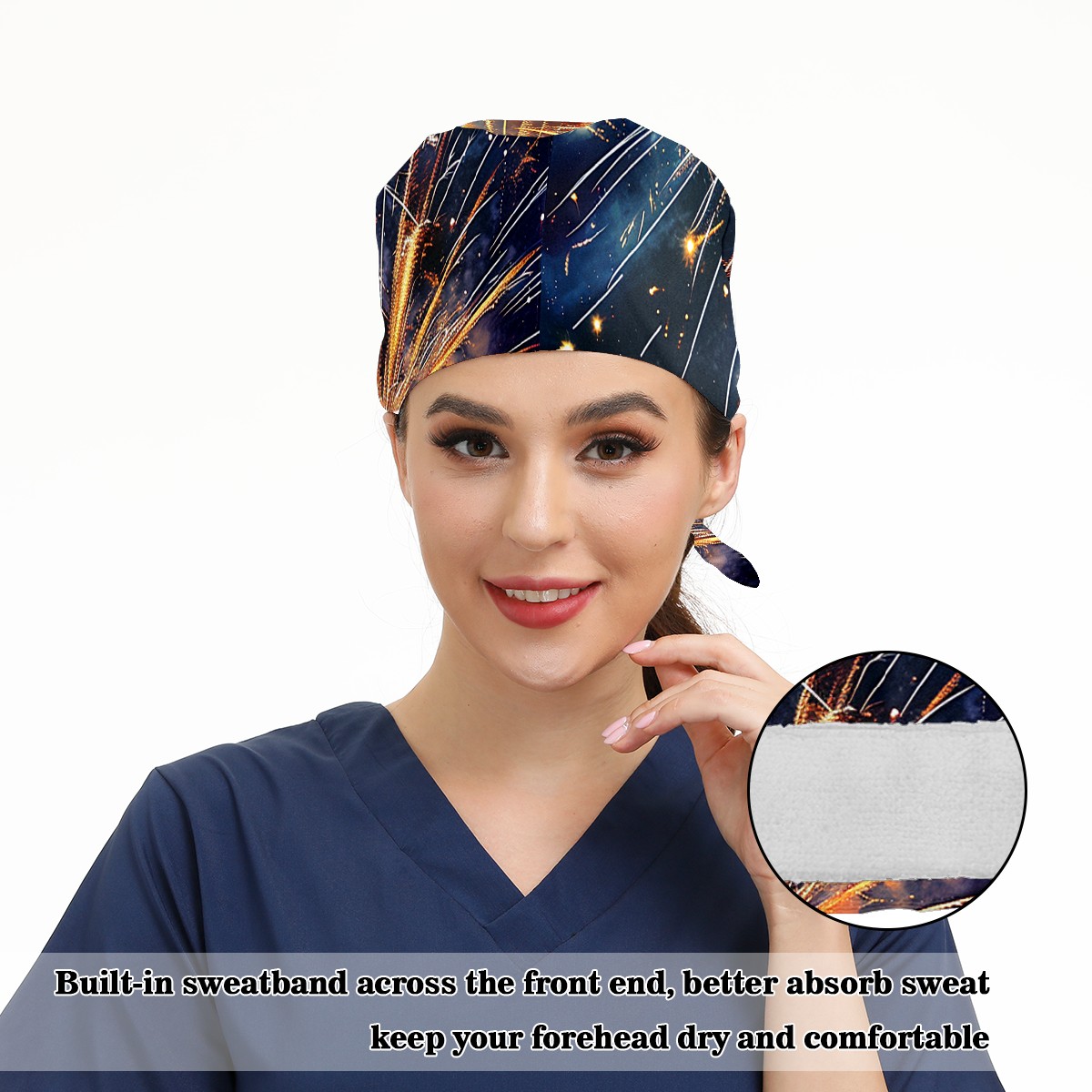 Working Caps with Button&Sweatband Satin Lined Cotton Adjustable Nurse Hats Elastic Band Scrub Cap Surgeon Hat Fireworks