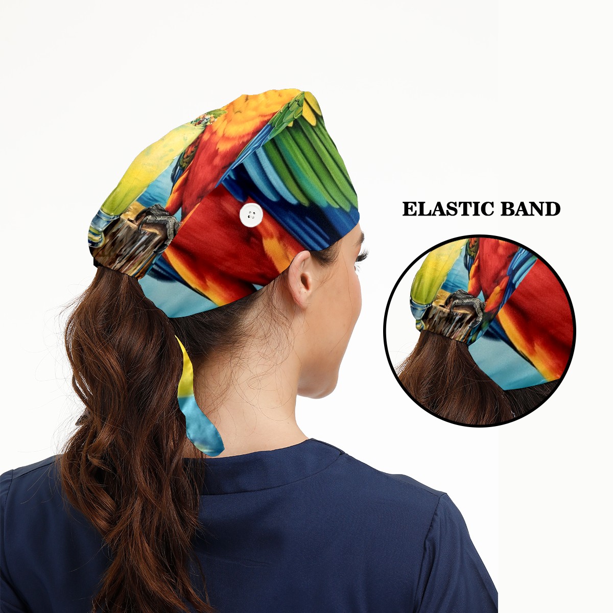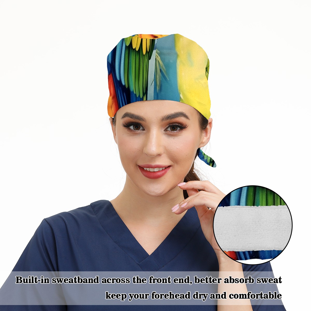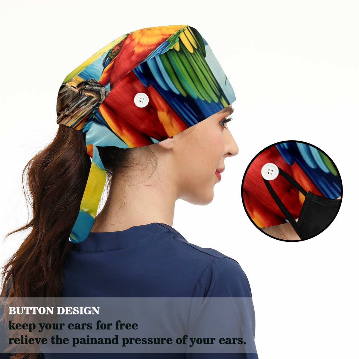 Working Caps with Button&Sweatband Satin Lined Cotton Adjustable Nurse Hats Elastic Band Scrub Cap Surgeon Hat Parrot (3)