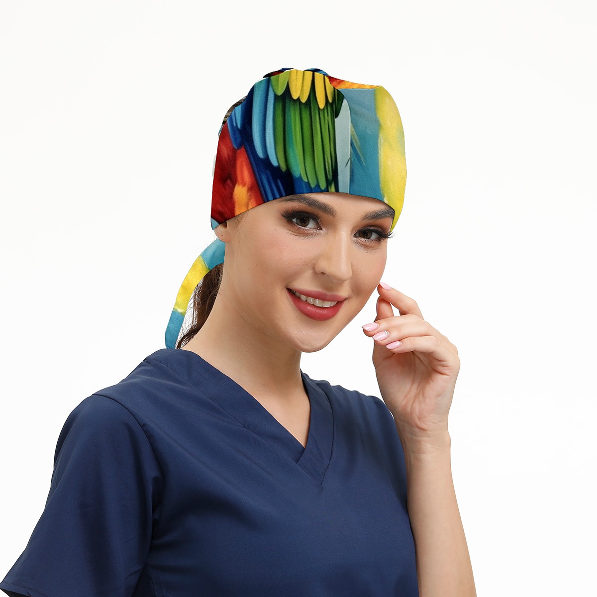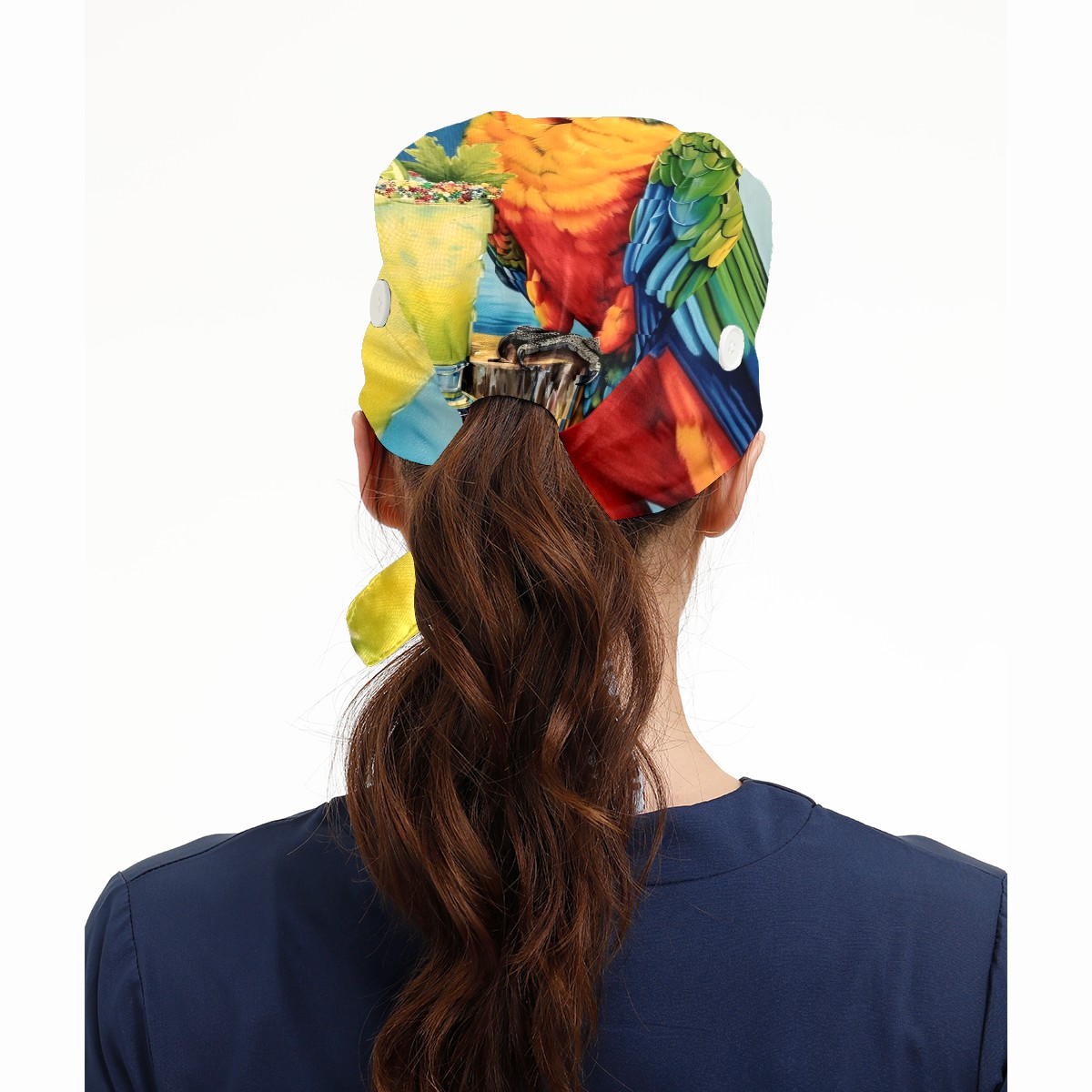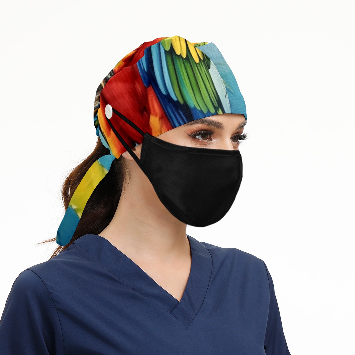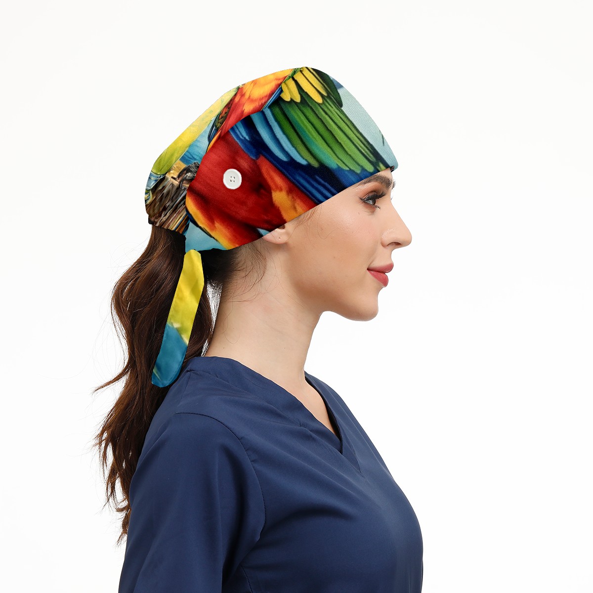 Working Caps with Button&Sweatband Satin Lined Cotton Adjustable Nurse Hats Elastic Band Scrub Cap Surgeon Hat Parrot (3)