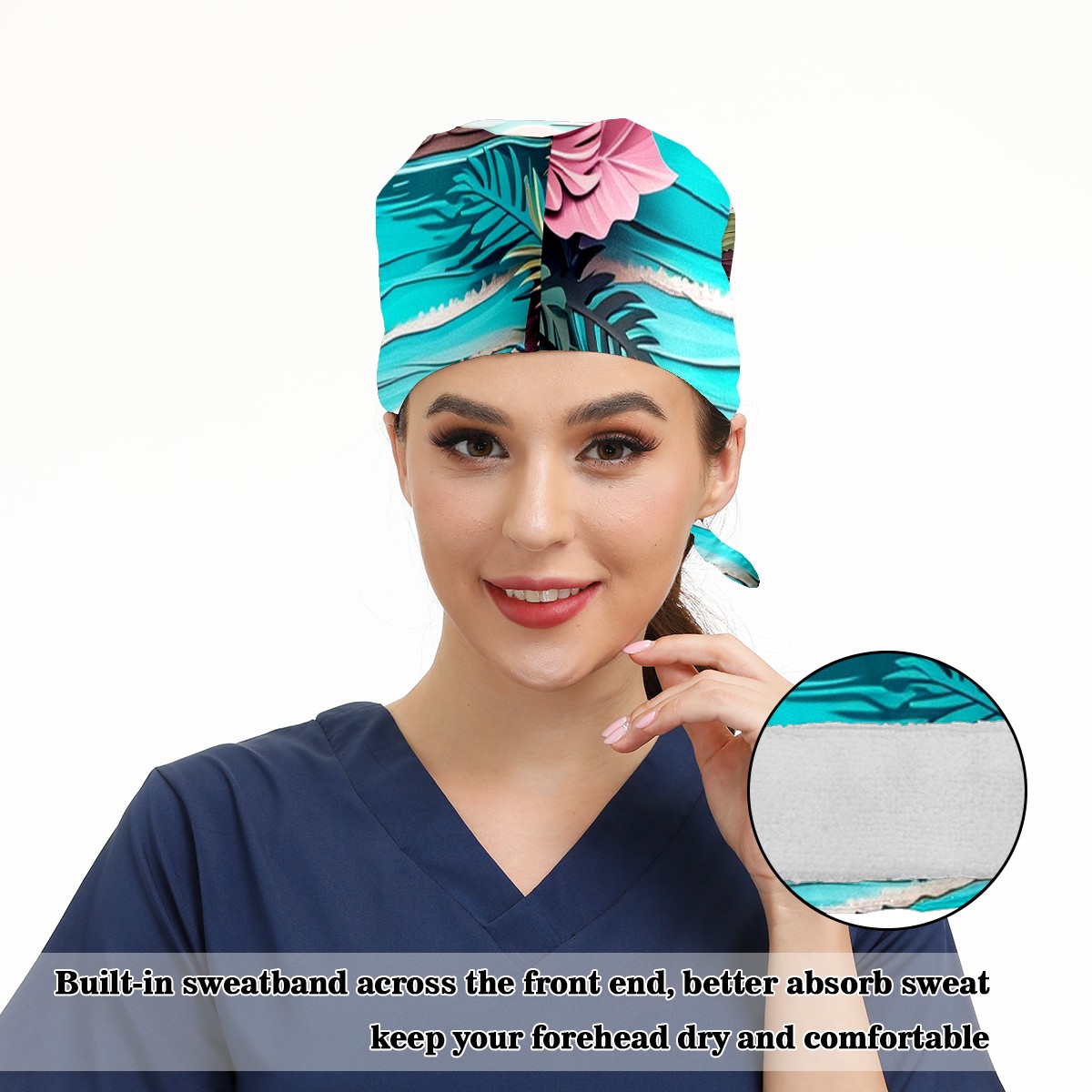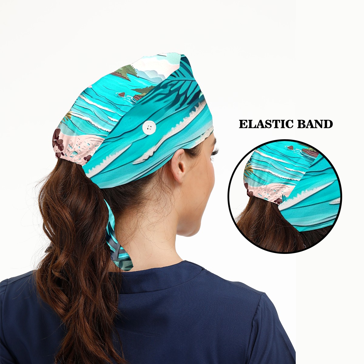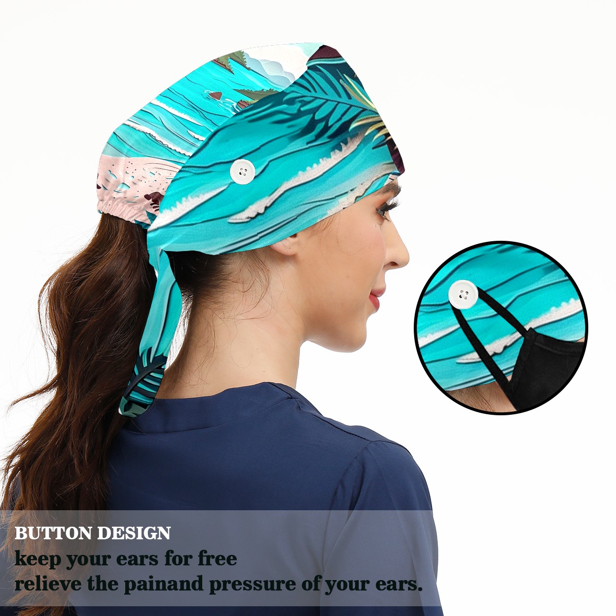 Working Caps with Button&Sweatband Satin Lined Cotton Adjustable Nurse Hats Elastic Band Scrub Cap Surgeon Hat Paper Art Drawing Beach (4)