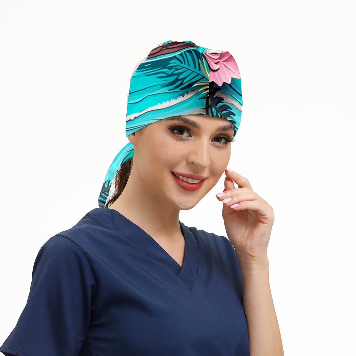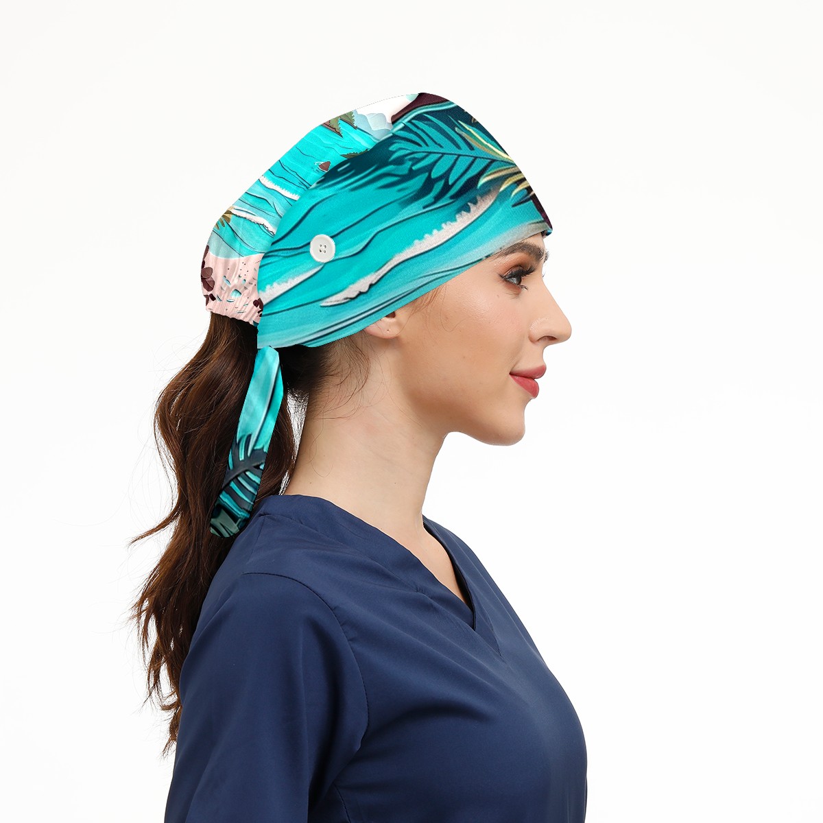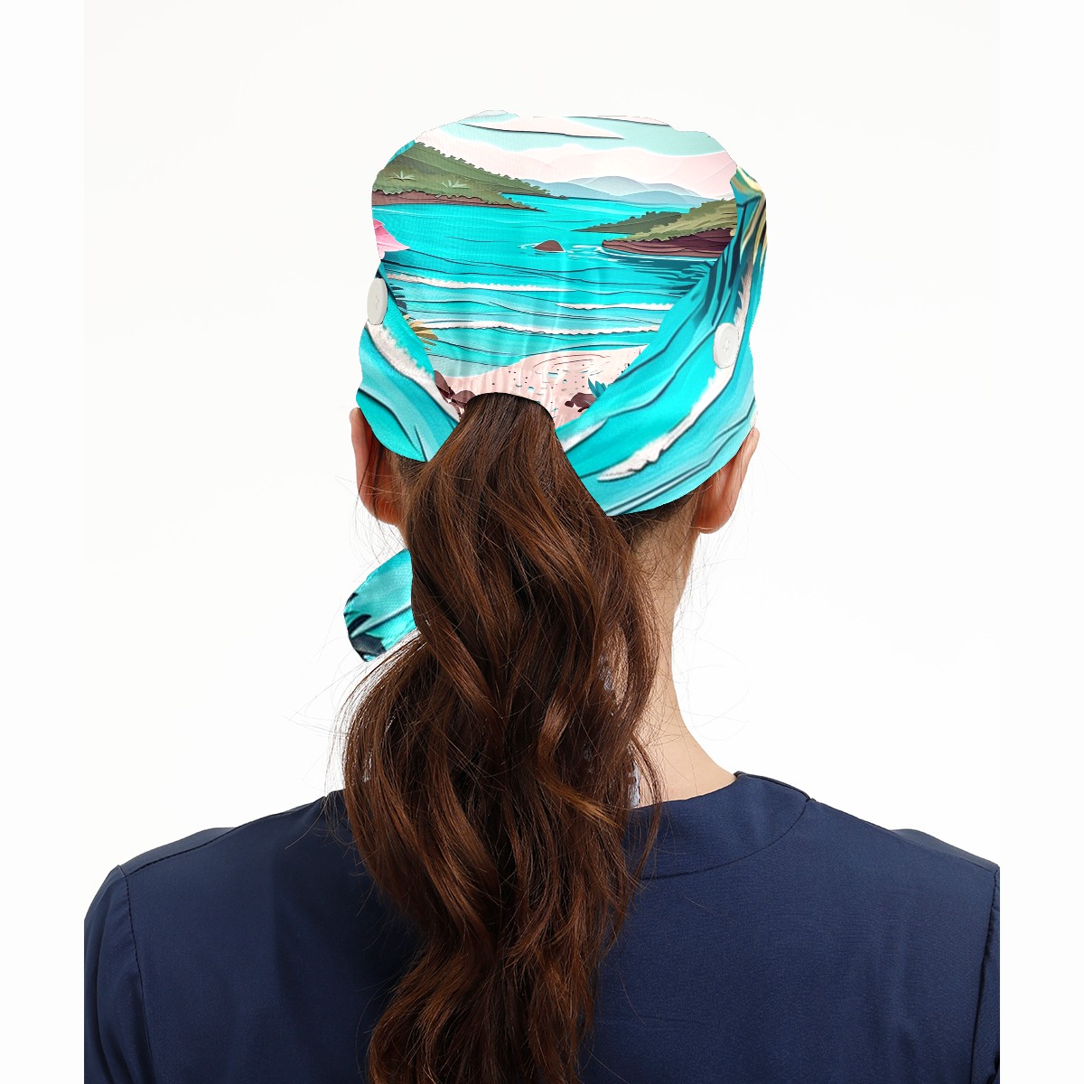 Working Caps with Button&Sweatband Satin Lined Cotton Adjustable Nurse Hats Elastic Band Scrub Cap Surgeon Hat Paper Art Drawing Beach (4)